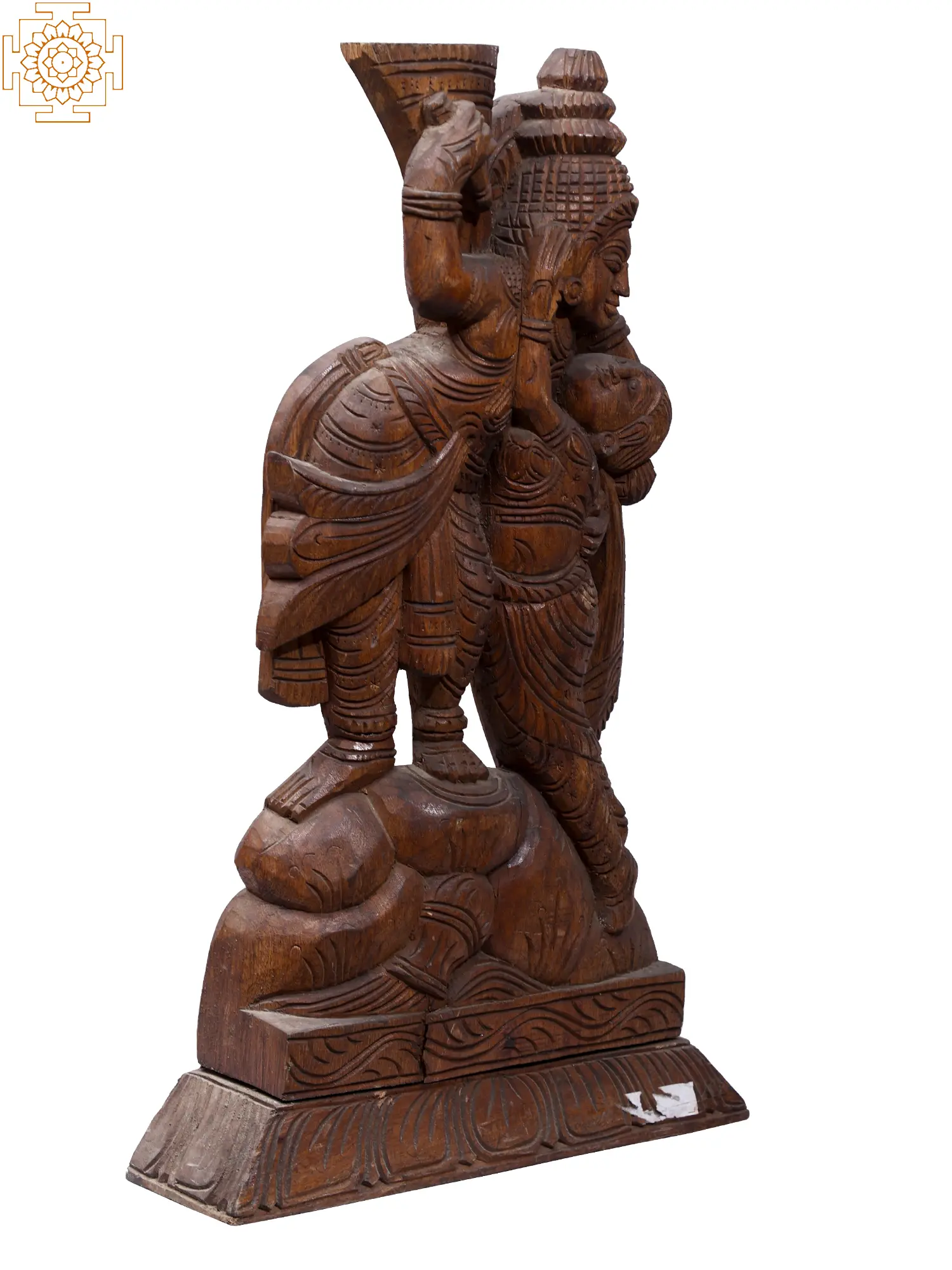 21" Wooden Radha-Krishna in a Beautiful Pose