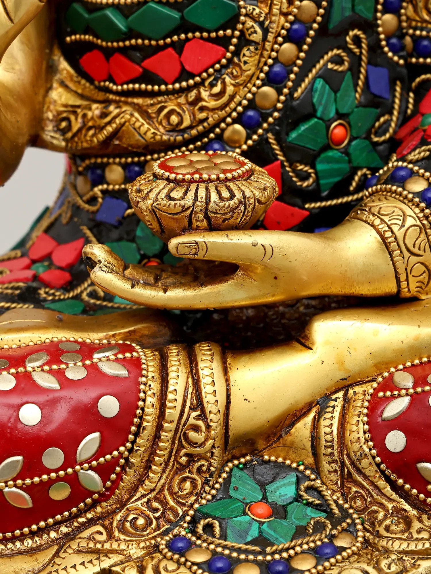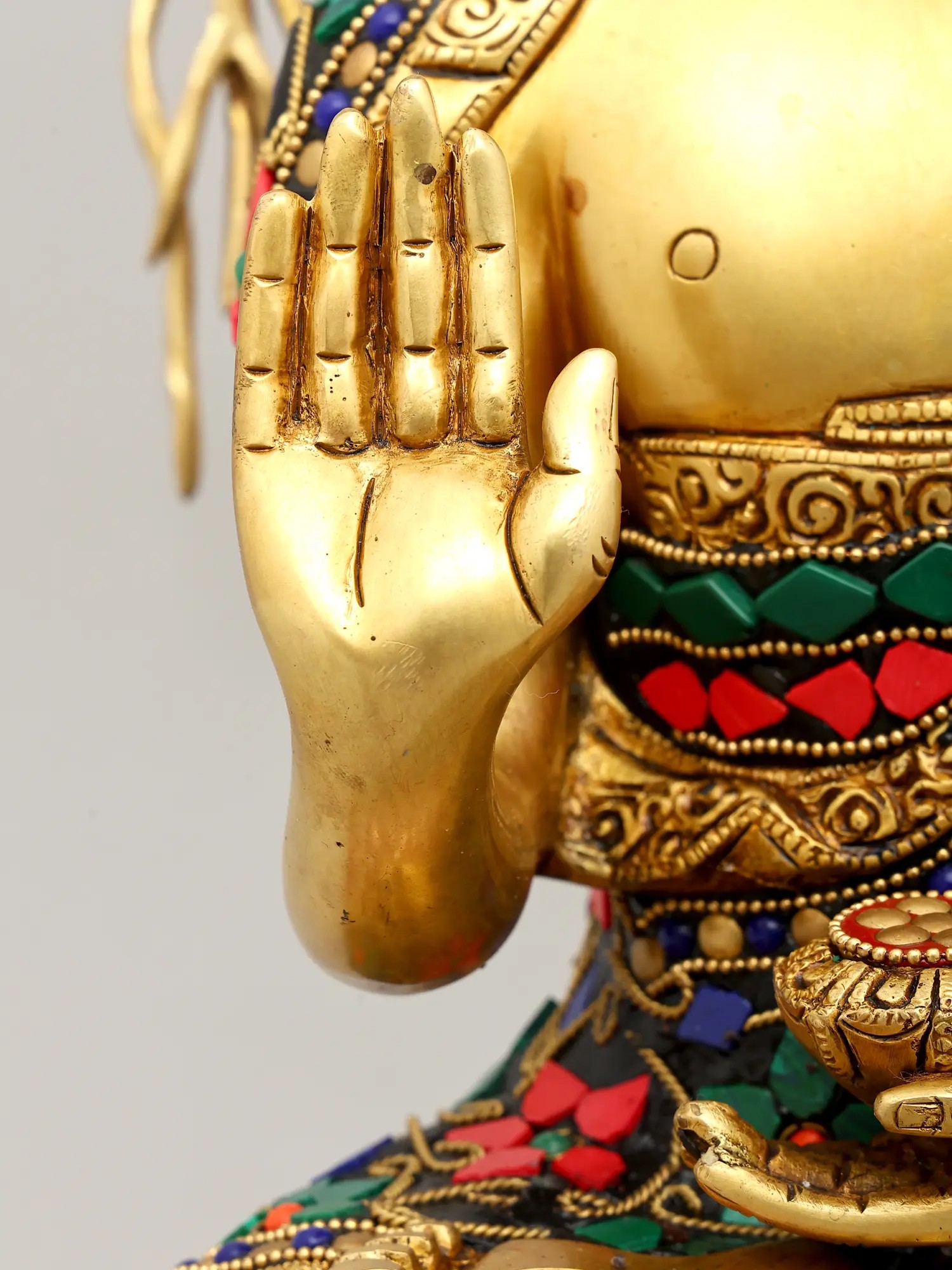 15" Blessing Buddha Brass Statue with Inlay Work | Indian Handcrafted Idol