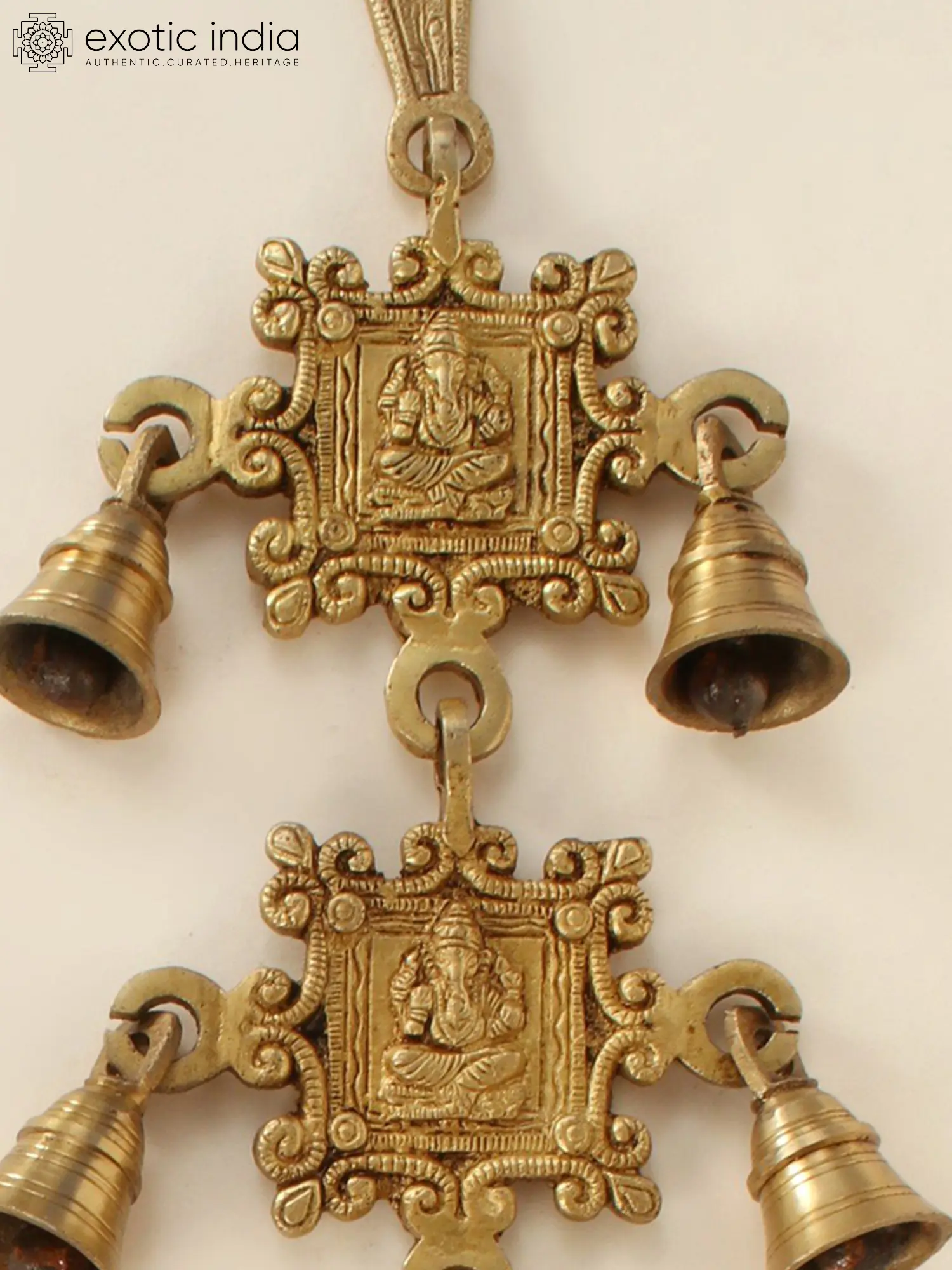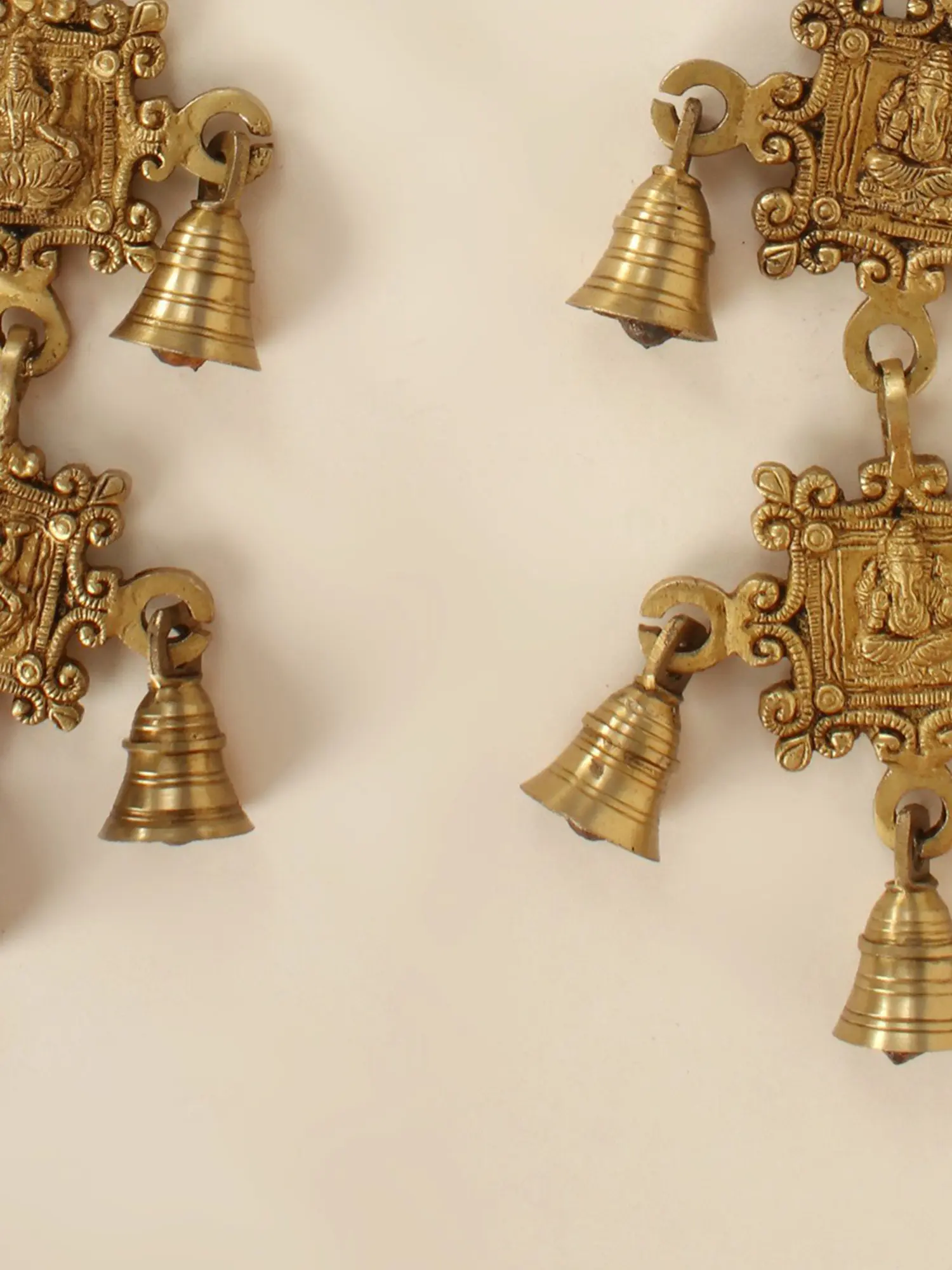 The devotion of Ganesha and Laxmi is significant in Indian religion, especially before any auspicious occasion. Laxmi is the Goddess of Wealth and Prosperity, while Ganesh is the God of Intelligence. These two deities are worshipped together to bring riches and knowledge. This pair of brass Ganesha-Lakshmi wall hangings is placed to enhance the harmony of a space. Consisting of five square panels, each carved with exclusive carvings and the sacred images of Goddess Lakshmi and Lord Ganesha individually, this wall hanging also carries bells attached to each panel. Made from high-quality materials, these intricately designed pieces depict the revered deities Lakshmi and Ganesha, symbolising wealth and wisdom. Hang them together for a harmonious vibe in your space.