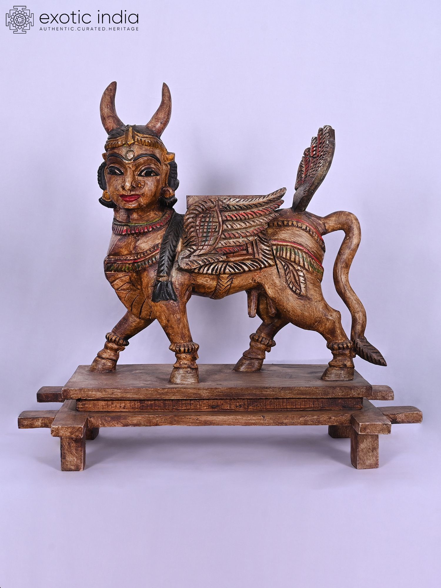 Features Kamdhenu, the mythical divine bovine, revered as the mother of all cows.