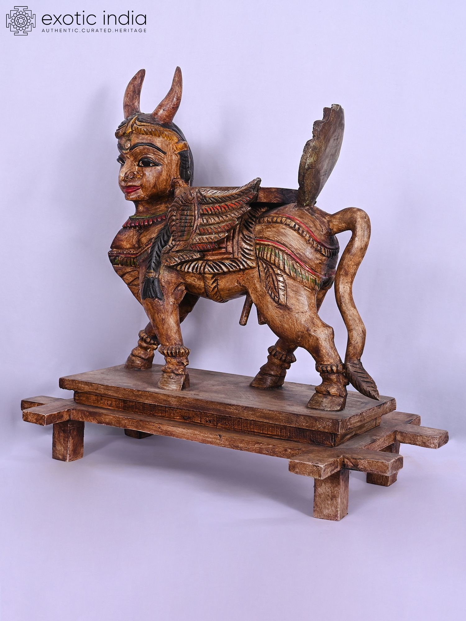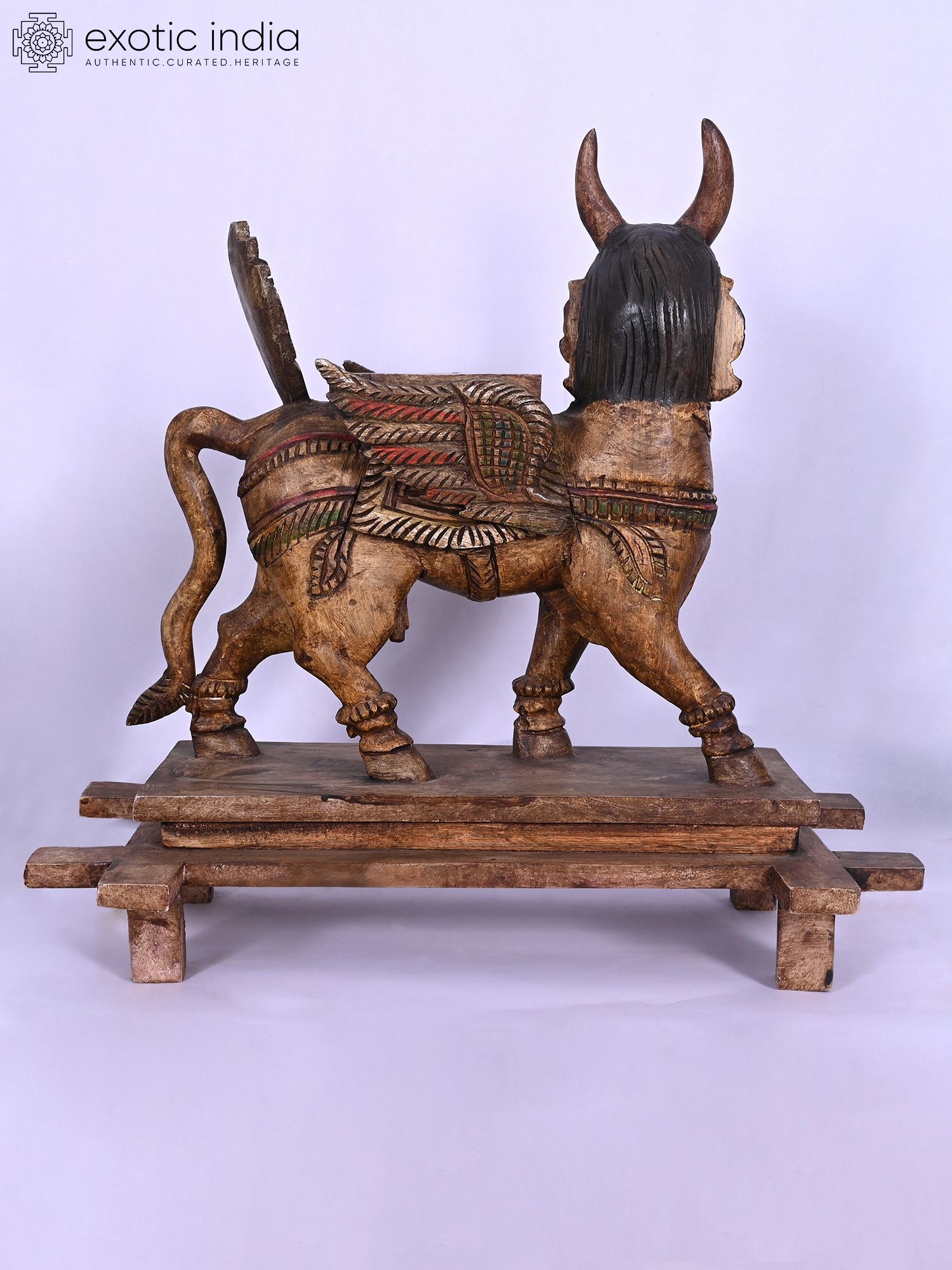 18'' Goddess Lakshmi Seated On Yali Throne | Wooden Statue