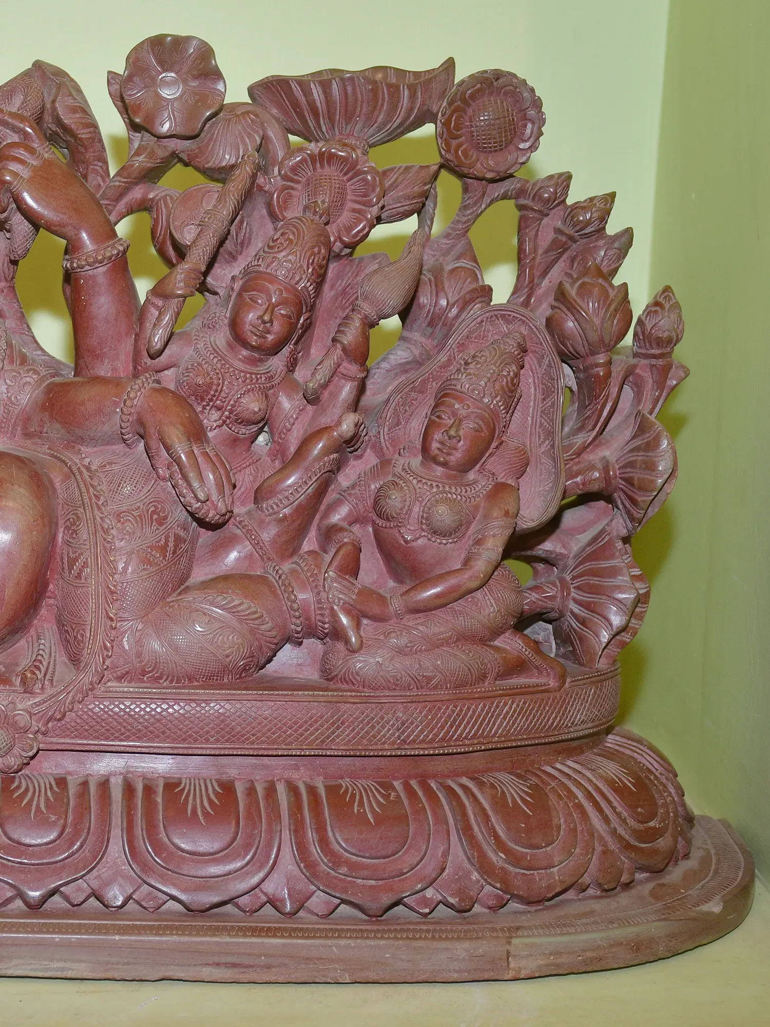 13" Goddess Durga Killing Mahishasura | Red Stone Statue | Hand Carved