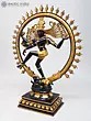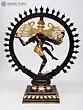 A striking bitone Nataraja to bring life and auspiciousness to the devotee’s personal and/or professional space. He dances on the back of the avidya-roopi Apasmara (personification of ignorance), a single foot enough to keep the tamasic (inertia-ridden) creature in check. The other leg is raised high in the air, right below the gajahasta-abhaya mudra of the anterior hands. The posterior arms, bearing the usual implements, are opened out in conjunction with His ample, snake-like tresses. The unmistakable silhouette of the Nataraja instills a certain emotion upon the psyche of the truly devoted.