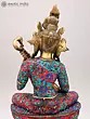The main attraction of the sculpture is undoubtedly the inlay work. Blue, red and turquoise gemstones have been used to create beautiful floral patterns on what can be assumed as her upper garment and dhoti. The costume is also unique in that it is very unusual for goddesses to wear full-sleeved blouses.
