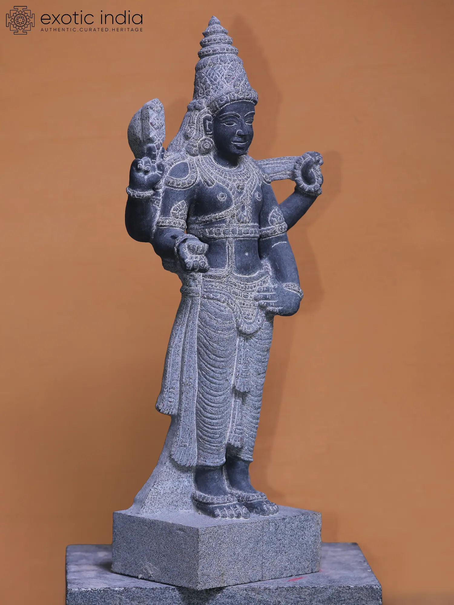 Sur-guru or Devaguru, a title for Brihaspati, the planet Jupiter in Hindu tradition underlines the brilliance and powers of the planetary deity. In this granite statue, Brihaspati appears as the establisher of order, balance, and stability, virtues required for a successful and fulfilled life.