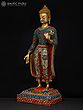 Standing Lord Karttikeya (Murugan) Tanjore Painting | Traditional Colors With 24K Gold | Teakwood Frame | Handmade
