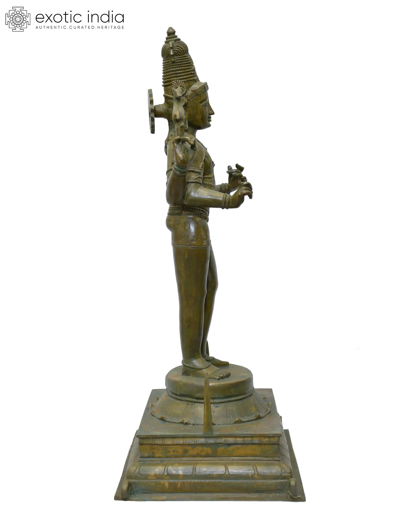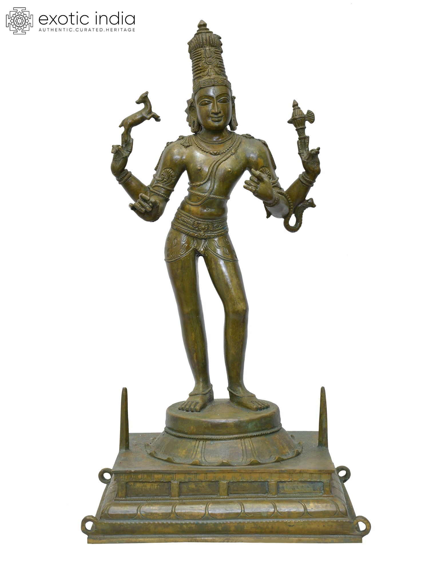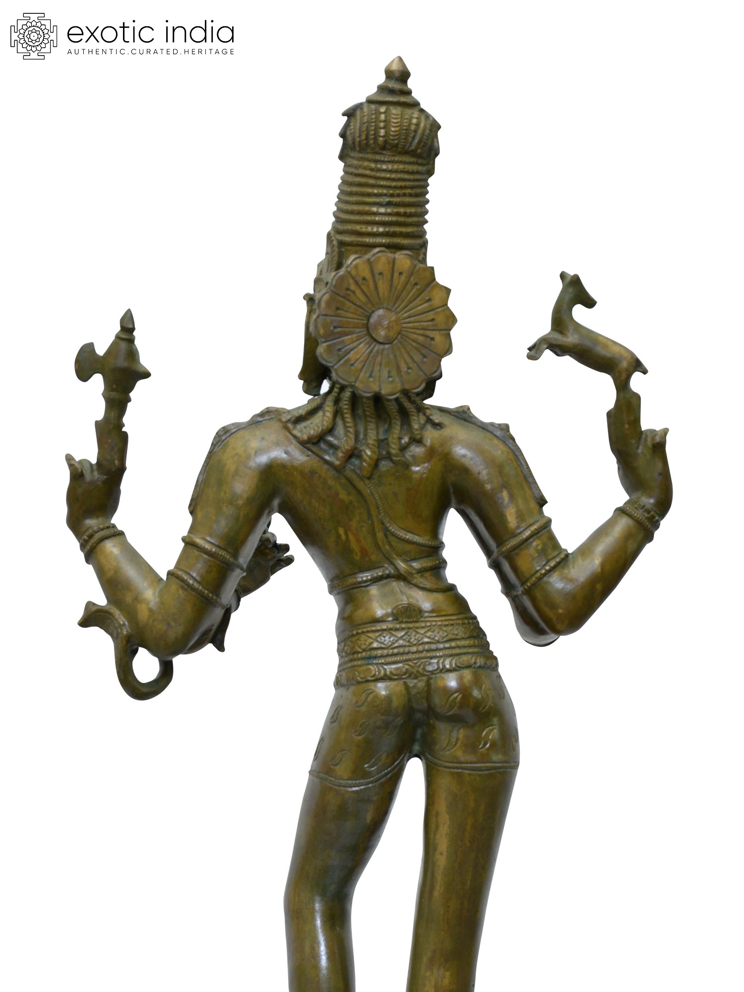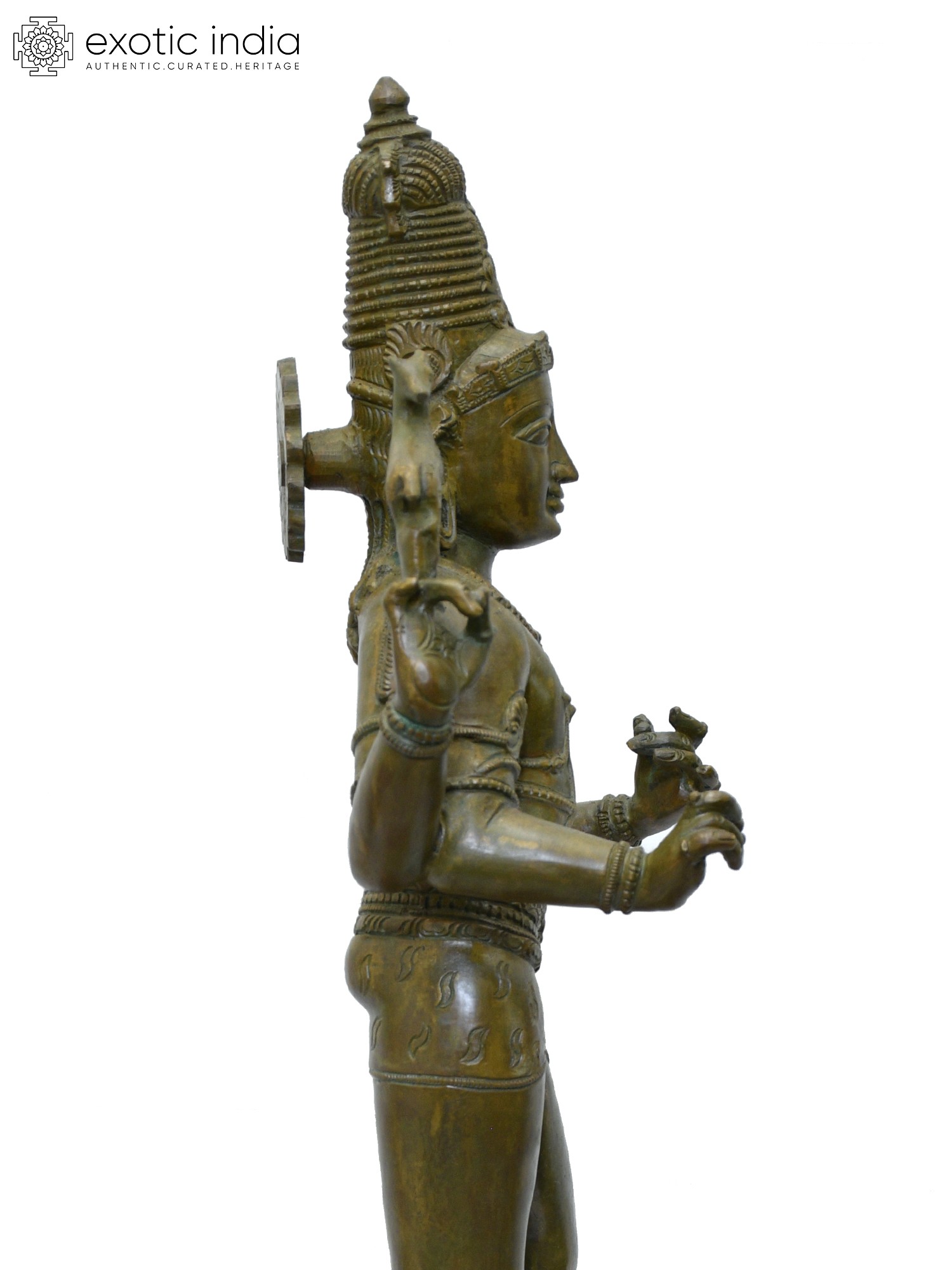 21" Four Armed Standing Pashupatinath (Lord Shiva) | Madhuchista Vidhana (Lost-Wax) | Panchaloha Bronze from Swamimalai