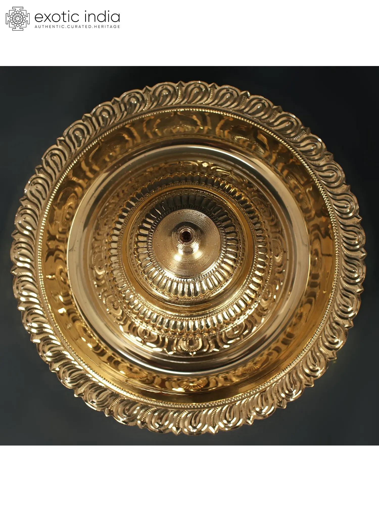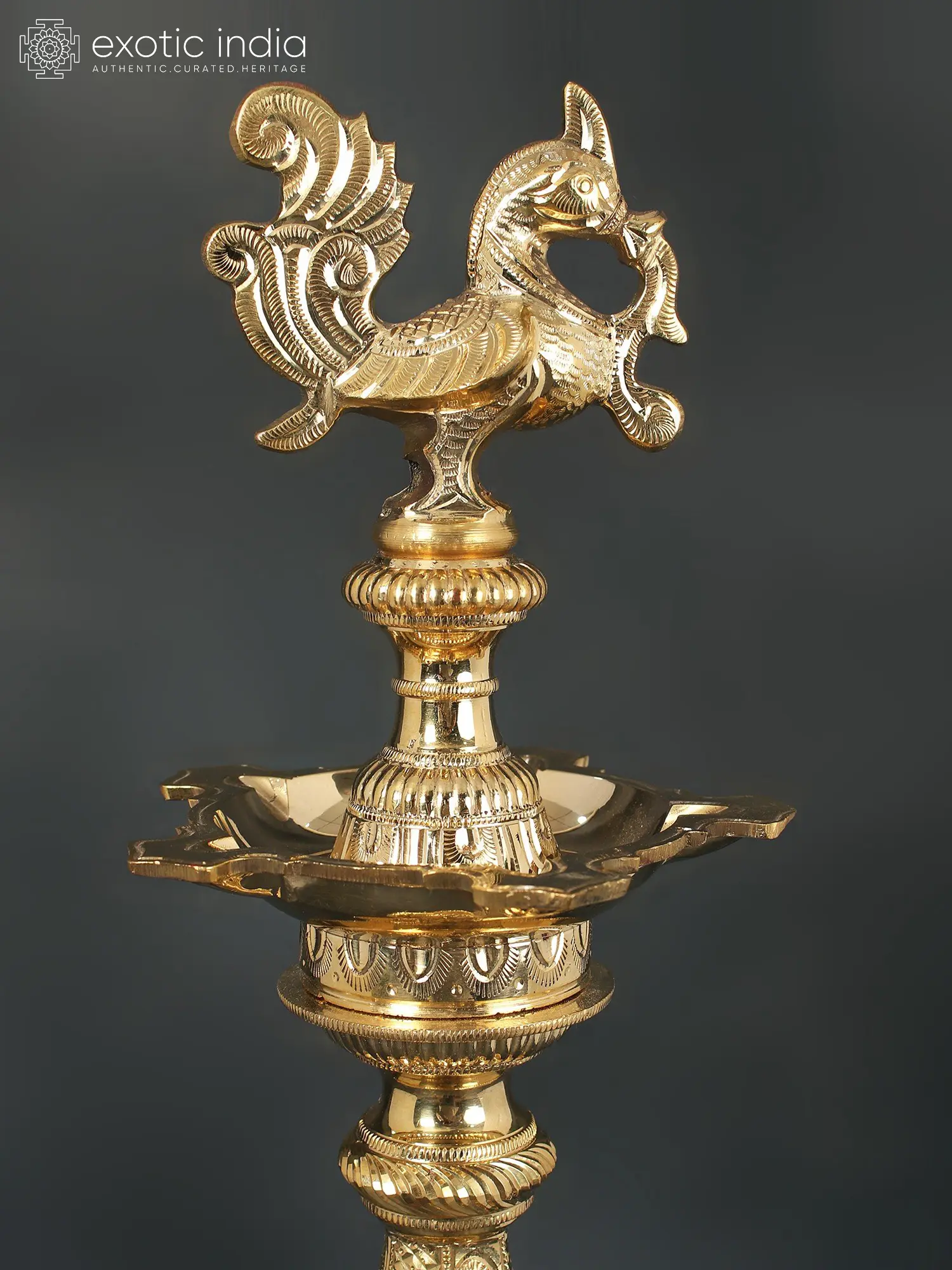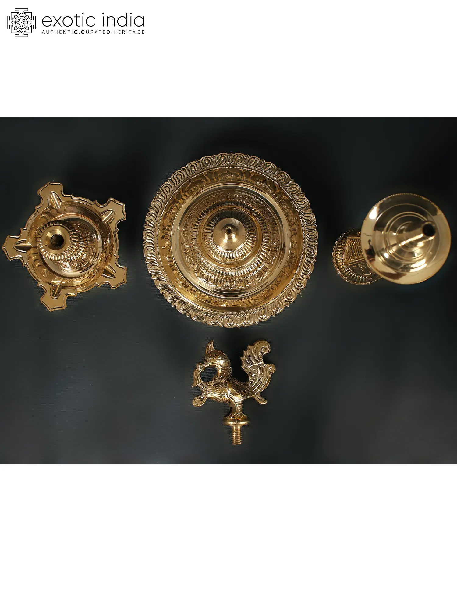 The Kuthu Vilakku, also known as the Peacock Oil lamp, is a traditional South Indian light that may be seen in houses and temples. It is made of brass and has five wicks, one for each of the five aspects of human life: body, mind, intellect, ego, and soul. The famous Anam (peacock) personifies grace and refinement. The lamp's stand is elaborate, featuring panels of jaali work. The base is sturdy and has the traditional outward-facing peacock feathers motif. This lamp has a spiritual meaning as well. Traditionally, these lights were used in temples to boost the ambiance of the space. They can now be erected in personal worship locations, and worshippers can reap the blessings of the almighty.