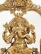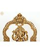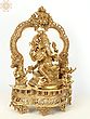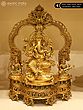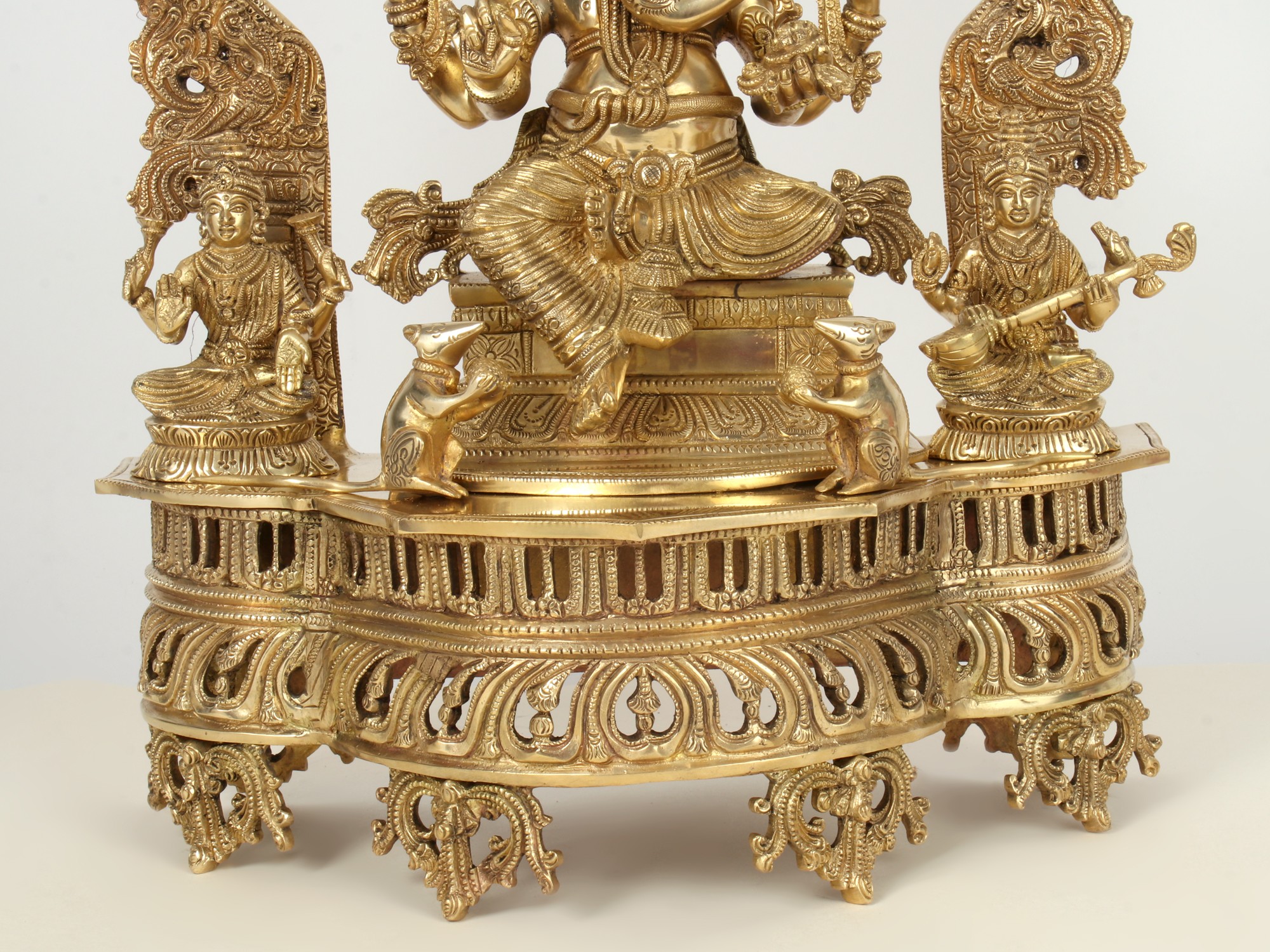 22" Superfine Brass Lord Ganapati Seated on Kirtimukha Throne with Goddess Lakshmi and Goddess Saraswati