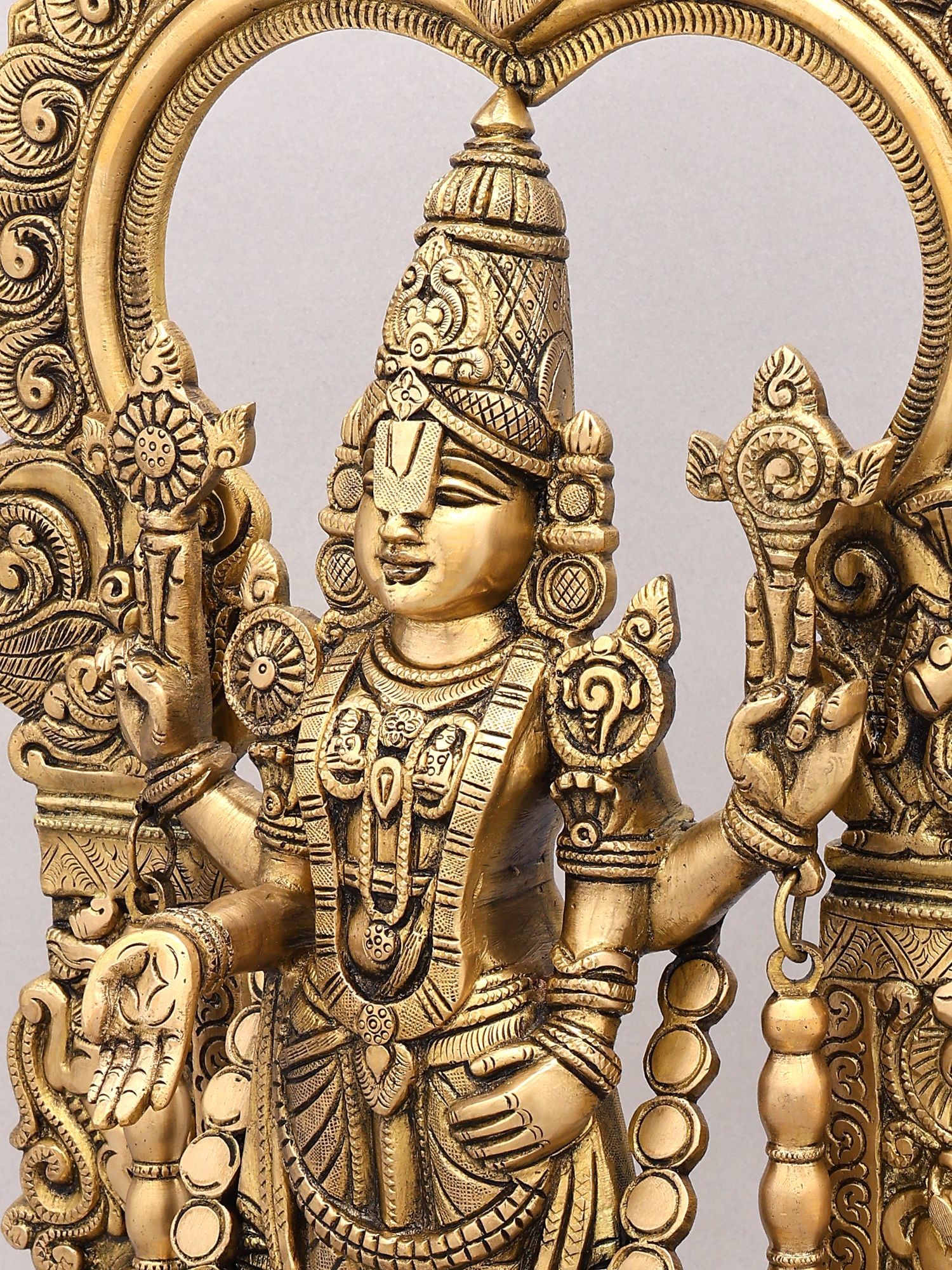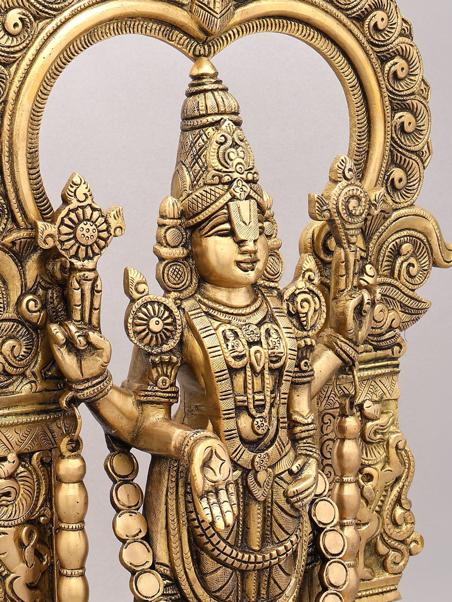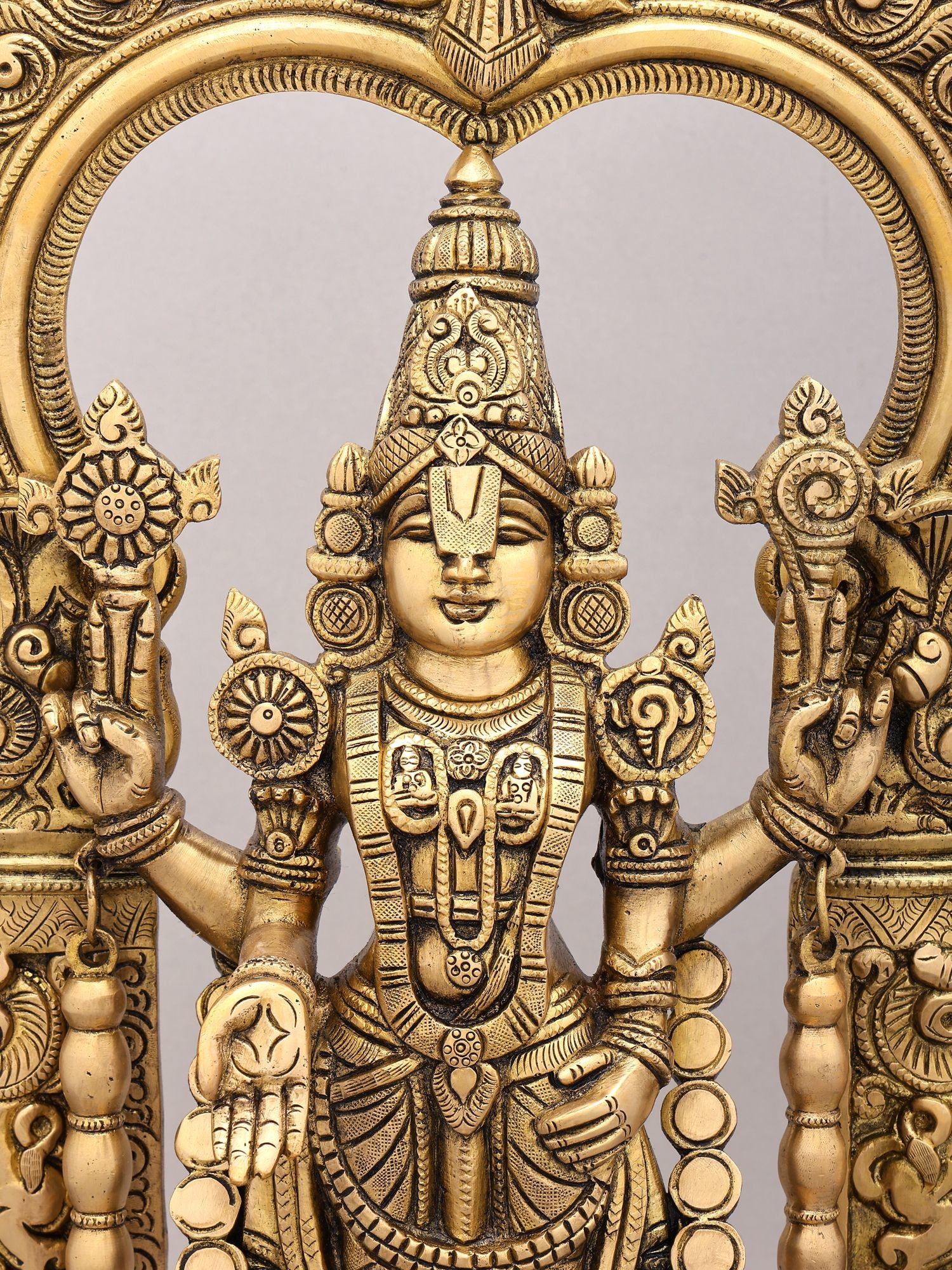 Features an elaborate Kirtimukha Prabhavali (archway) intricately carved with auspicious motifs.