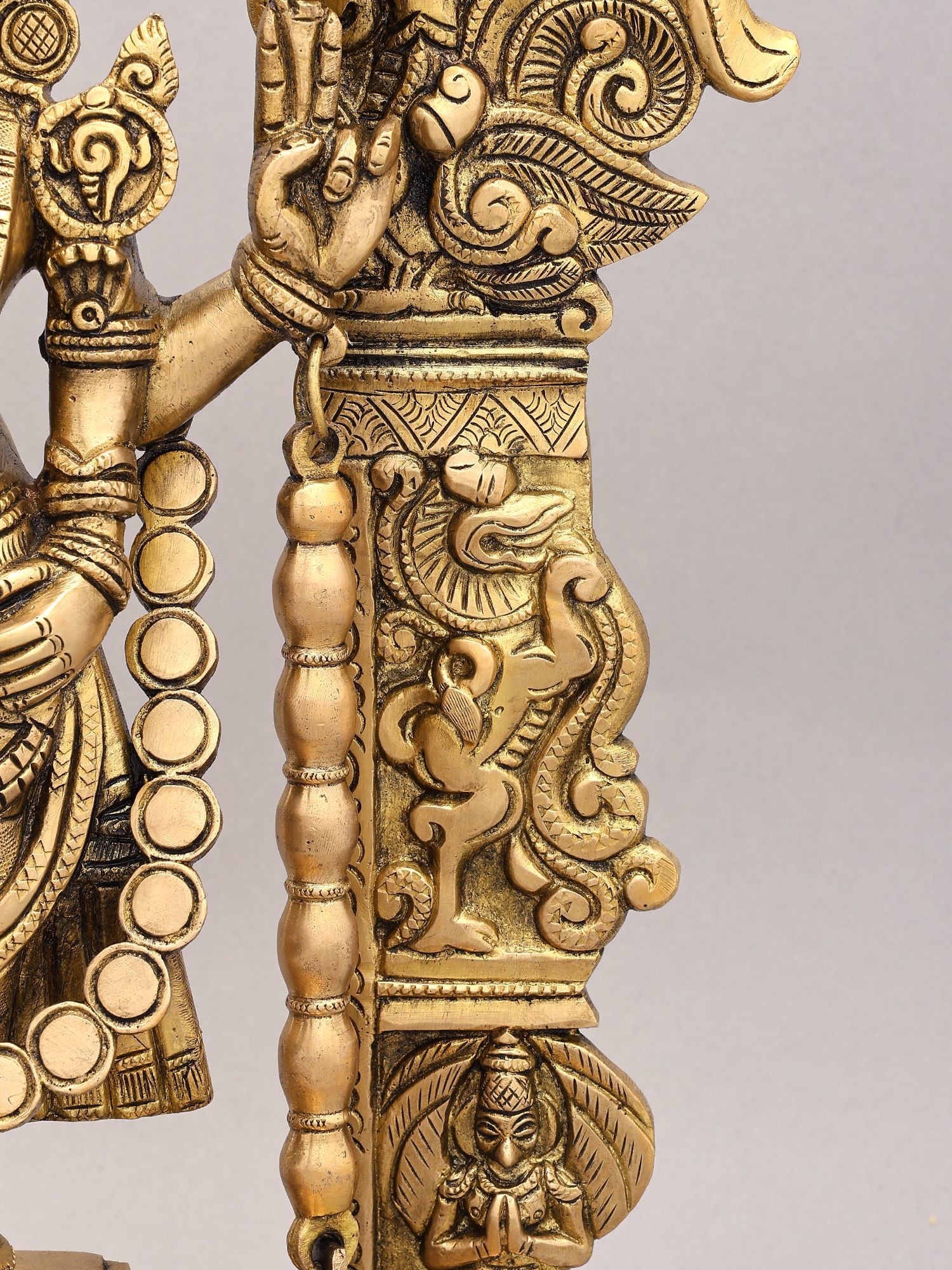 13" Lord Vishnu Statue with Sheshnag Canopy - Brass Sculpture on Wooden Stand