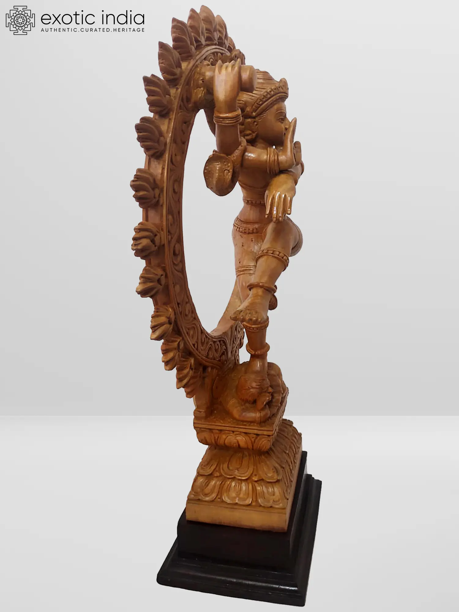 It is believed when Lord Shiva dances in the Nataraja form, matter, energy, and sound are distinguished by the vibration of his drum, and sound is created. All spheres and their atomic energy begin to operate rhythmically. This White Wood Nataraja statue is not only a sacred piece of art but also a meeting point of culture and knowledge of the three dimensions. Meticulously carved, the intricate details capture the cosmic balance and rhythm of the Nataraj dance. Lord Shiva, the cosmic dancer, is beautifully portrayed in a dynamic pose, symbolizing creation, destruction, and the eternal flow of the universe. Crafted from quality wood, the statue emanates a spiritual aura. The natural finish enhances its authenticity, creating a captivating representation of cosmic forces.