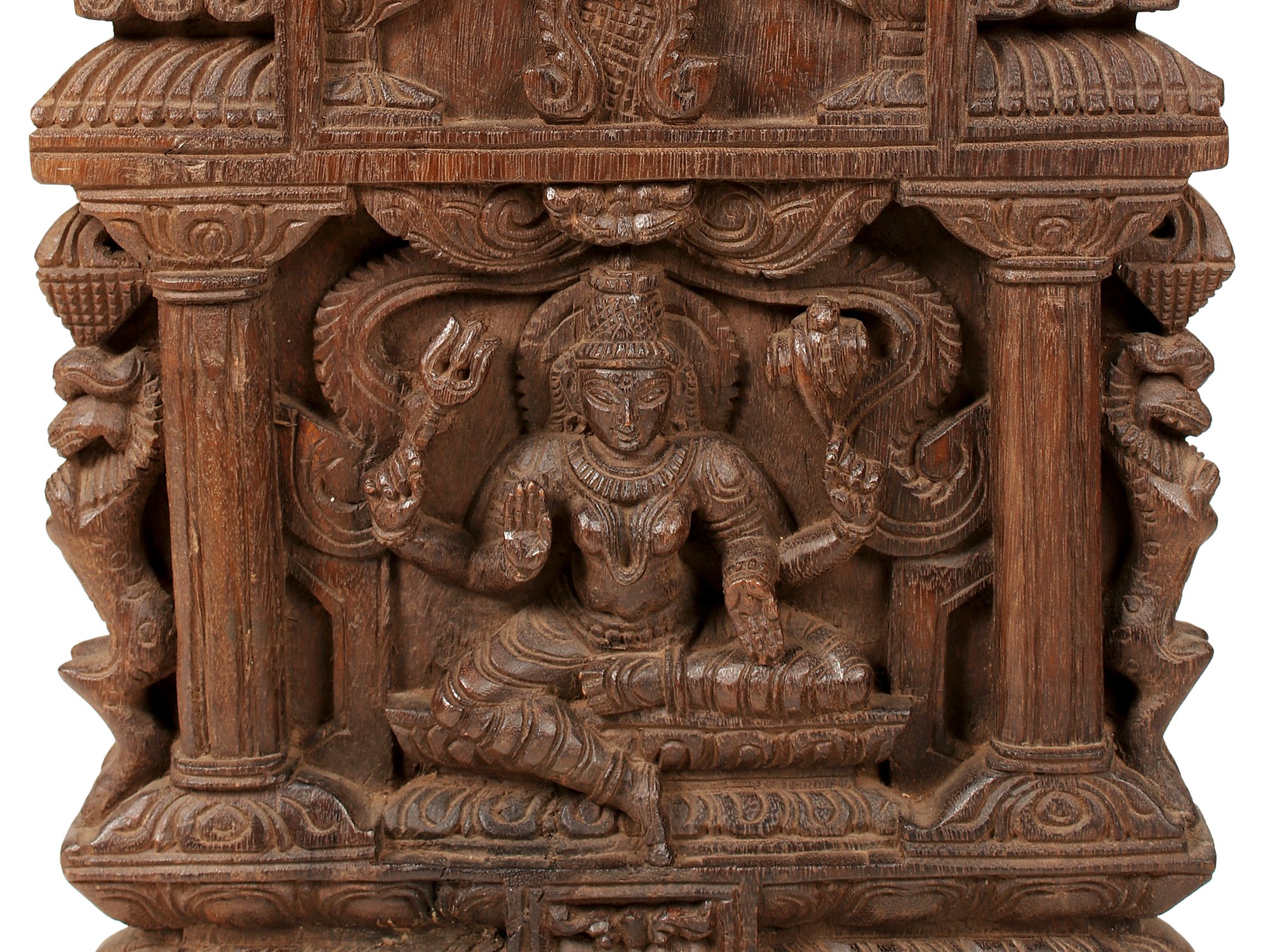 22" Wooden Sitting Goddess Parvati | Kavadi Wall Panel