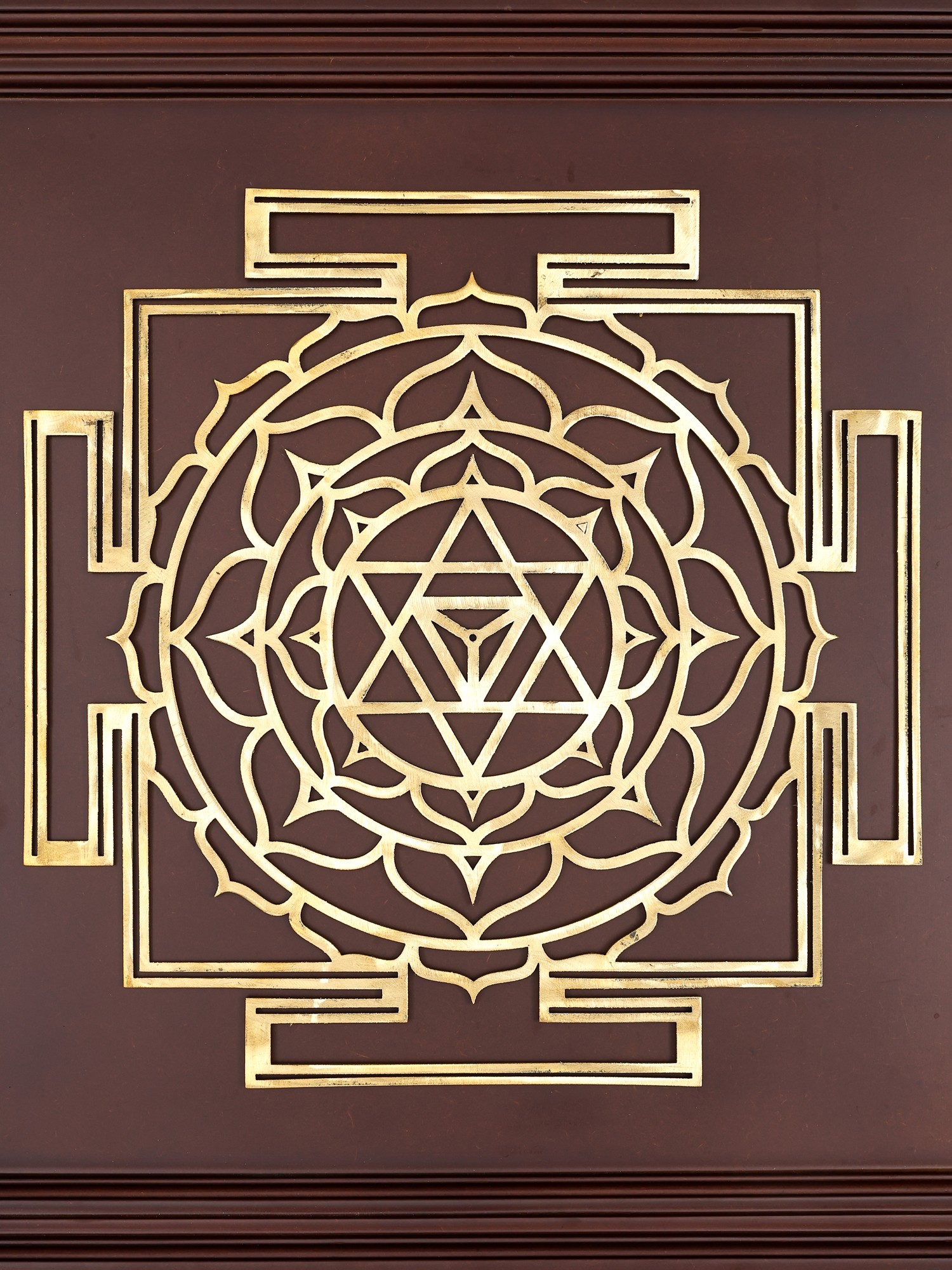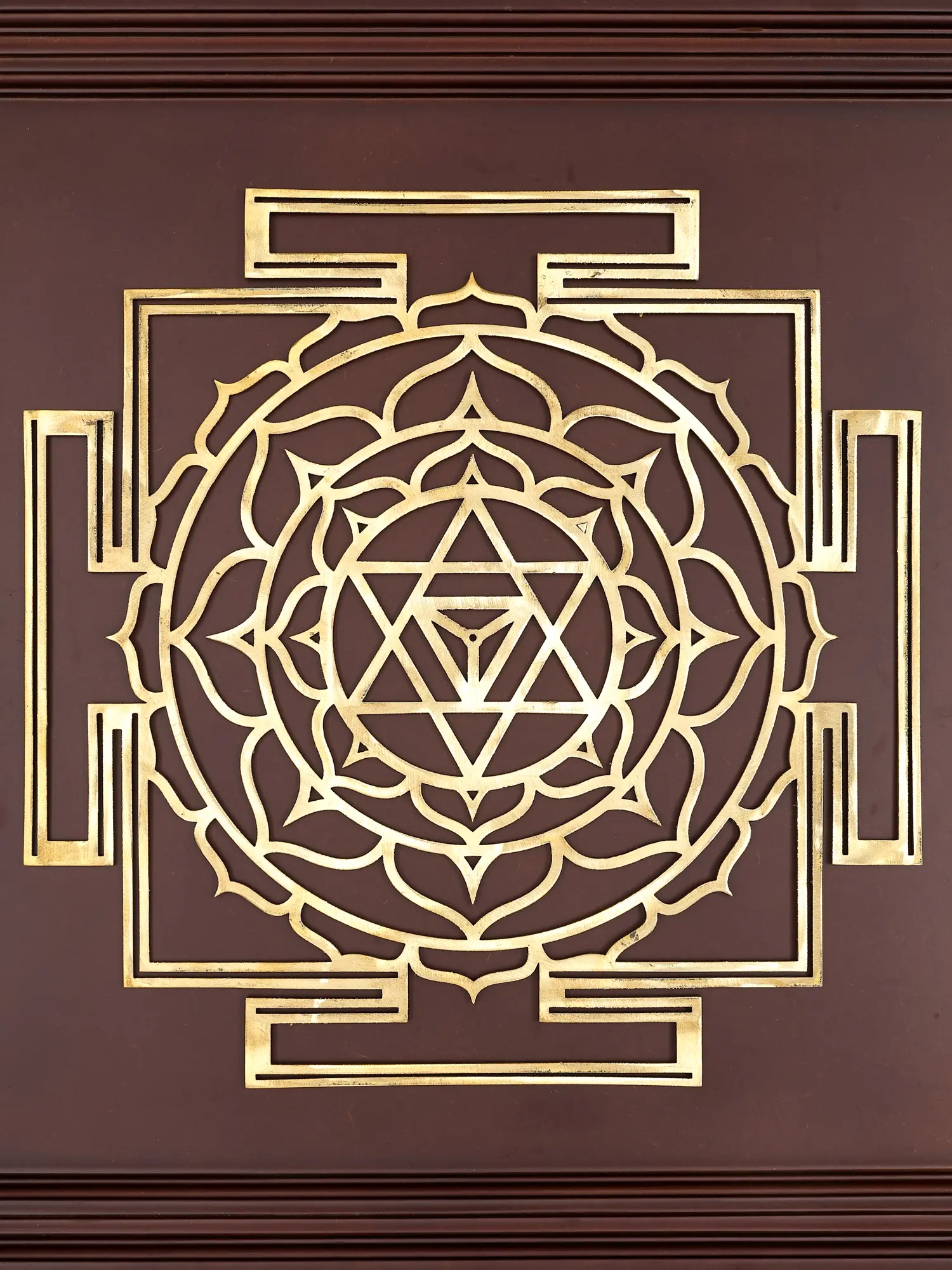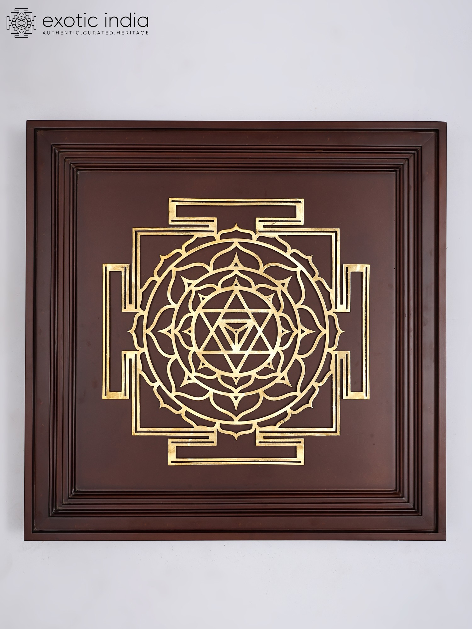 23" Bhuvaneshwari Yantra for Success, Abundance and Inner Peace | Brass Yantra on Wood Frame | Wall Hanging
