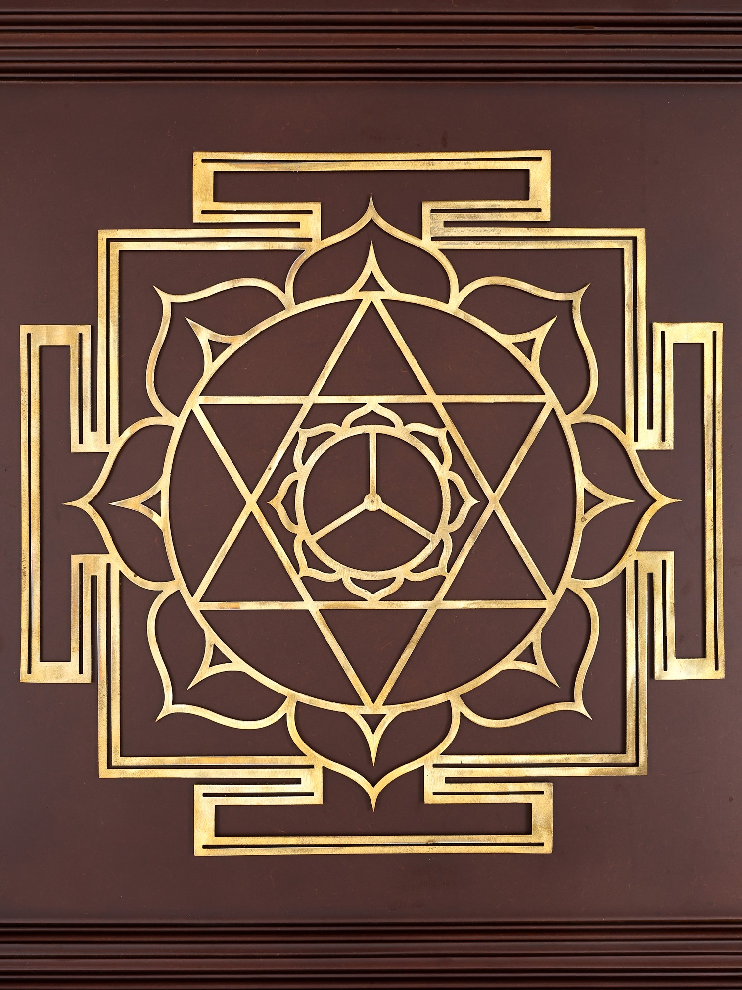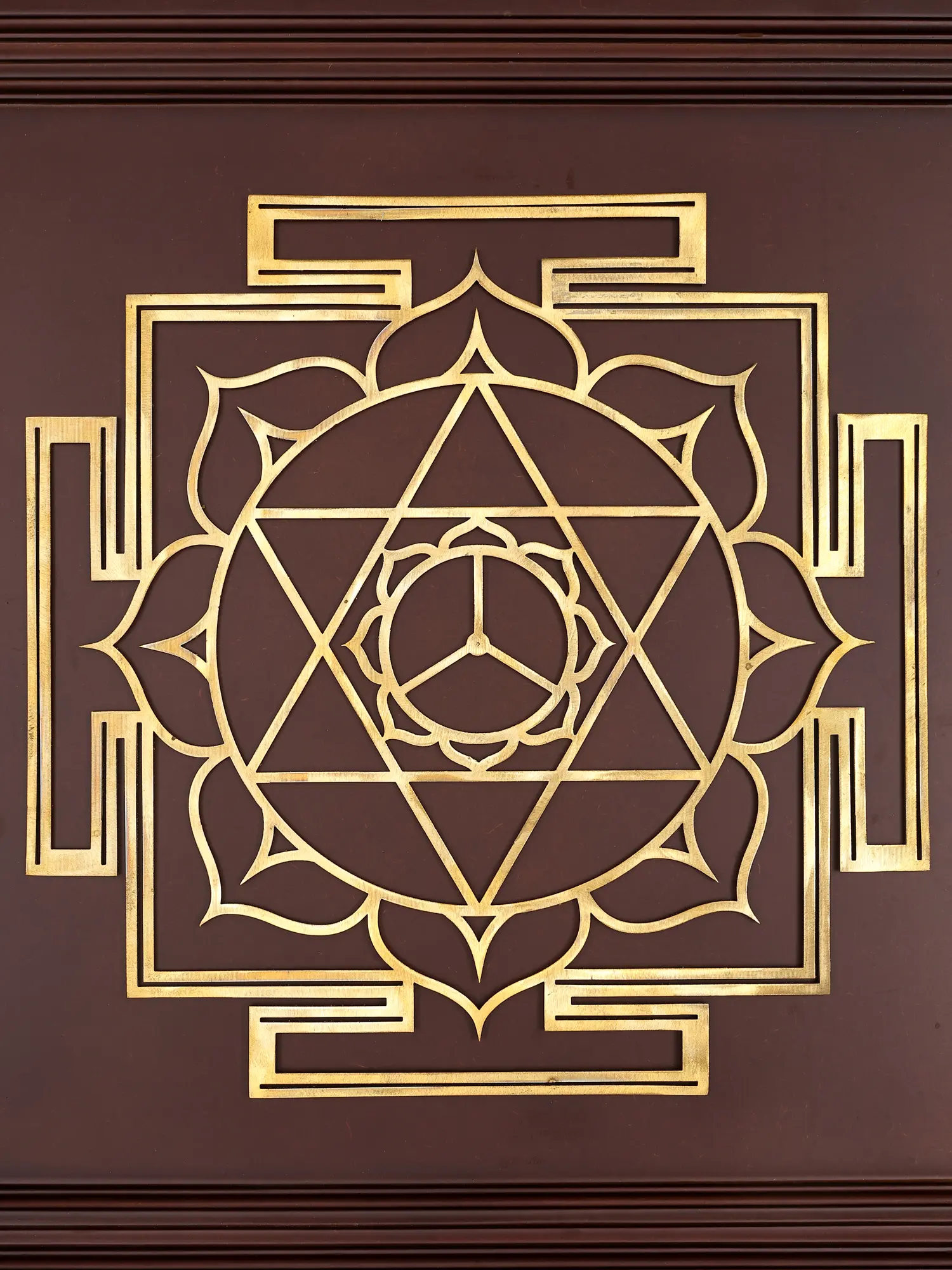 23" Kamalatmika Yantra for Attract Wealth and Good Fortune | Brass Yantra on Wood Frame | Wall Hanging