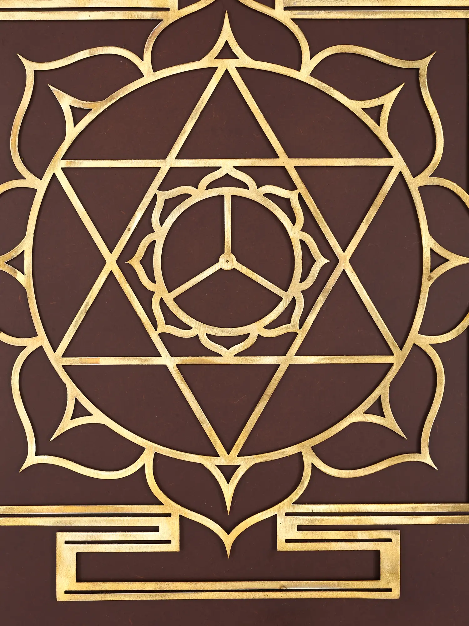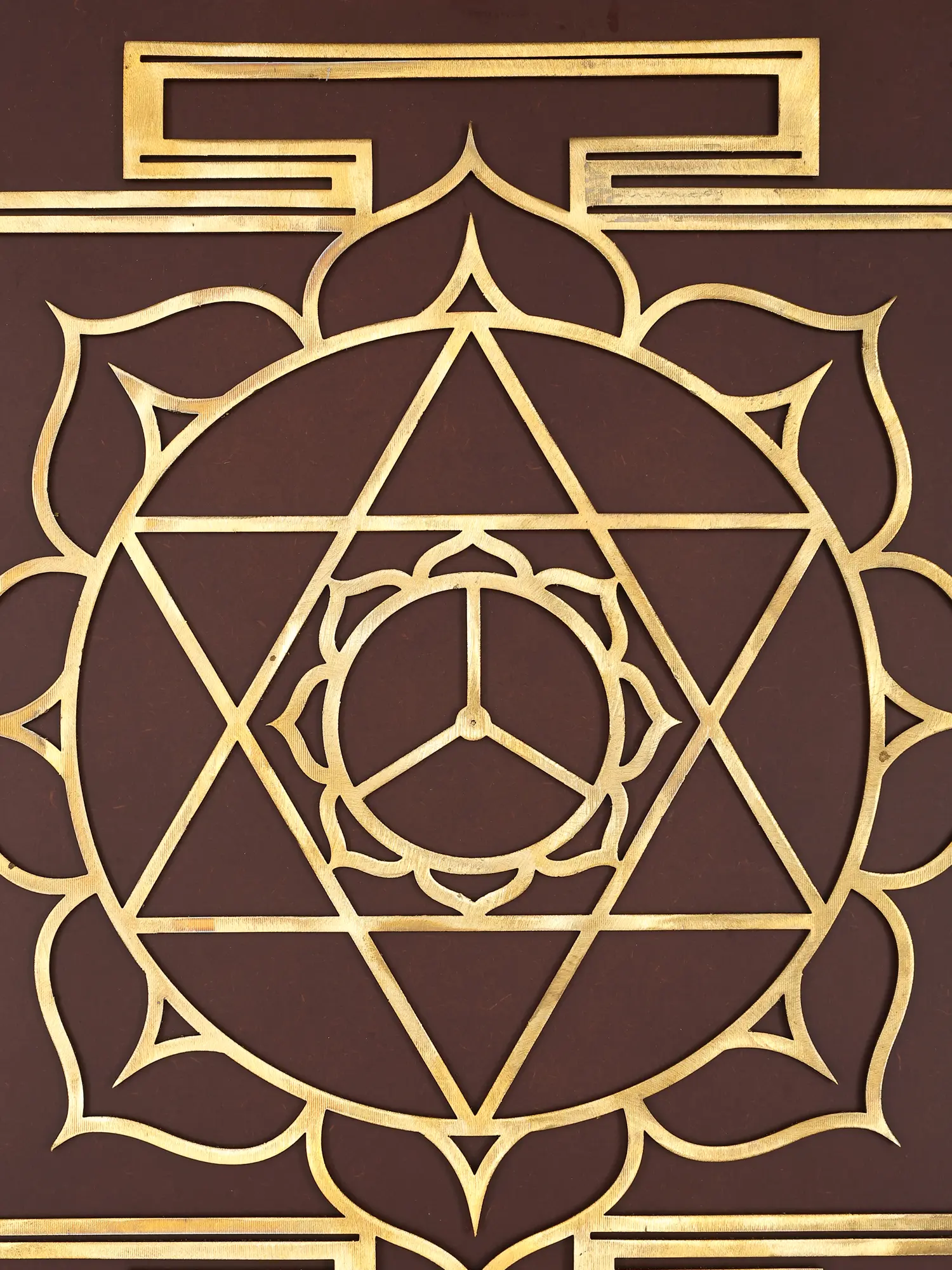 23" Tara Yantra for Protection from Negative Energies, Fear and Anxiety | Brass Yantra on Wood Frame | Wall Hanging