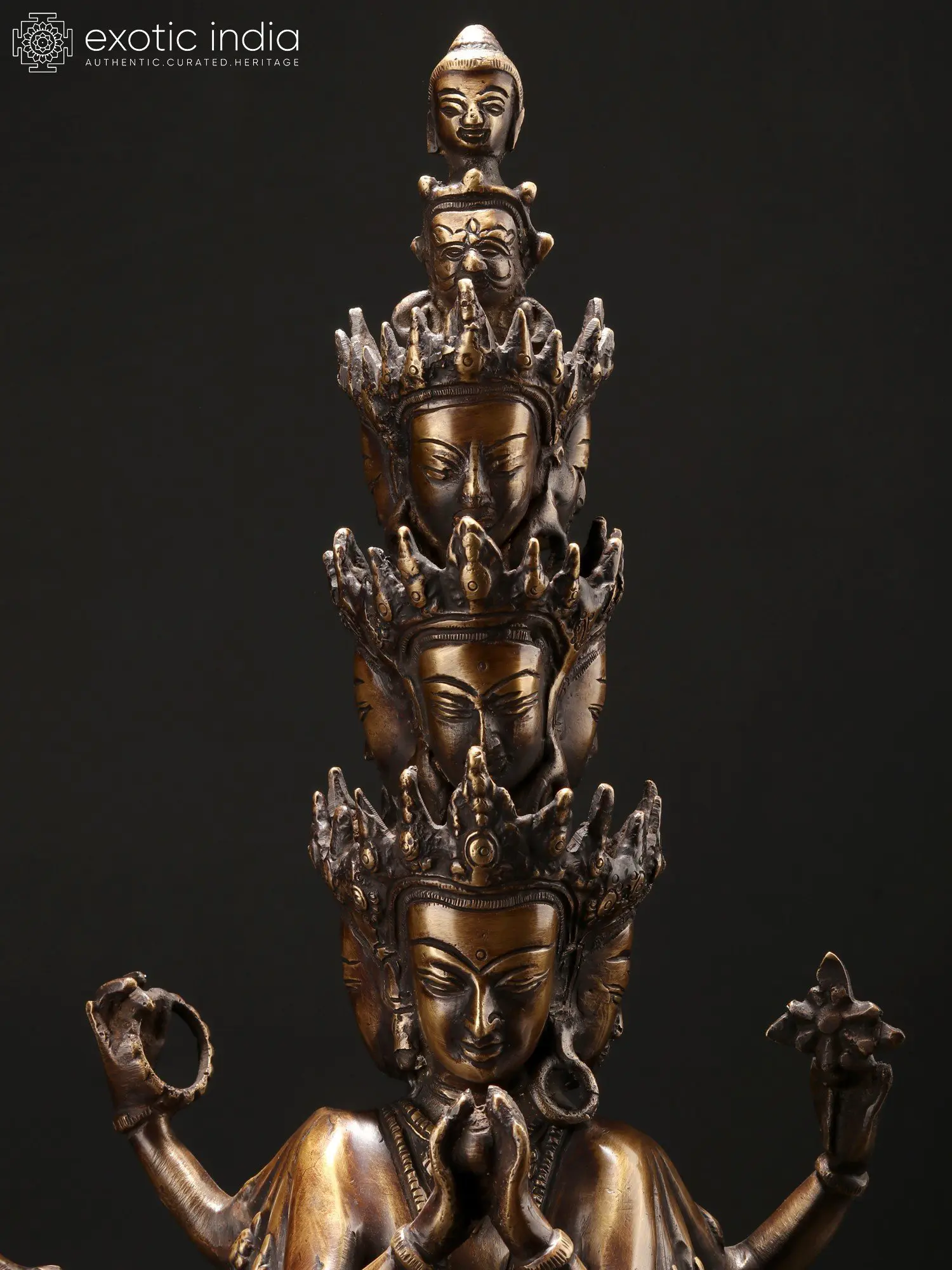 This brass statue is a testament to the enduring artistic traditions of India, where countless generations of artisans have dedicated their skills to creating representations of deities and bodhisattvas. This form of Avalokiteshvara is a powerful reminder of the potential for compassion within each of us, and it serves as an inspiration to cultivate kindness, empathy, and the aspiration to relieve the suffering of others. The intricate detailing, the balanced proportions, and the overall sense of serenity radiating from this handcrafted piece, underscore the deep devotion that inspires its creation. The statue is a beautiful reminder of the power of compassion to transform the world.