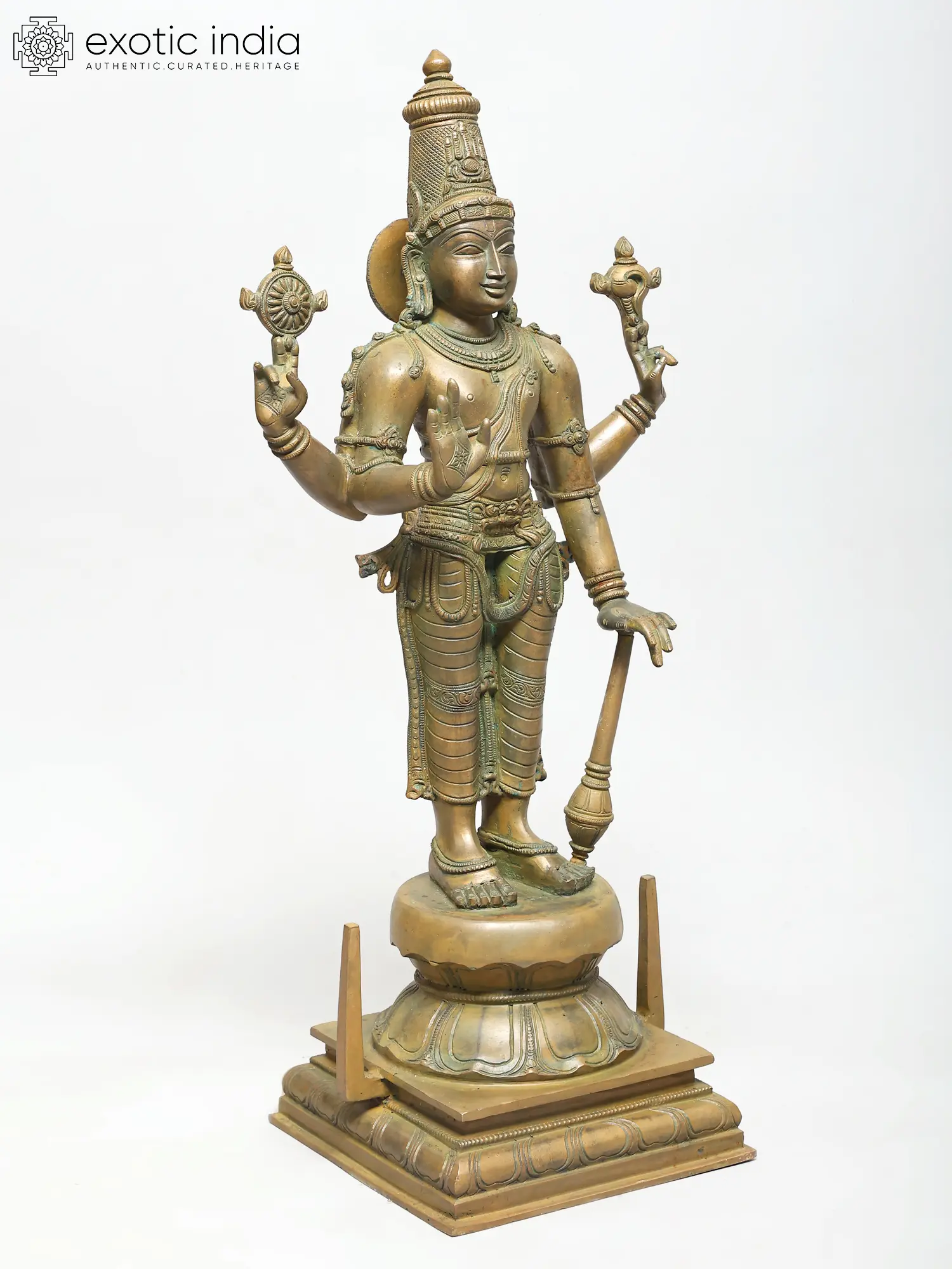 36" Large Four Armed Standing Lord Vishnu (Perumal) | Madhuchista Vidhana (Lost-Wax) | Panchaloha Bronze from Swamimalai