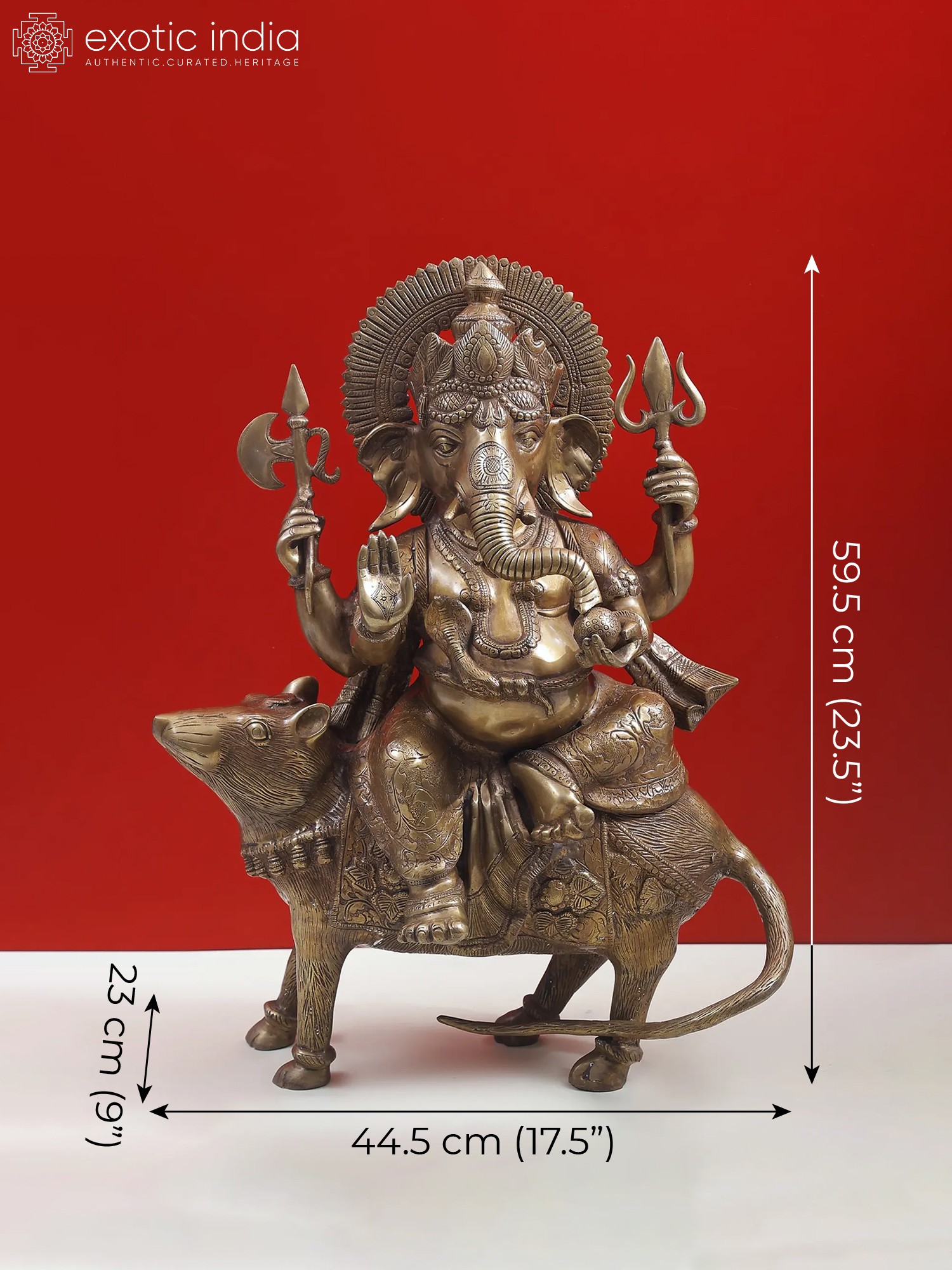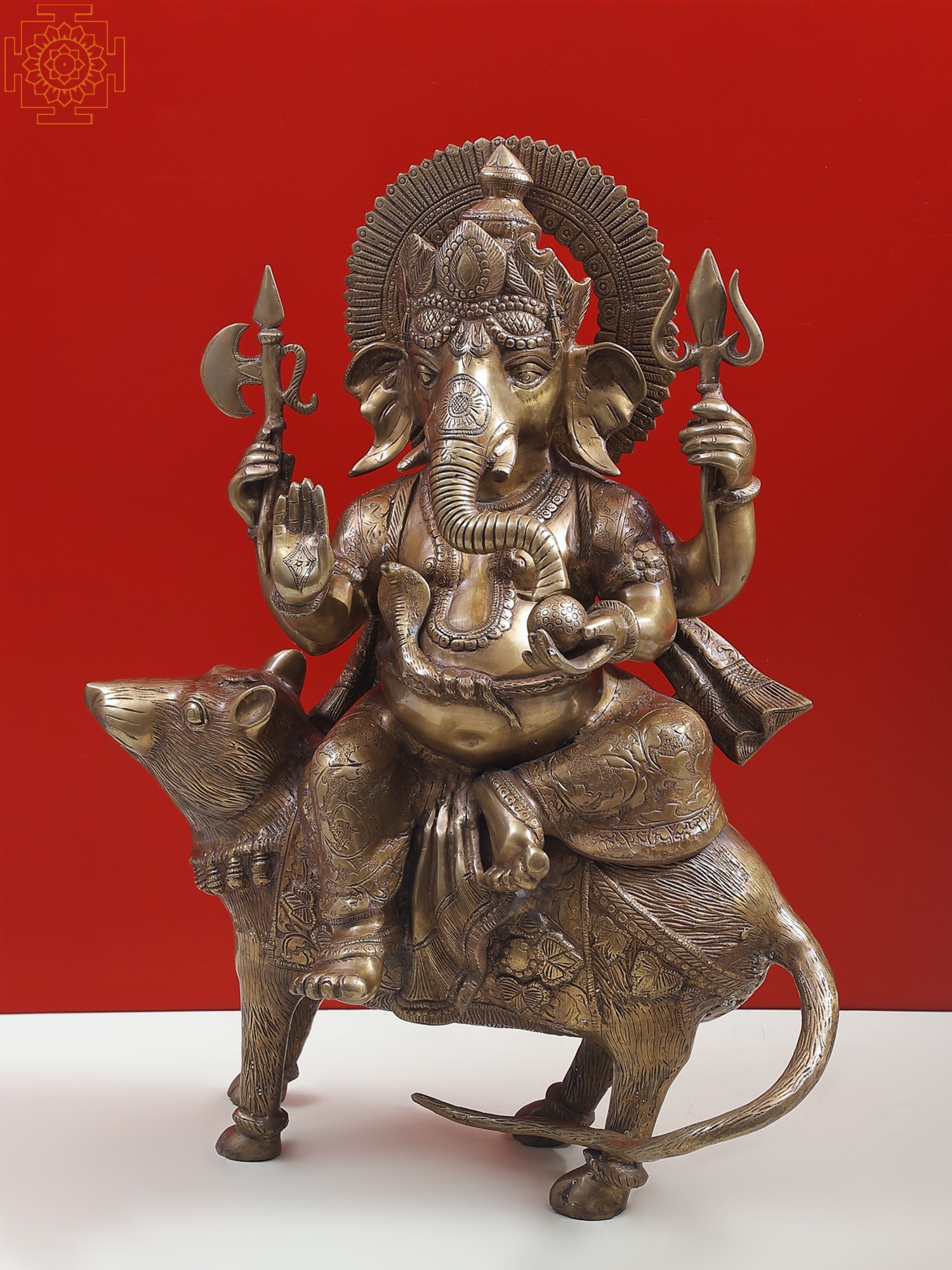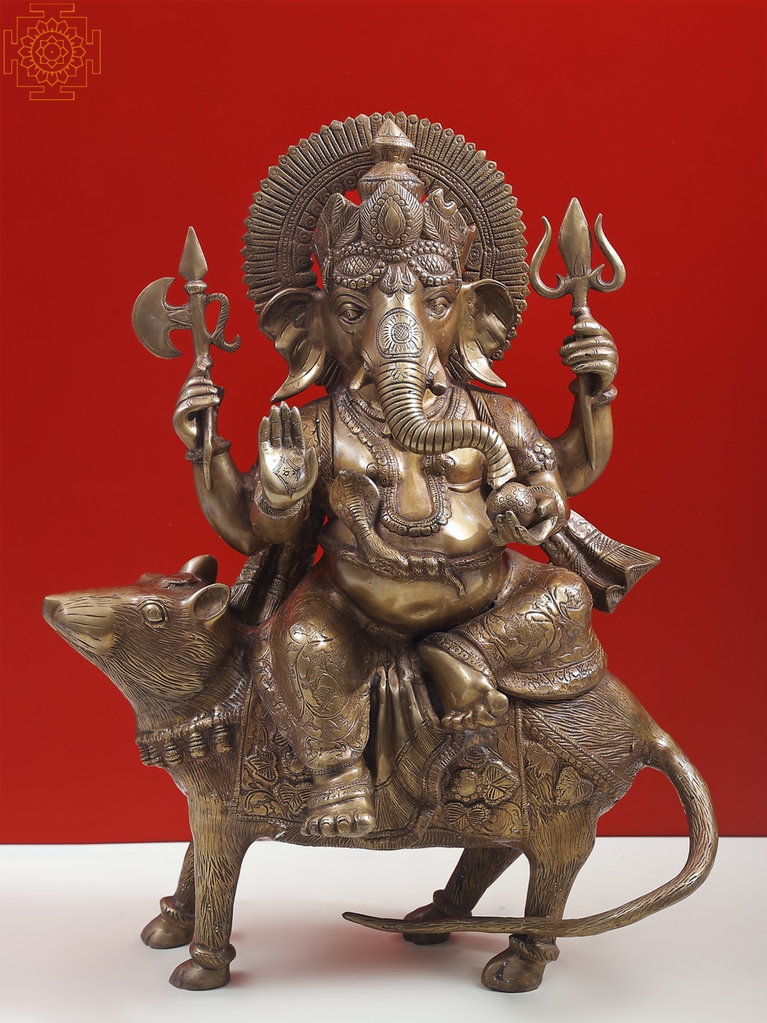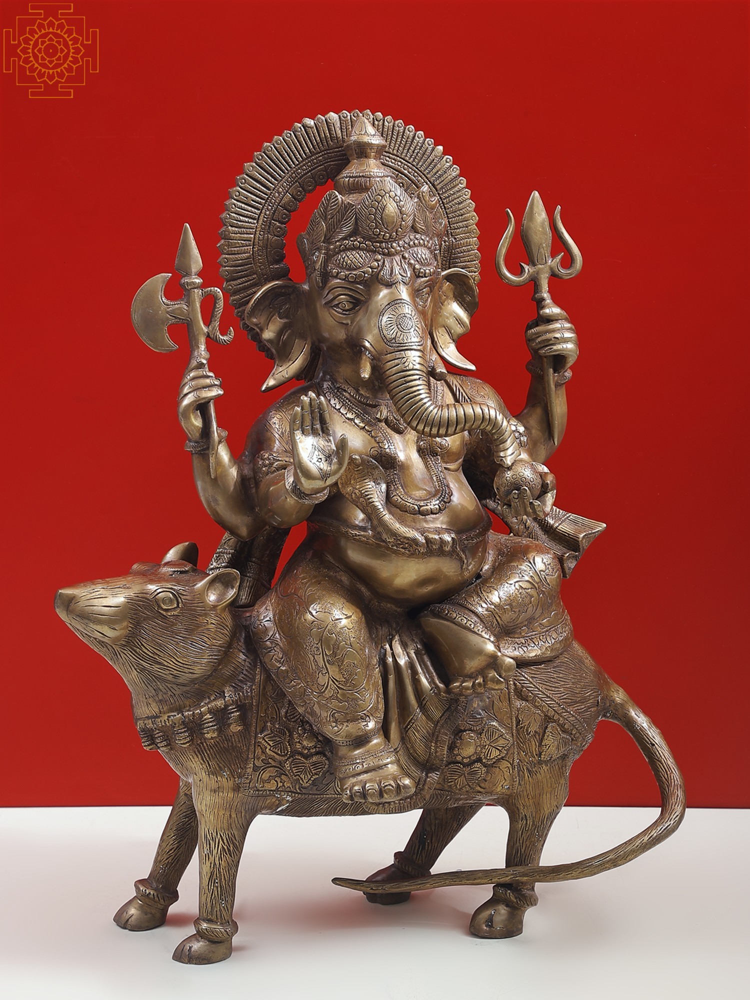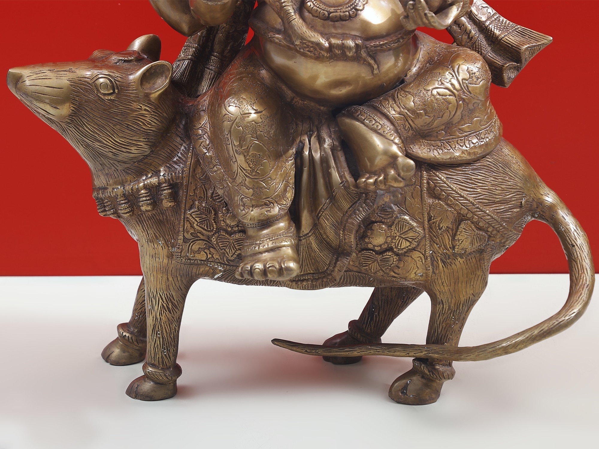 Shri Ganesha resides on his eternal ride ‘Mooshak’(his pet mouse) and one interesting feature here is that here the Rat completely looks like a sawari (ride) as we can see through the mouse’ position, it just looks like he is walking while carrying his master on his back.