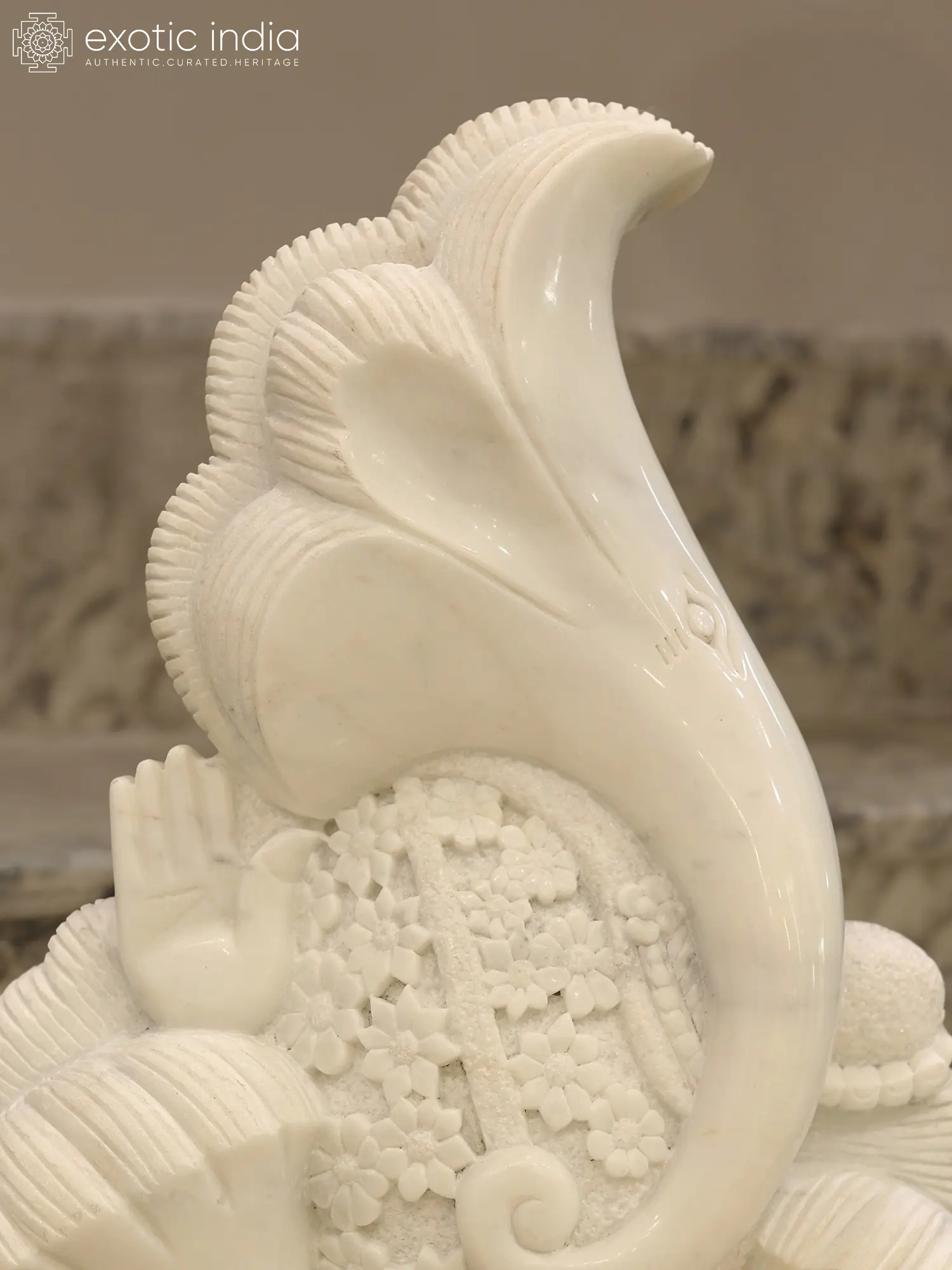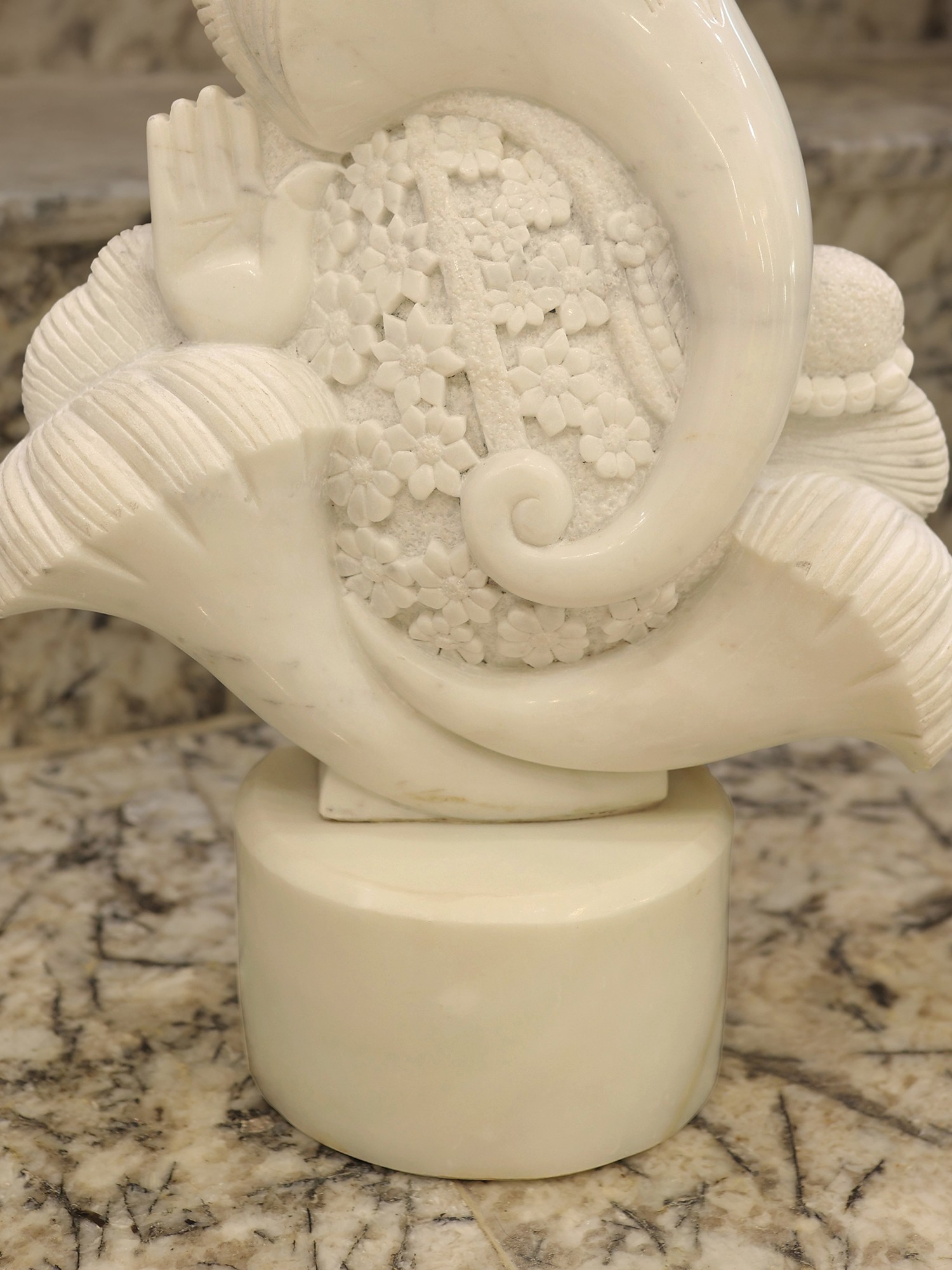 31" Lord Buddha Face | Modern Art Statue | White Marble | Exquisite Indian Art