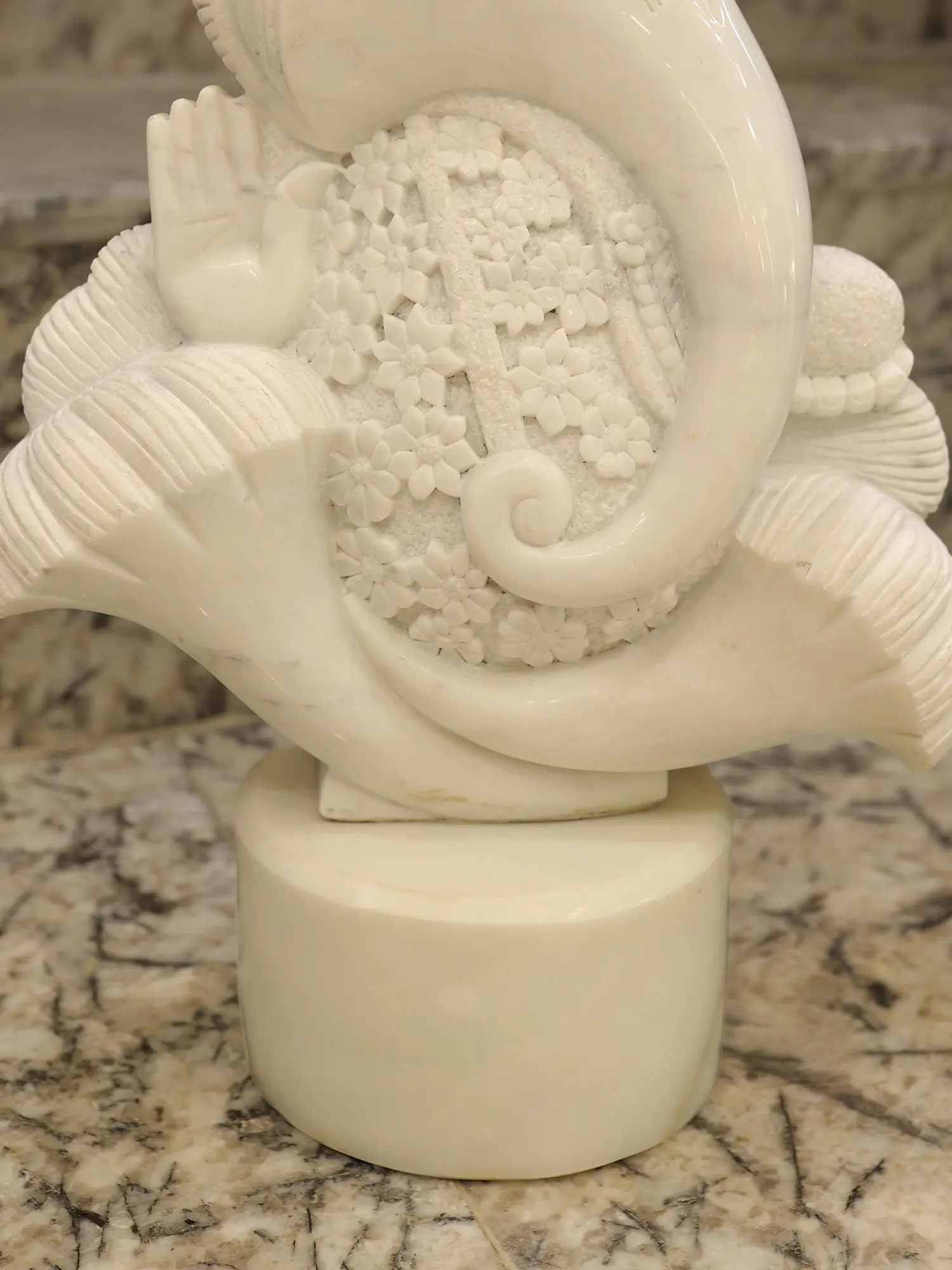 5" Small Clear Crystal Quartz Lord Ganesha Statue Seated with Peacock