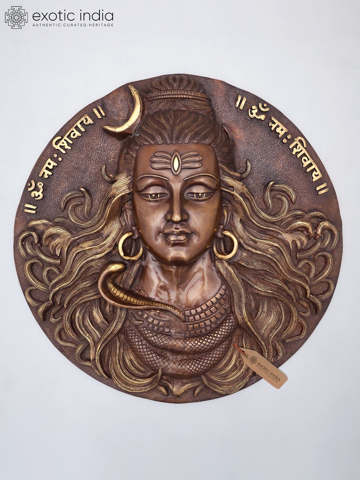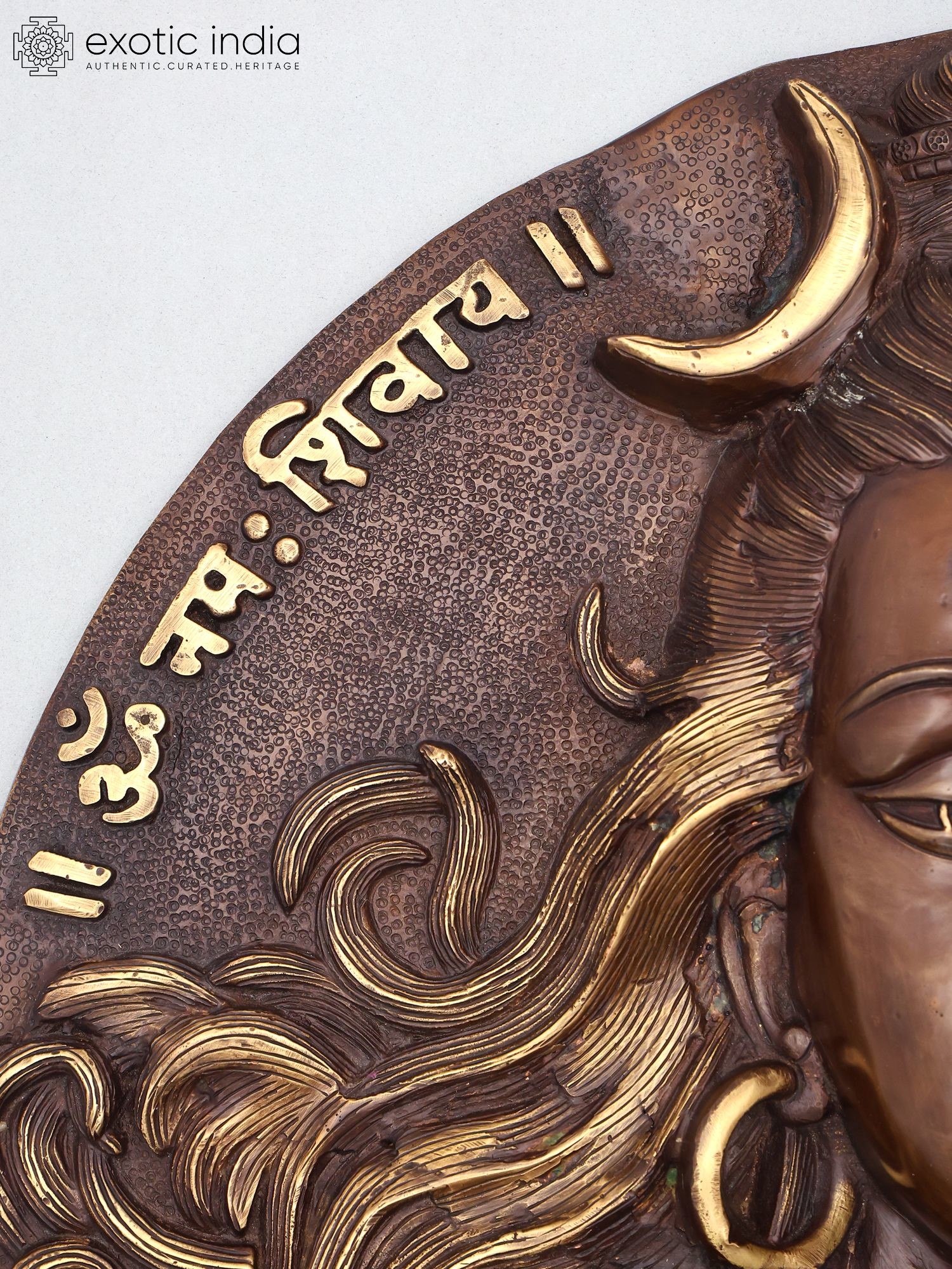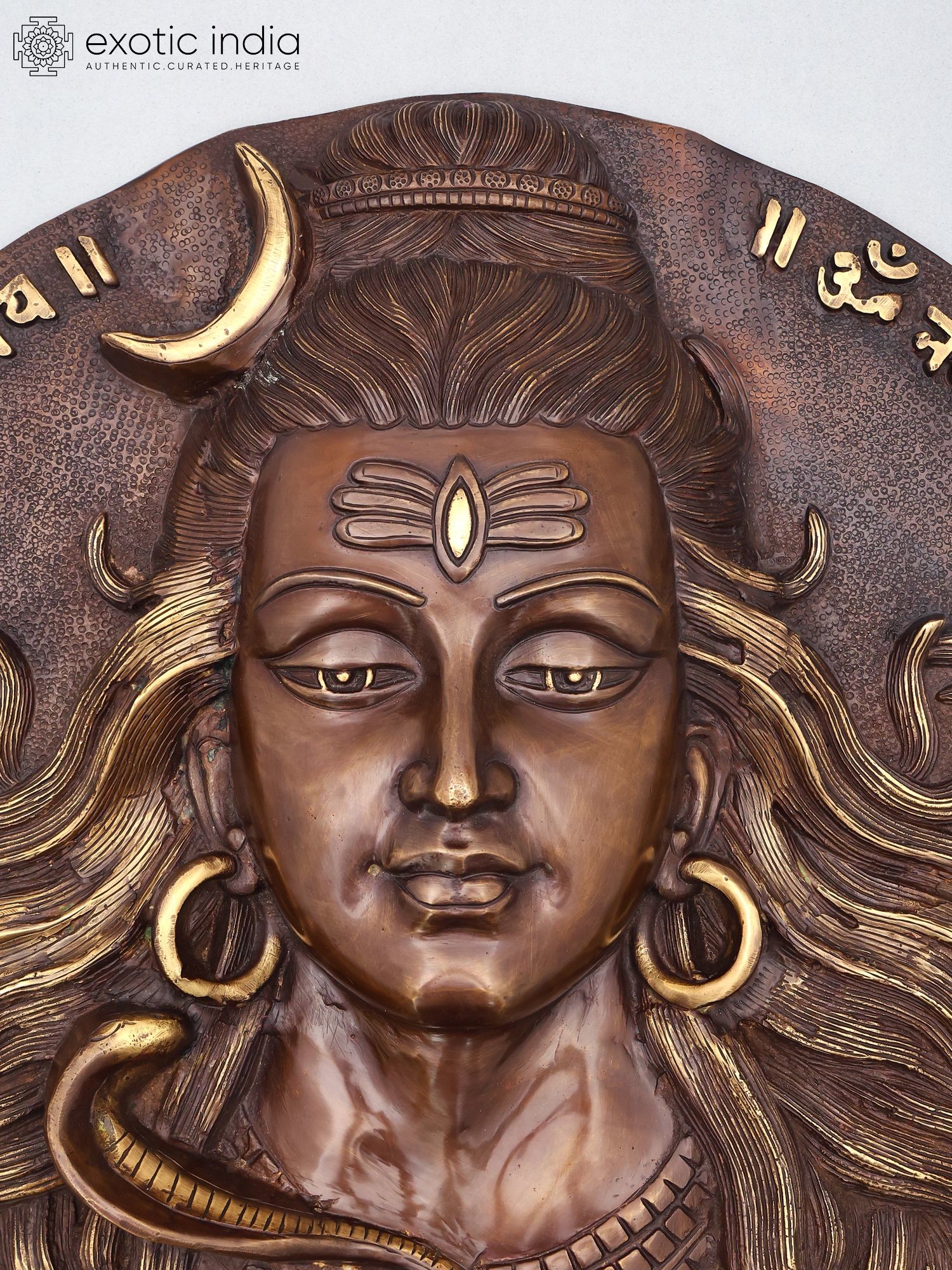 Intricate detailing showcases Shiva's iconic third eye, crescent moon, and serpentine adornments.