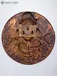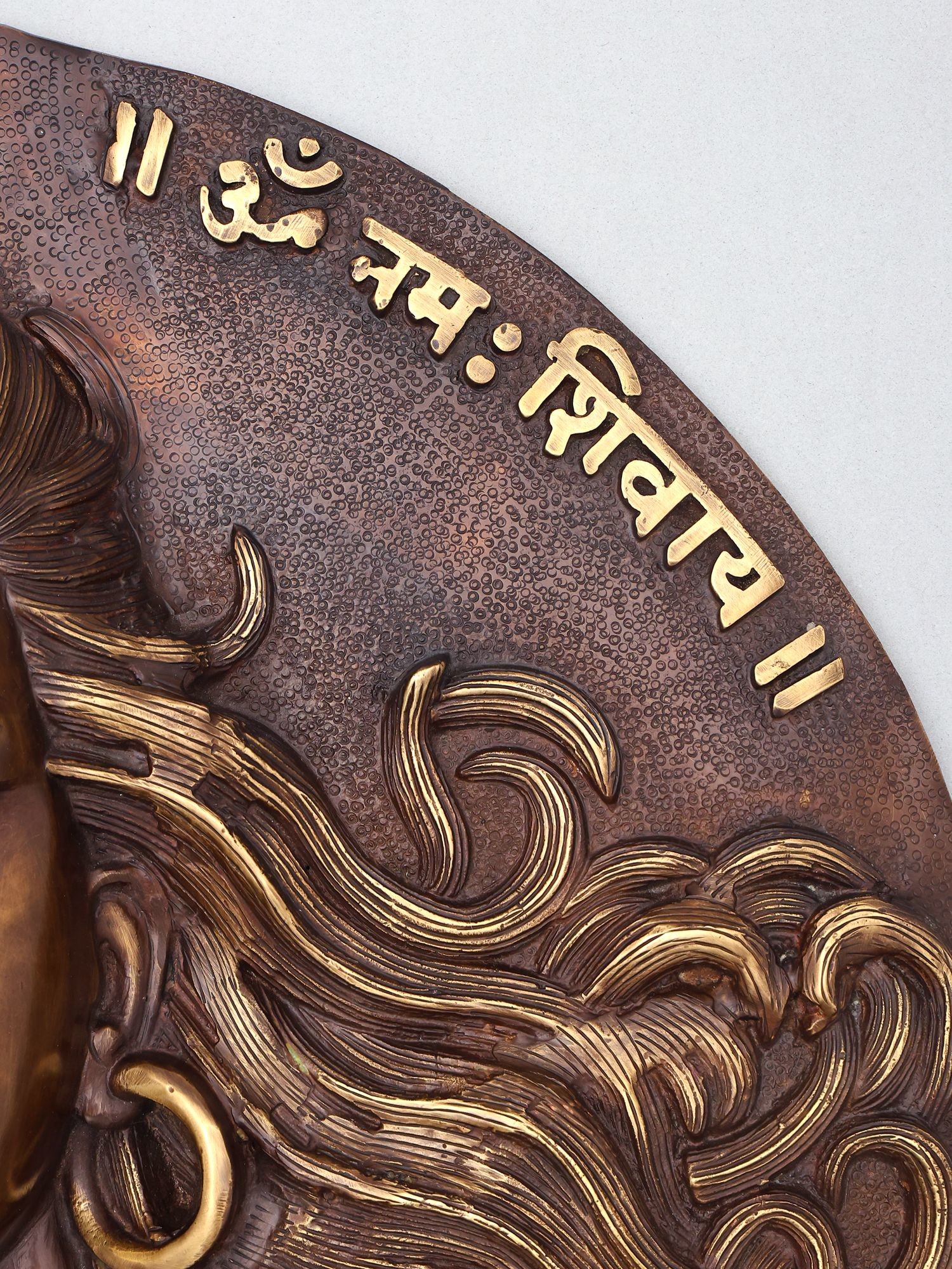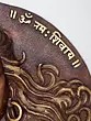 The circular design incorporates sacred Sanskrit inscriptions around the deity's visage.