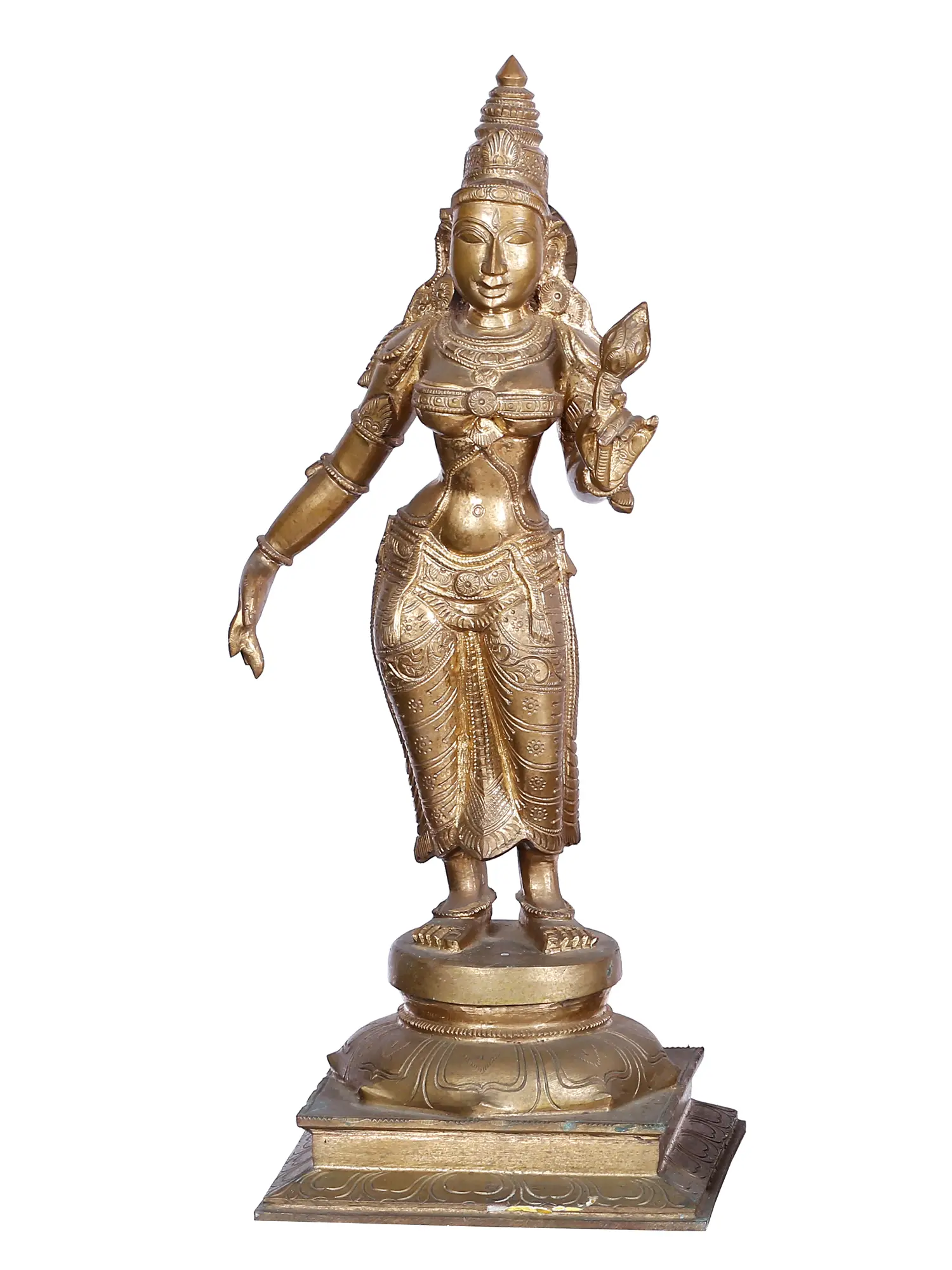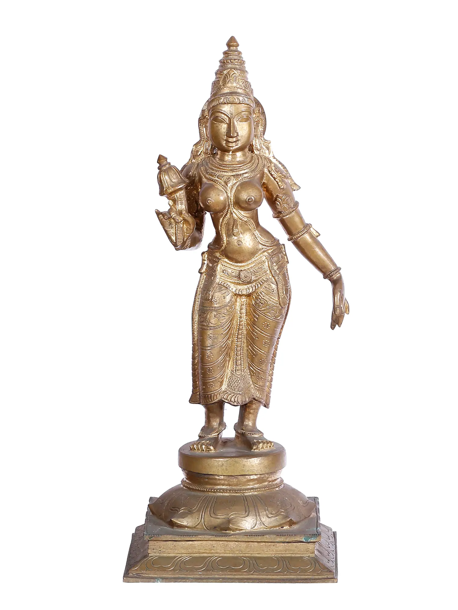 Lord Subramanya is exquisitely depicted in sculpture using the Madhuchista Vidhana, often known as the Lost-Wax method. This stunning artwork depicts Lord Subramanya's majestic appearance alongside his consorts, Devasena and Valli, inspiring devotion and reverence among the followers.