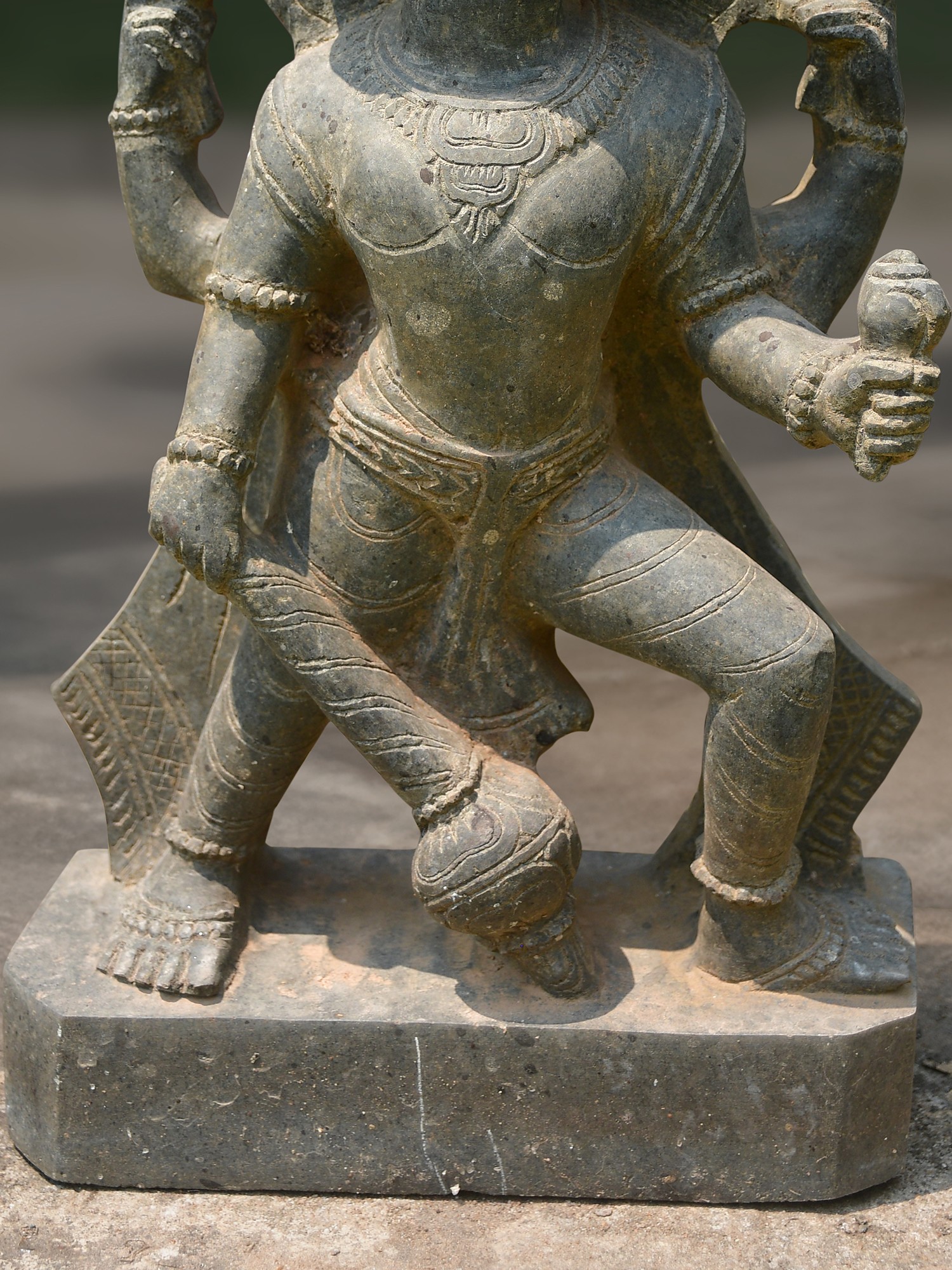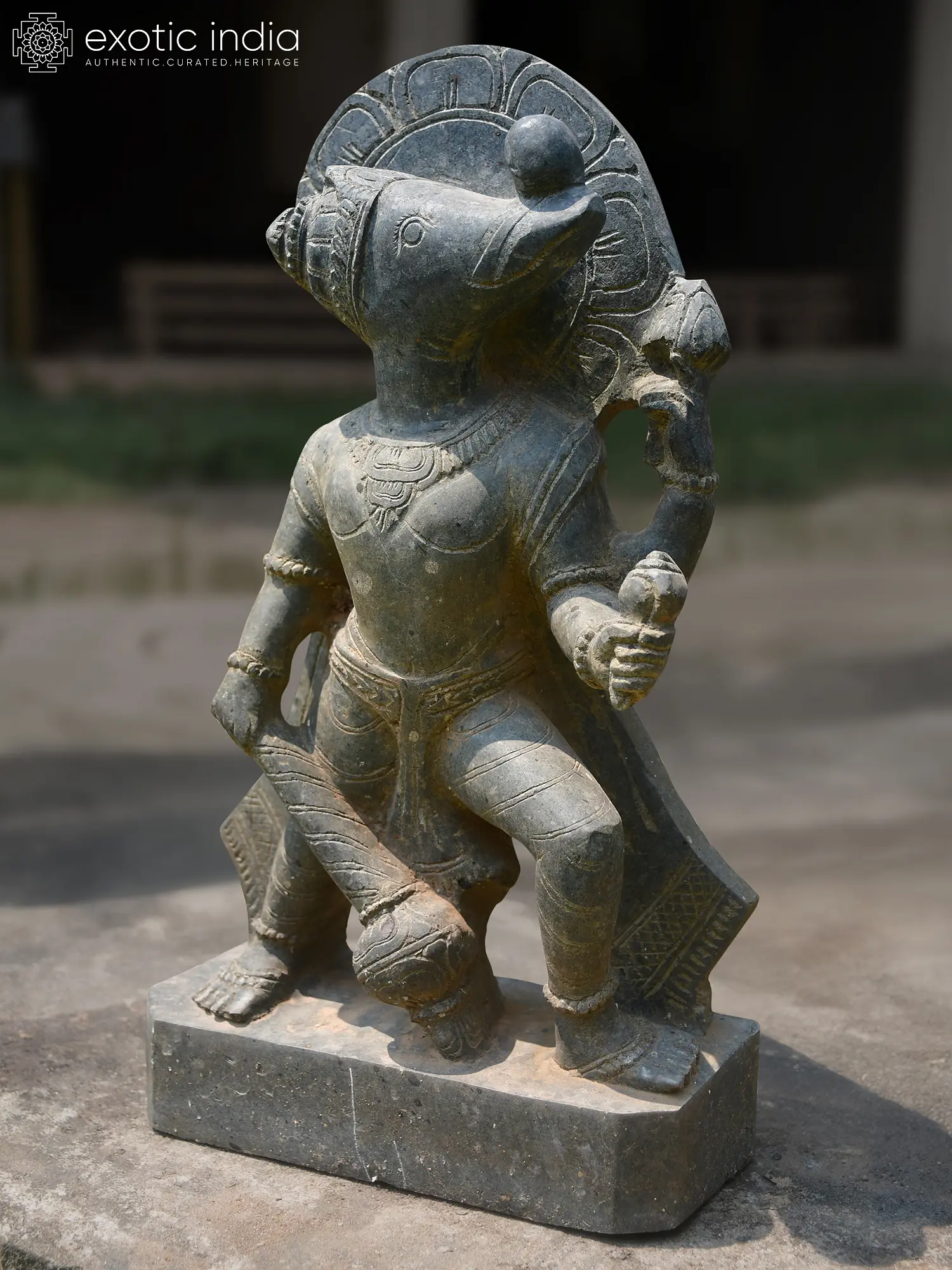 Carved with reverence from enduring Orissa stone, each detail of this sculpture speaks of generations of artisanal skill. The stone, chosen for its resilience and subtle tonal variations, is meticulously worked by hand to reveal the intricate form and powerful stance. You'll appreciate the subtle texture and the inherent character that only natural materials and dedicated craftsmanship can bestow, creating a piece that feels both ancient and vibrantly alive.