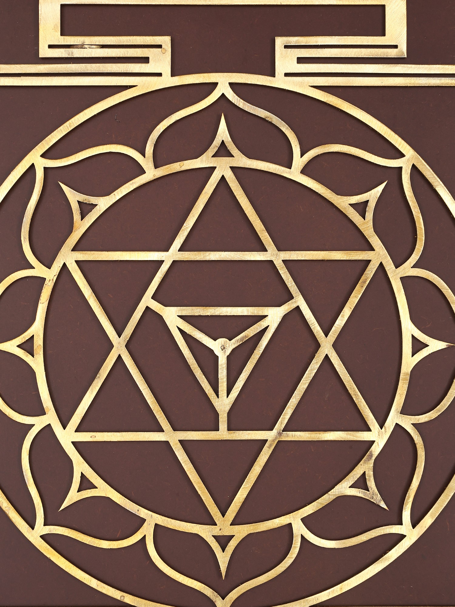 23" Tripura Sundari Yantra for spiritual growth, harmony, and protection | Brass Yantra on Wood Frame | Wall Hanging