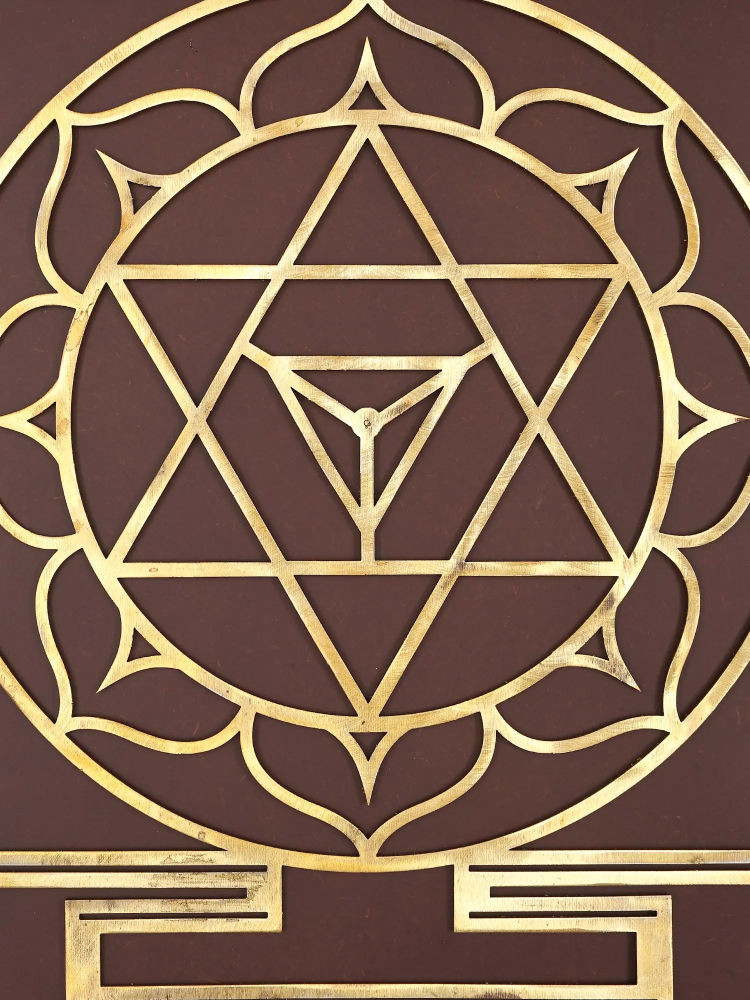 23" Bhuvaneshwari Yantra for Success, Abundance and Inner Peace | Brass Yantra on Wood Frame | Wall Hanging