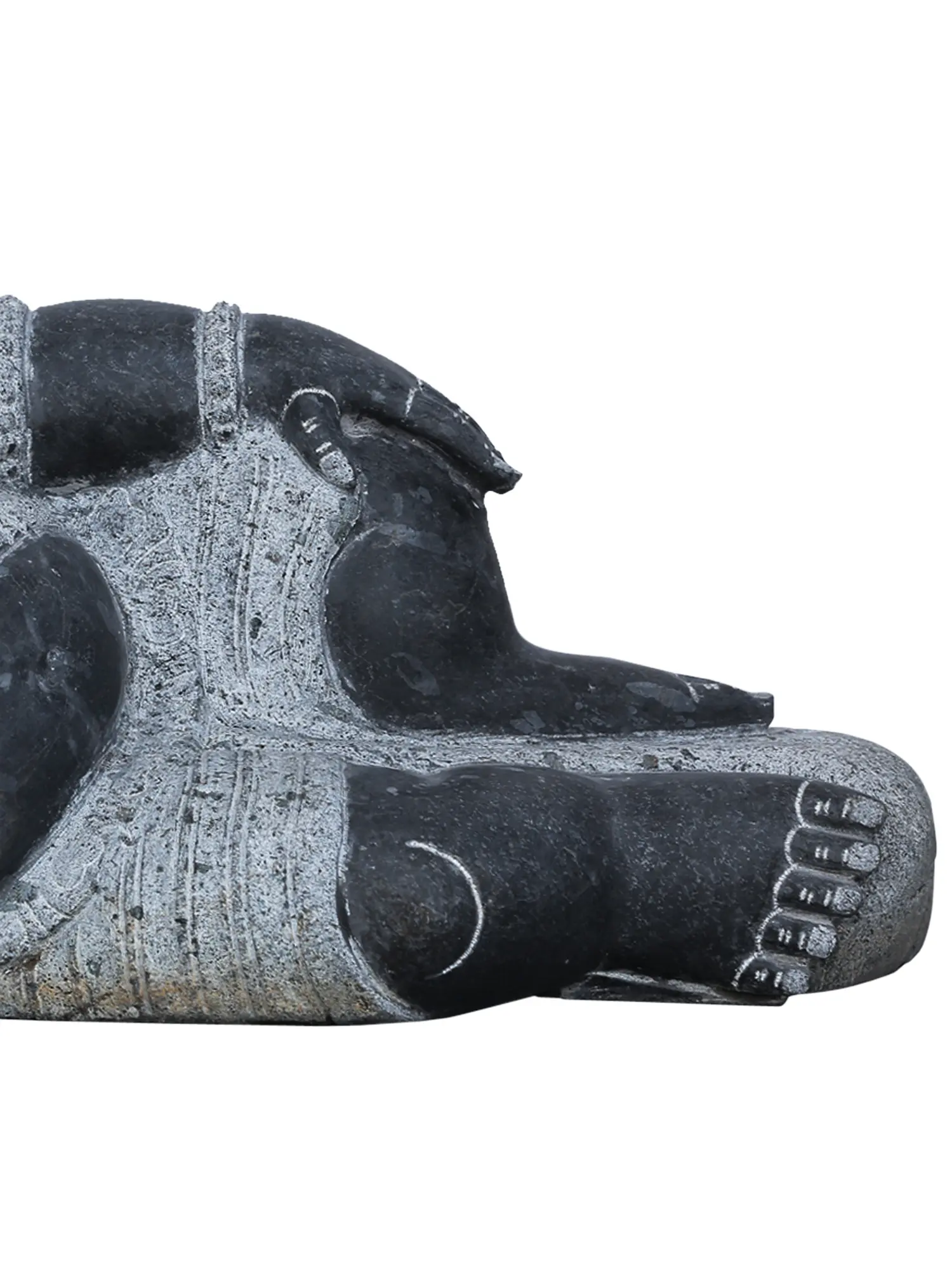 Crafted from granite stone, the statue typically showcases Ganesha with his characteristic features—large ears, a gentle smile, and a round belly—which reflect his nurturing and benevolent nature.