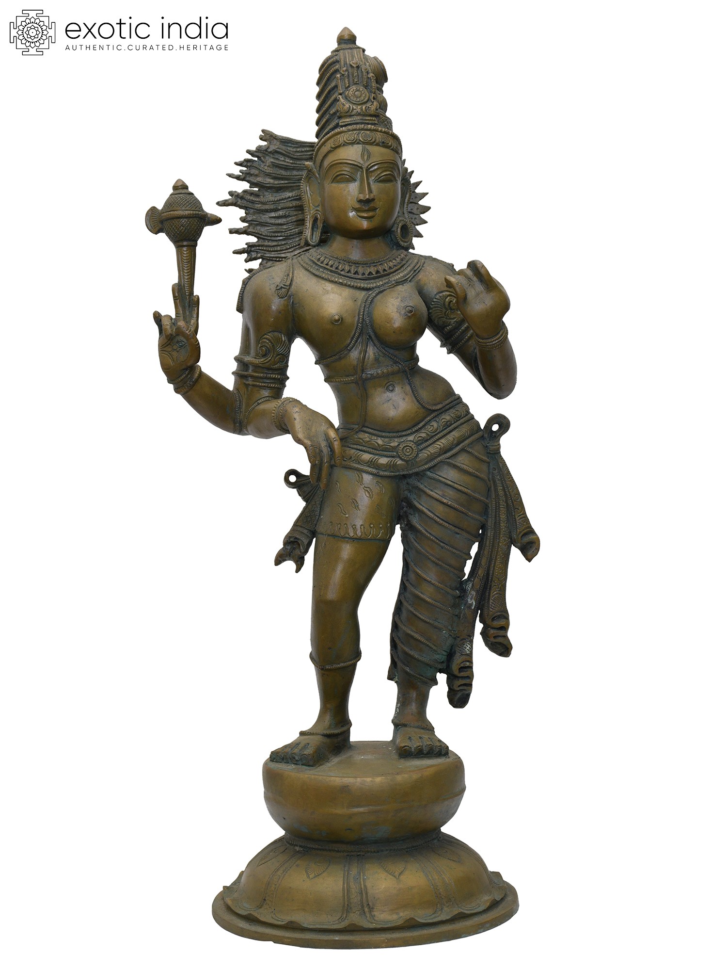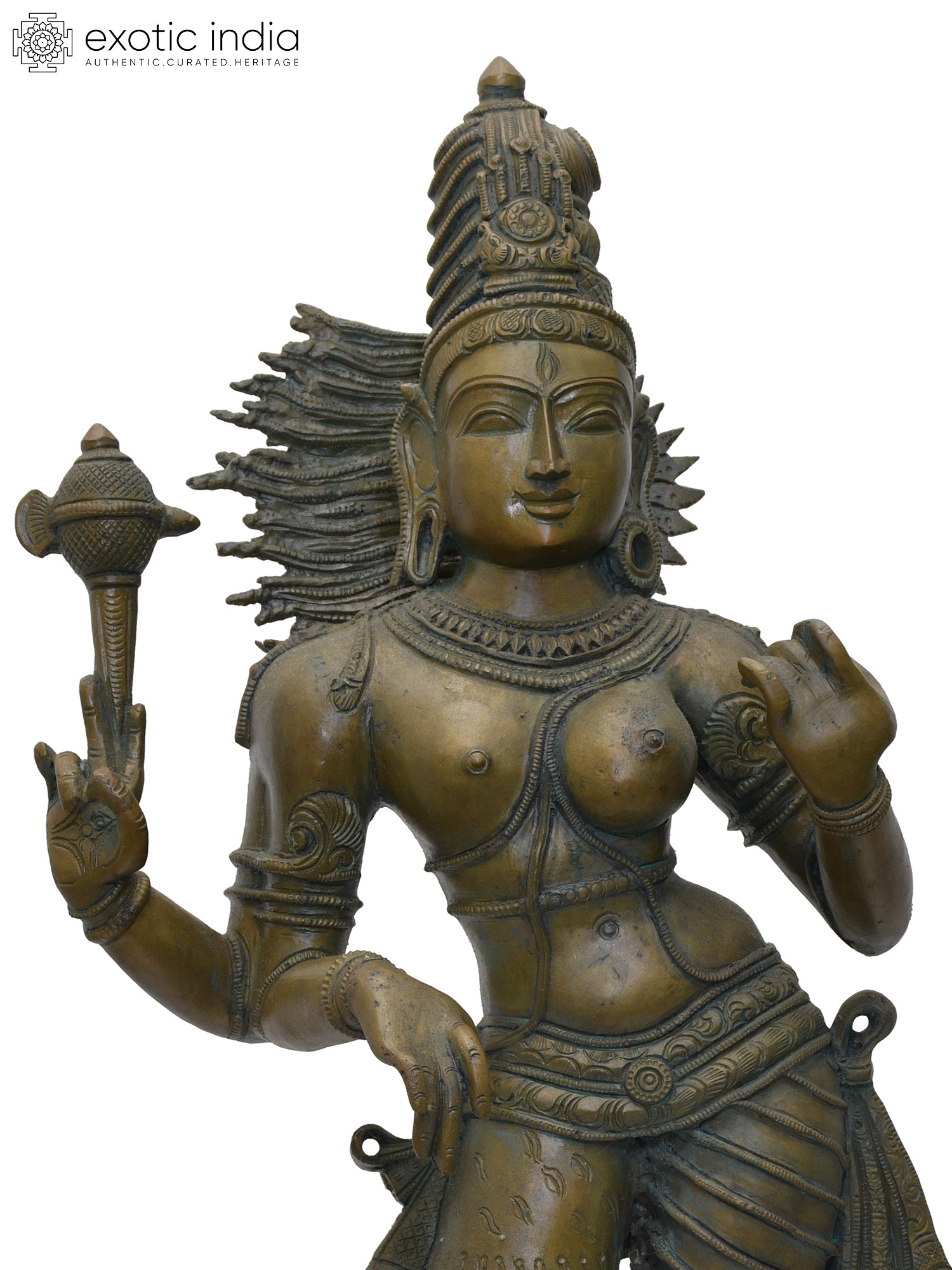 19" Ardhanarishvara - Divine Union of Shiva and Shakti | Madhuchista Vidhana (Lost-Wax) | Panchaloha Bronze from Swamimalai