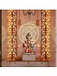 Devi Radha holds a lotus in her left hand, on which a peacock gently pecks. Mayura, a beloved bird of Krishna is often used in art to symbolize Krishna’s presence, who seems to have taken the feathered form to relish in the company of his lovely Radharani. With her hand raised in Abhaya mudra, to assure those who take refuge in her, Radha in this glistening statue is a picture of purity and benevolence that makes one beloved of the Lord.