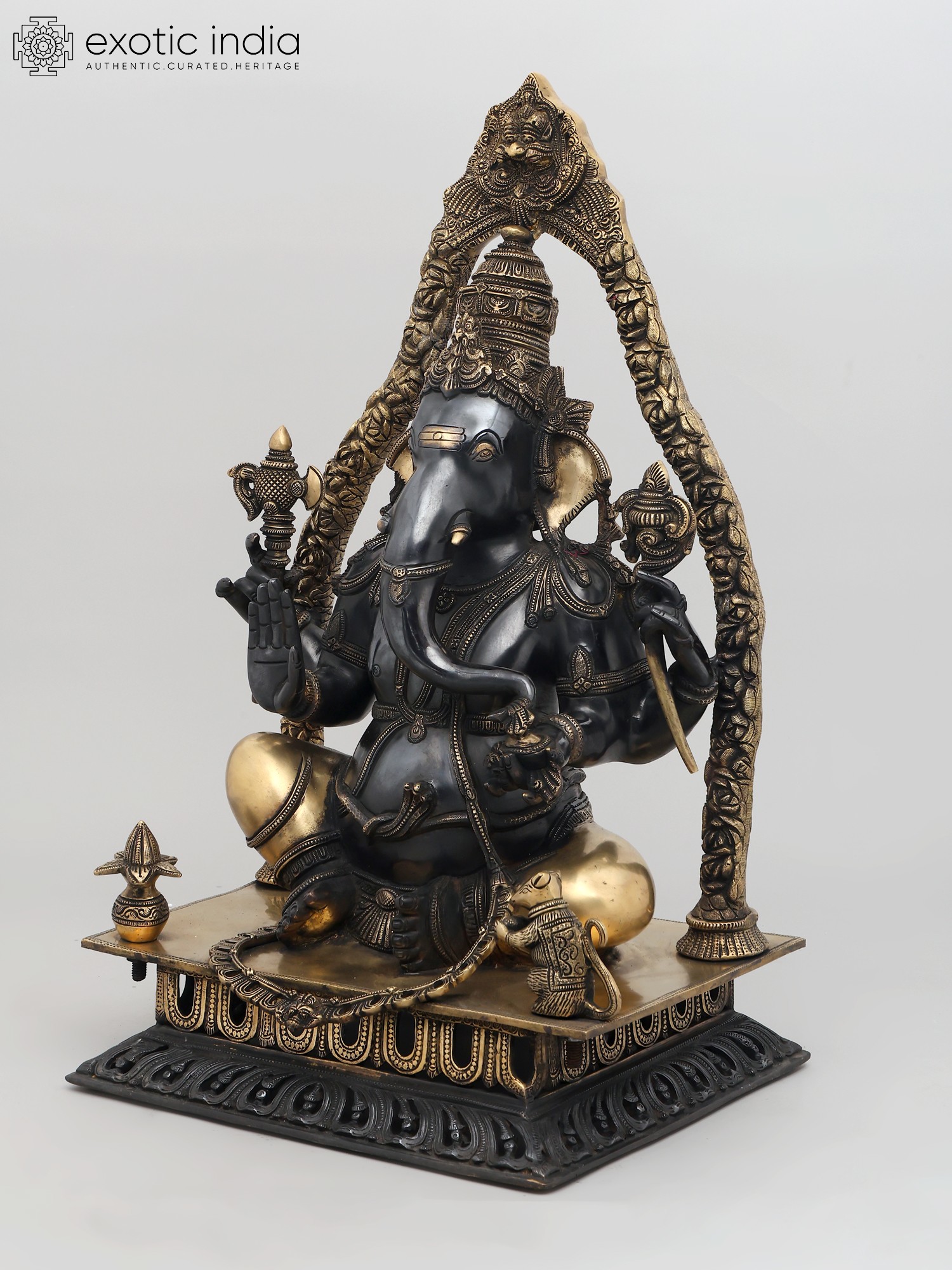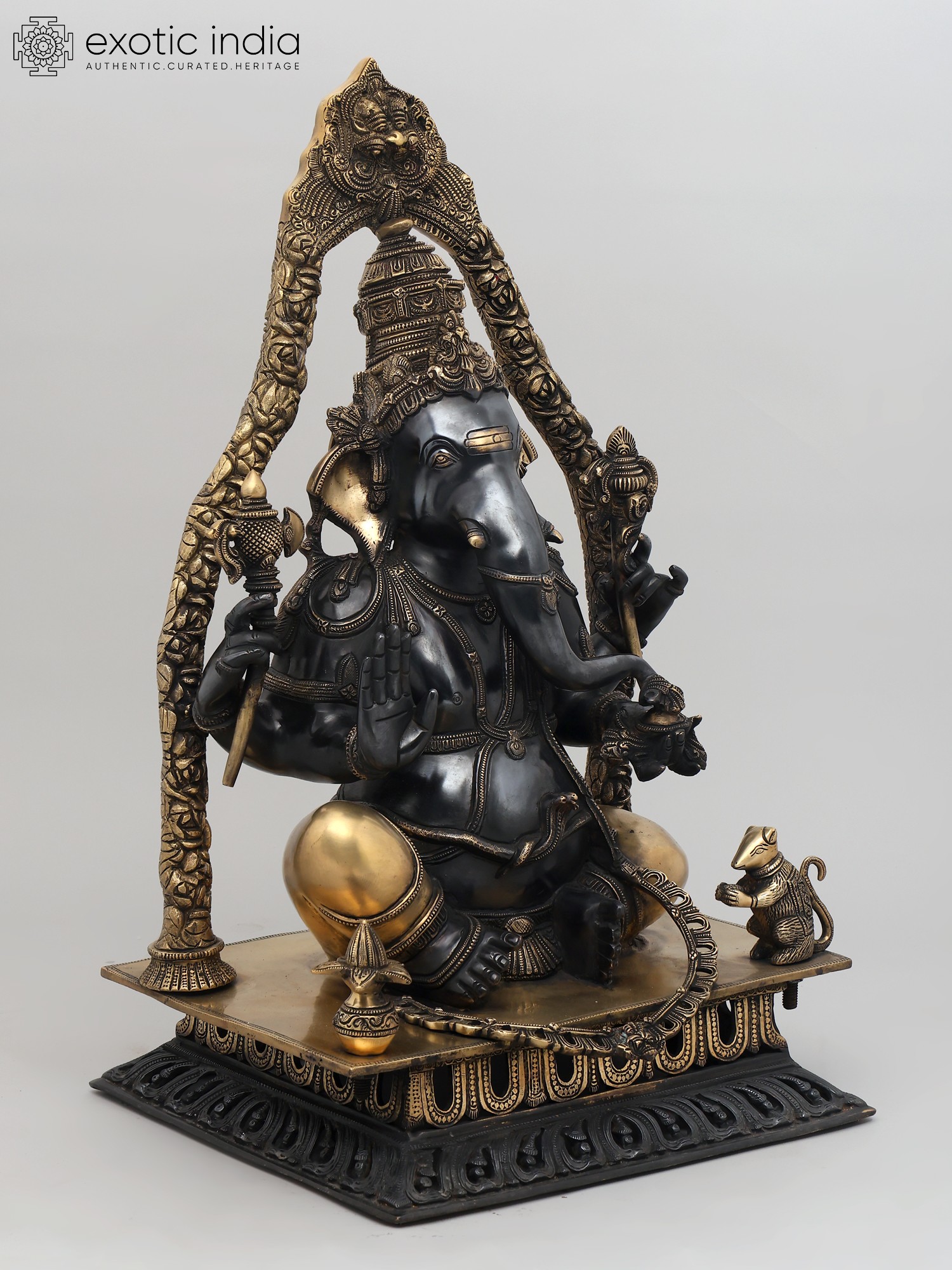 12" Chaturbhuja Ganesha In Brass | Handmade | Made In India
