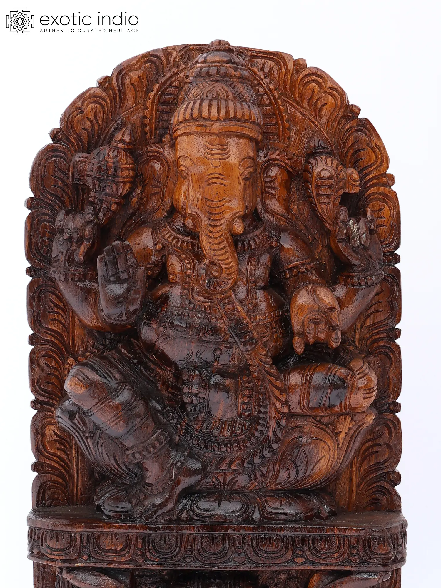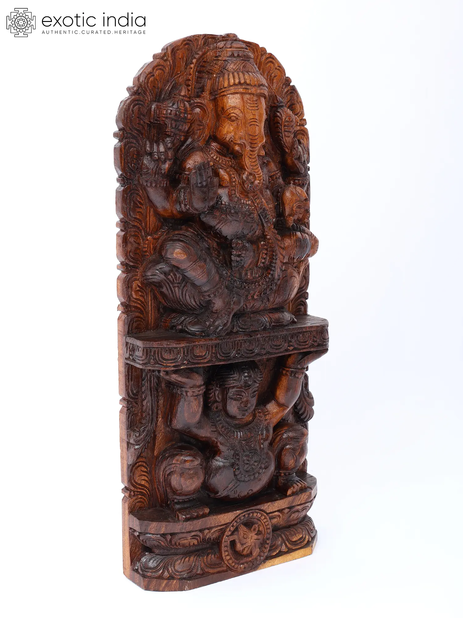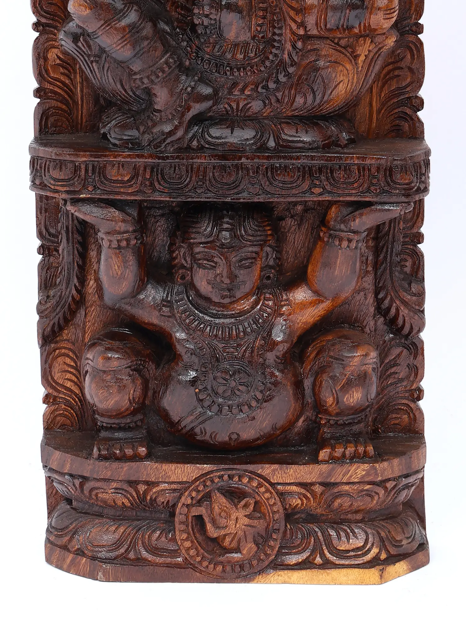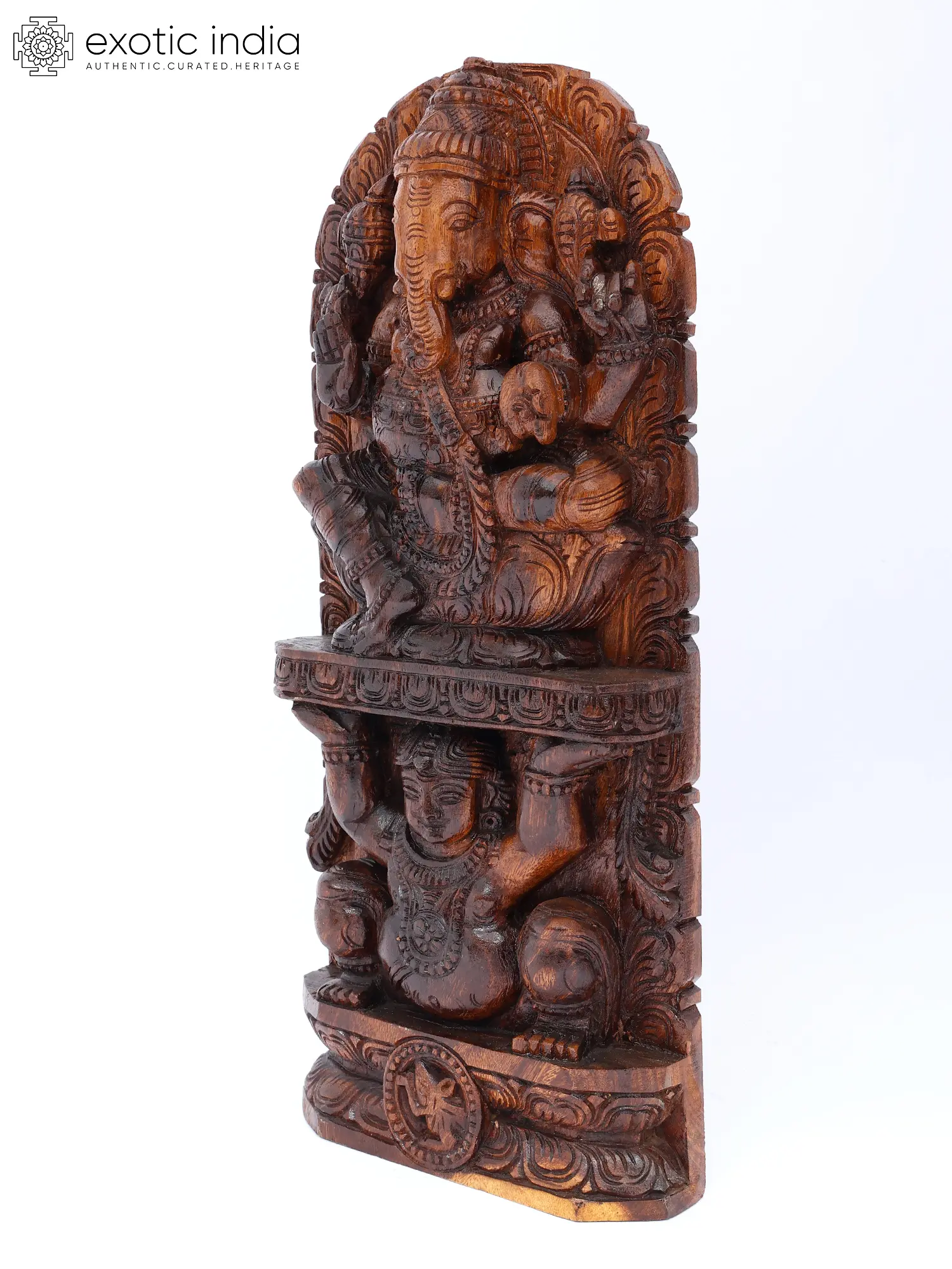 10" Lakshmi Ganesha Idol in Wooden Frame with Bells | Handmade Brass Figurine