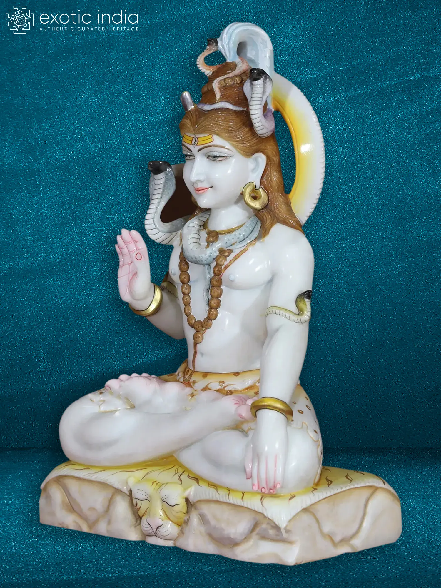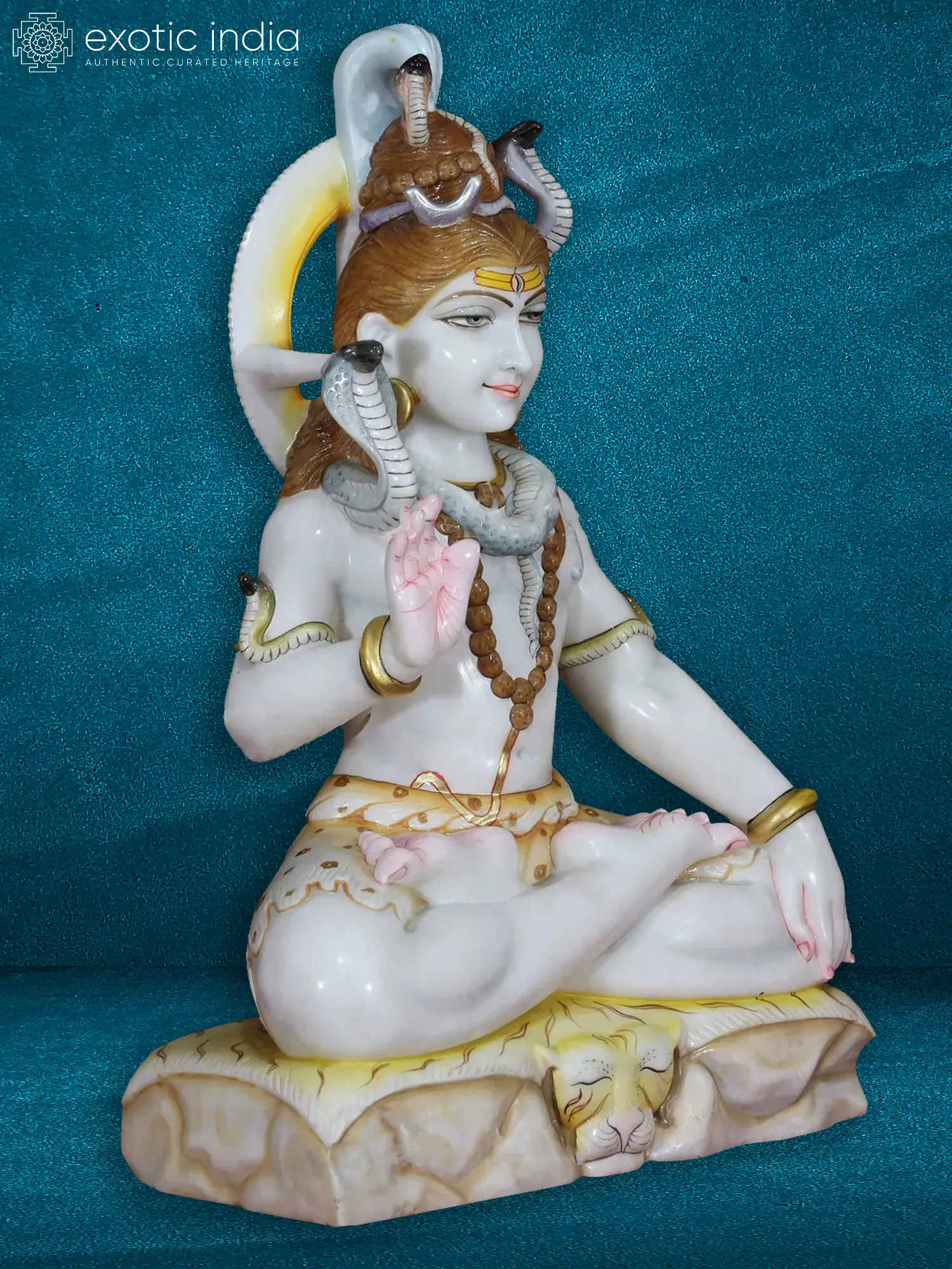 30" Lord Shiva Seated On Stone Asana | White Makrana Marble Statue