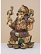 24" Brass Lord Ganesha Seated on Lotus with Inlay Work | Handmade