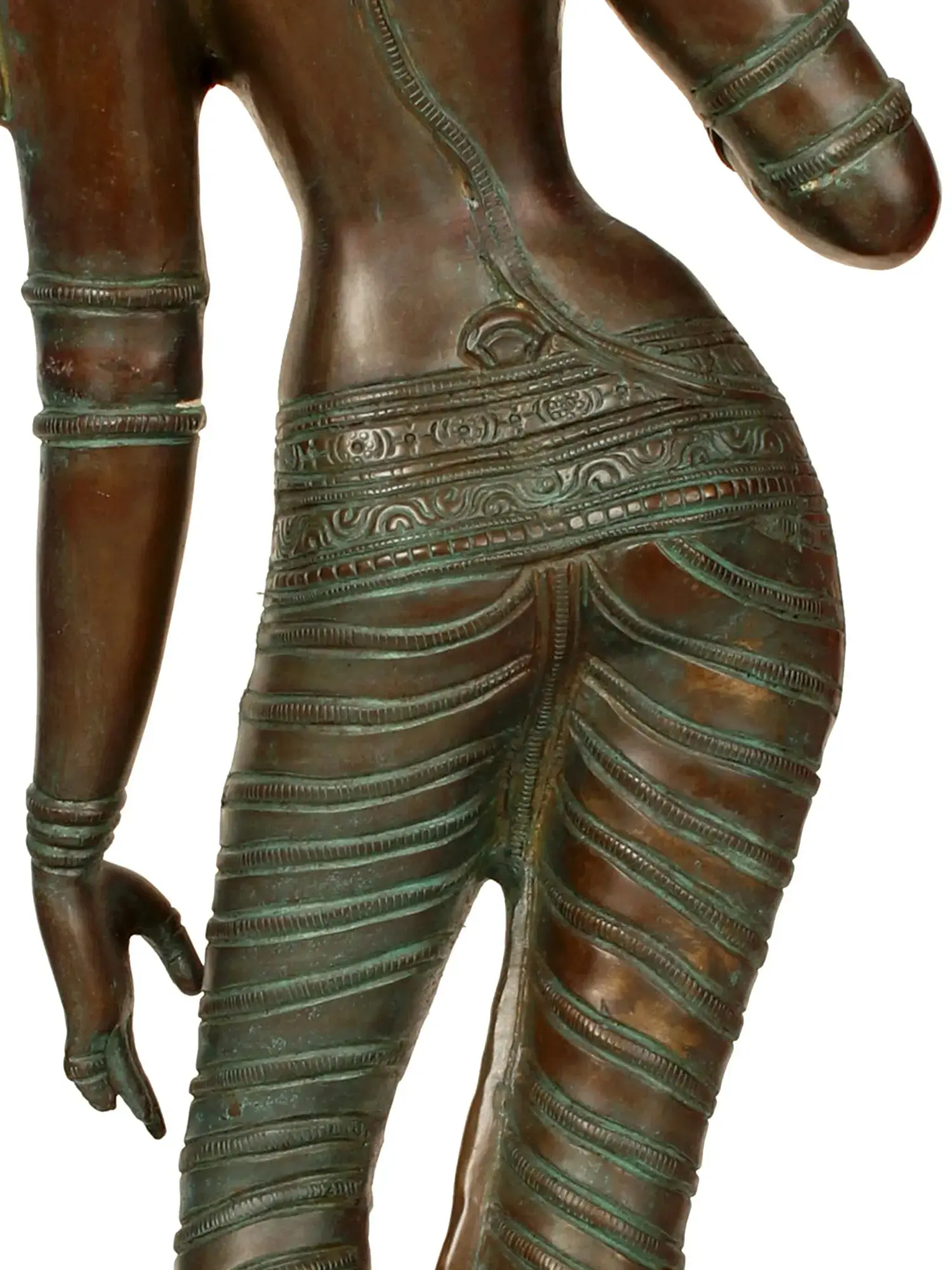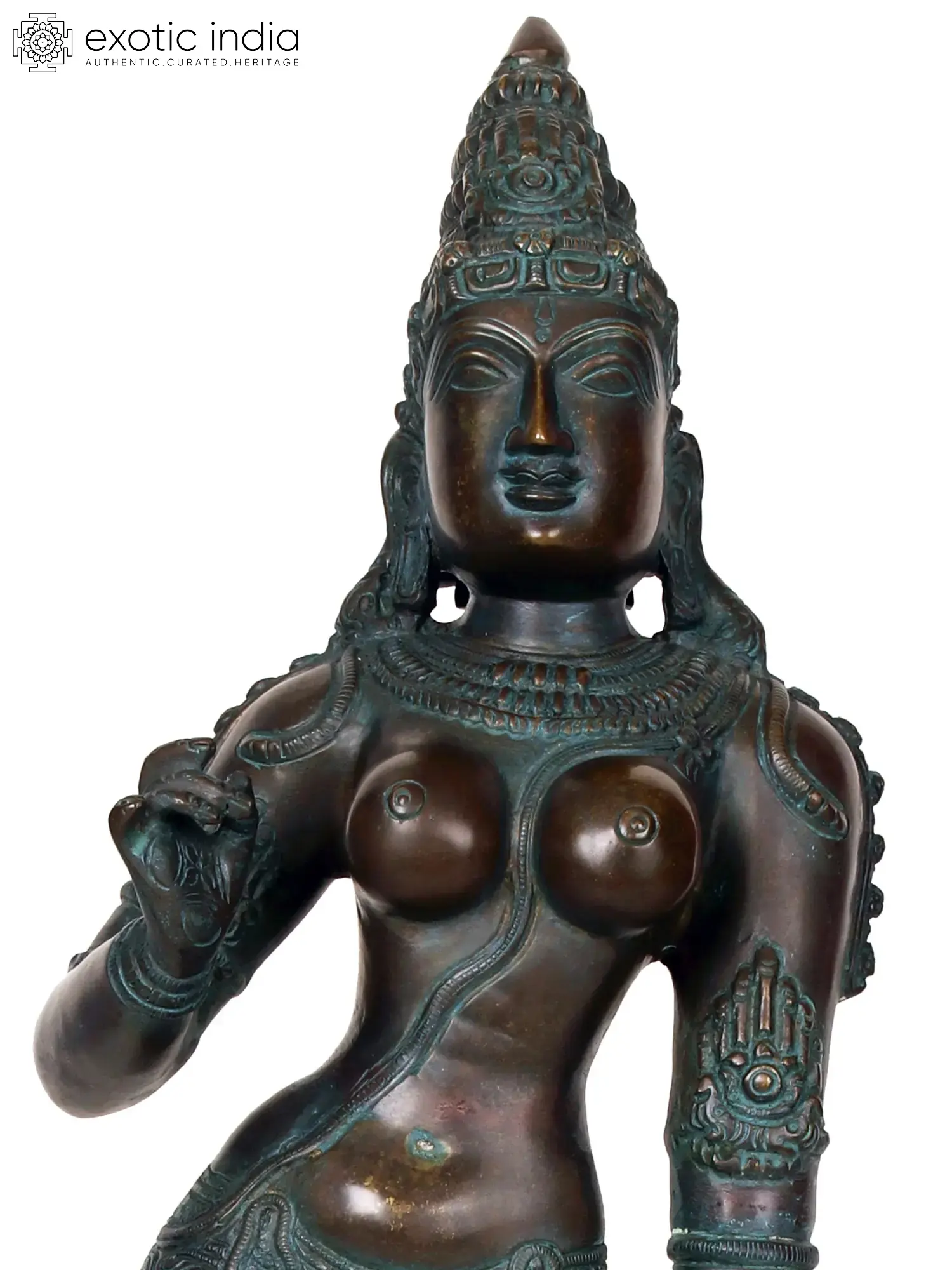This exquisite brass statue captures the divine essence of Devi Uma, also known as Sivagami, a supreme goddess in Hinduism, revered as the mother of the universe and the consort of Lord Shiva. Crafted with meticulous detail, this masterpiece stands as a testament to the enduring traditions of Indian craftsmanship. Uma represents the benevolent and nurturing aspect of the divine feminine, embodying compassion, power, and grace. She is the quintessential mother goddess, the primordial energy from which all creation emanates, and the force that sustains life itself. –––––––––––––––––––