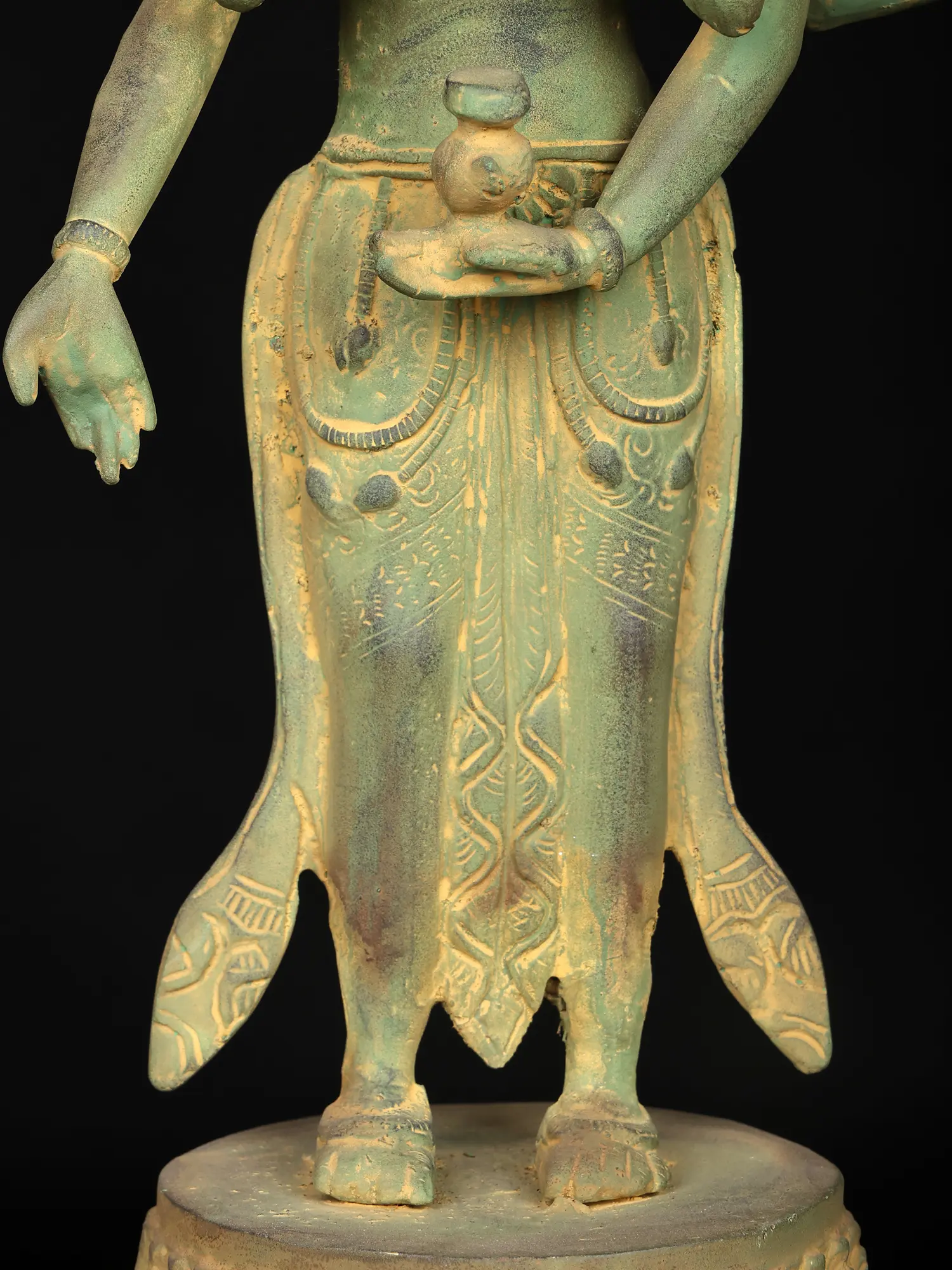 To preserve the exquisite beauty and spiritual integrity of this brass creation, we recommend dusting it gently with a soft, dry cloth. Avoid the use of abrasive cleaners or harsh chemicals, which can detract from its unique patina and intricate details. By providing this simple care, you ensure that this embodiment of boundless compassion remains a cherished and inspiring treasure for generations to come, its presence a constant reminder of wisdom and loving-kindness.