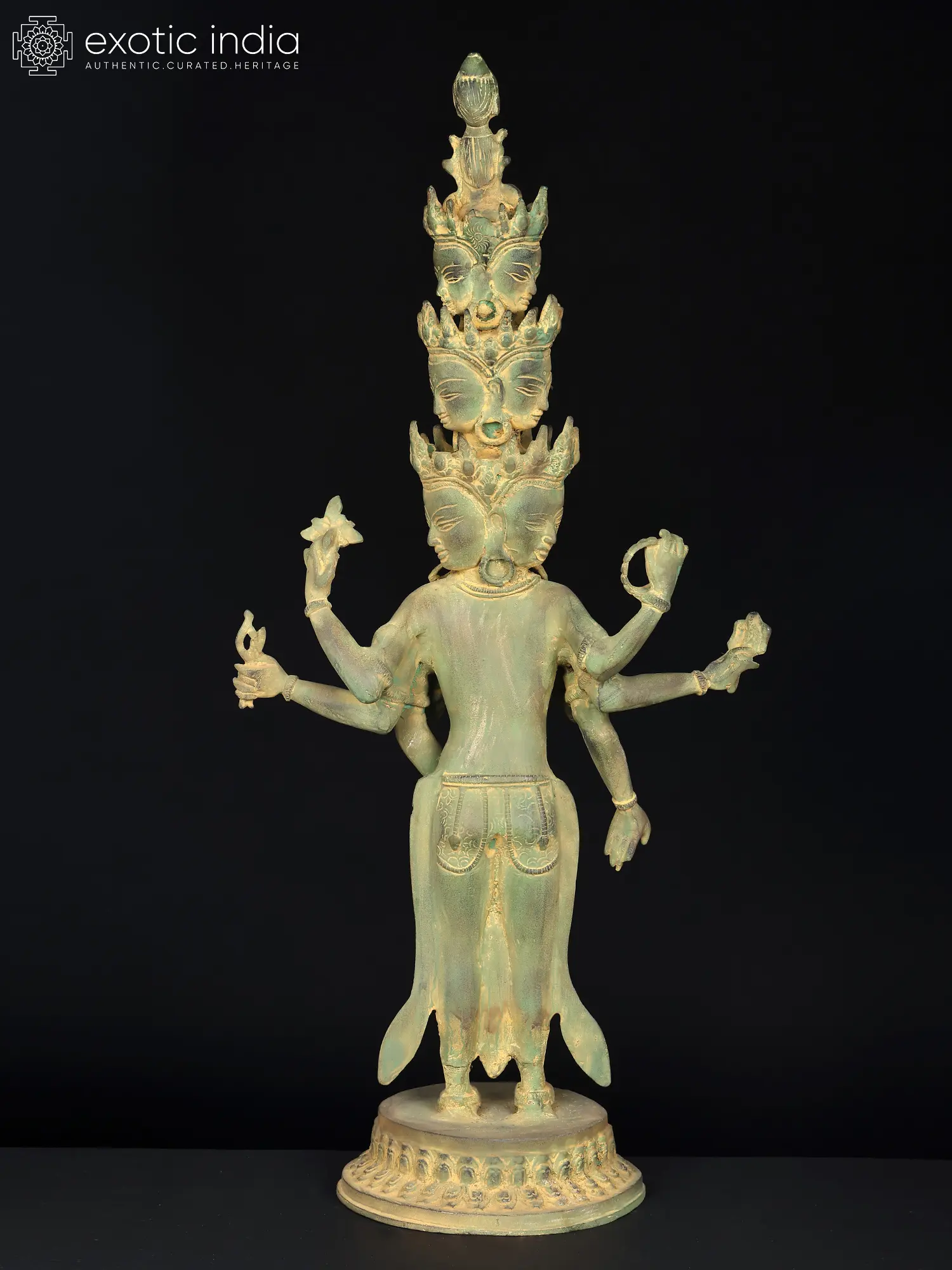 23" Eleven-Headed Eight-Armed Avalokiteshvara Brass Statue | Handmade | Made in India