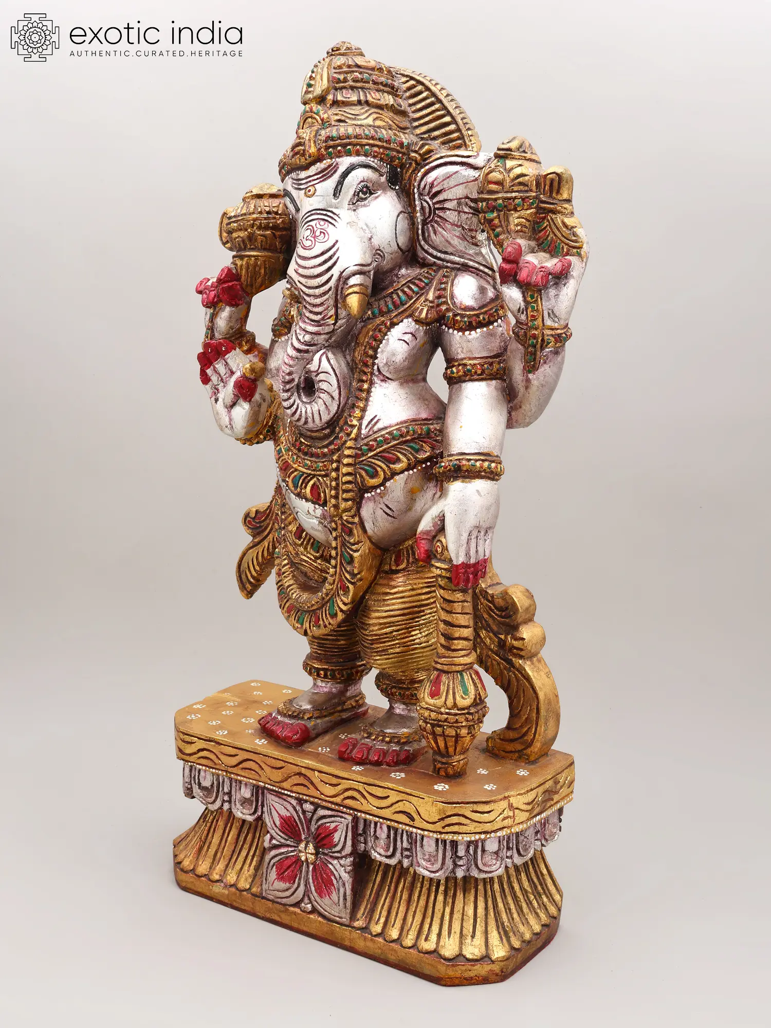 24" Four Armed Standing Lord Ganesha | Wood Carving