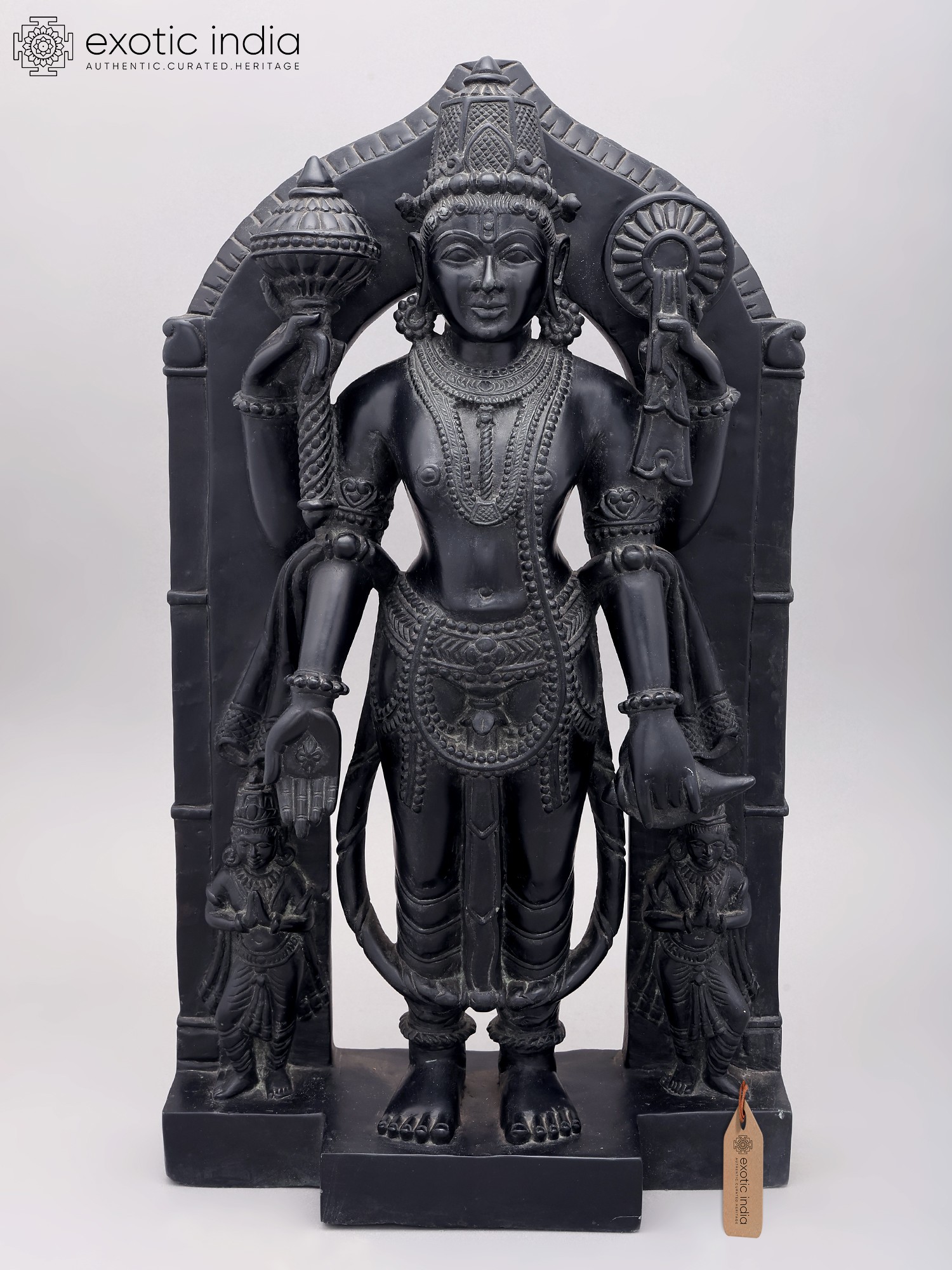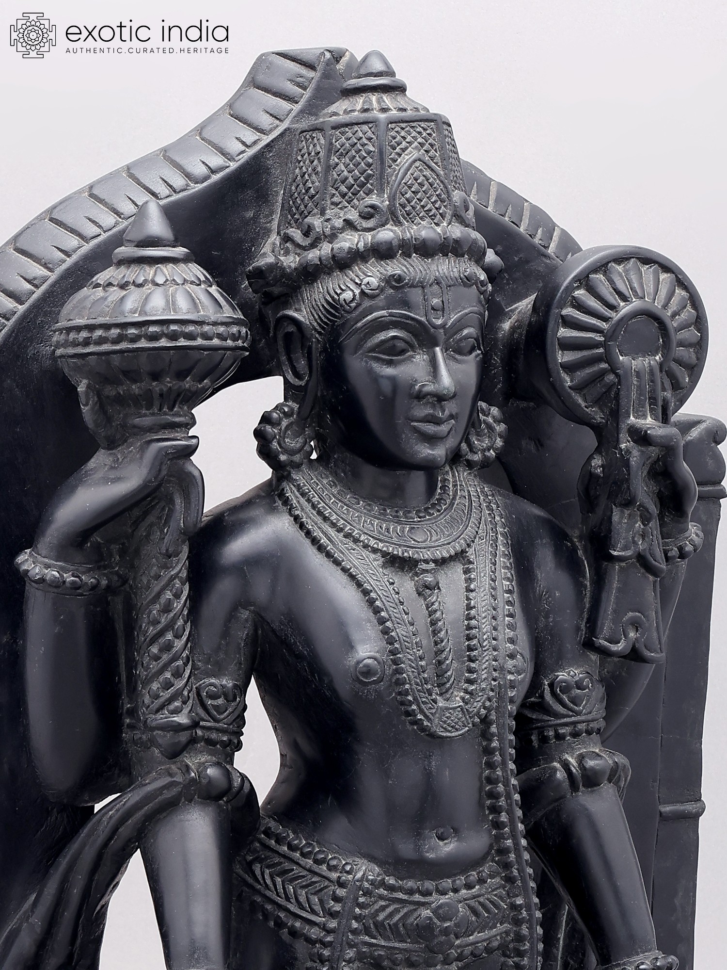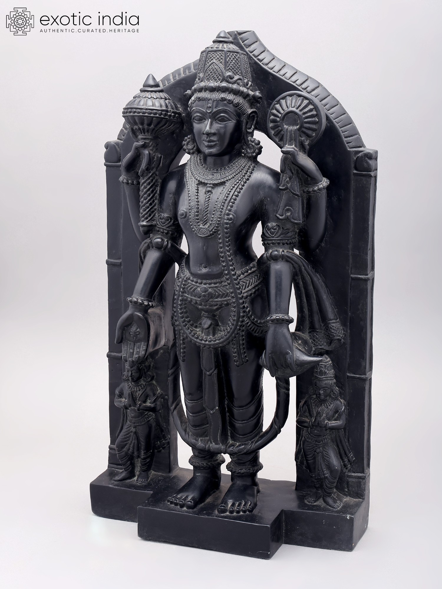 Features a detailed representation of Lord Vishnu, the preserver in the Hindu trinity.