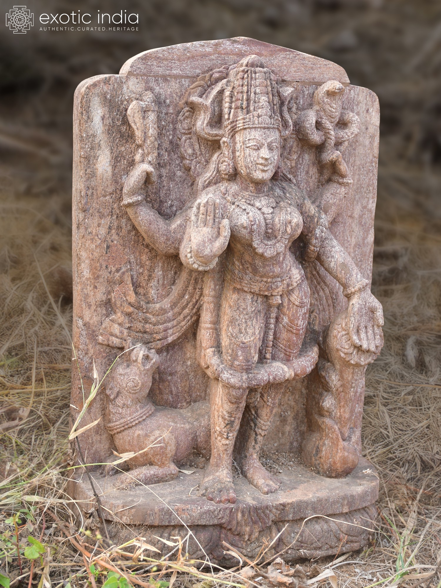 Crafted from durable Orissa sandstone, this piece is designed to withstand the elements and age gracefully, developing a beautiful patina over time. To maintain its pristine appearance, a gentle dusting with a soft brush or cloth is sufficient; avoid harsh chemicals or abrasive cleaners. By providing such simple care, you ensure that this exquisite work of art will remain a cherished heirloom, a timeless symbol of artistry and heritage for generations to come.
