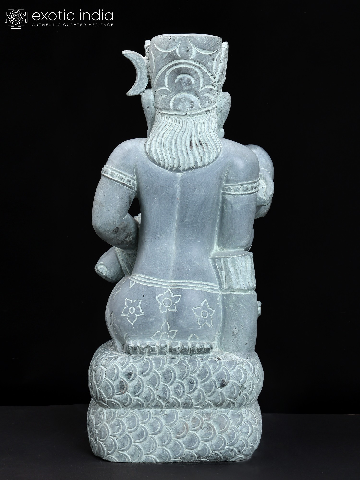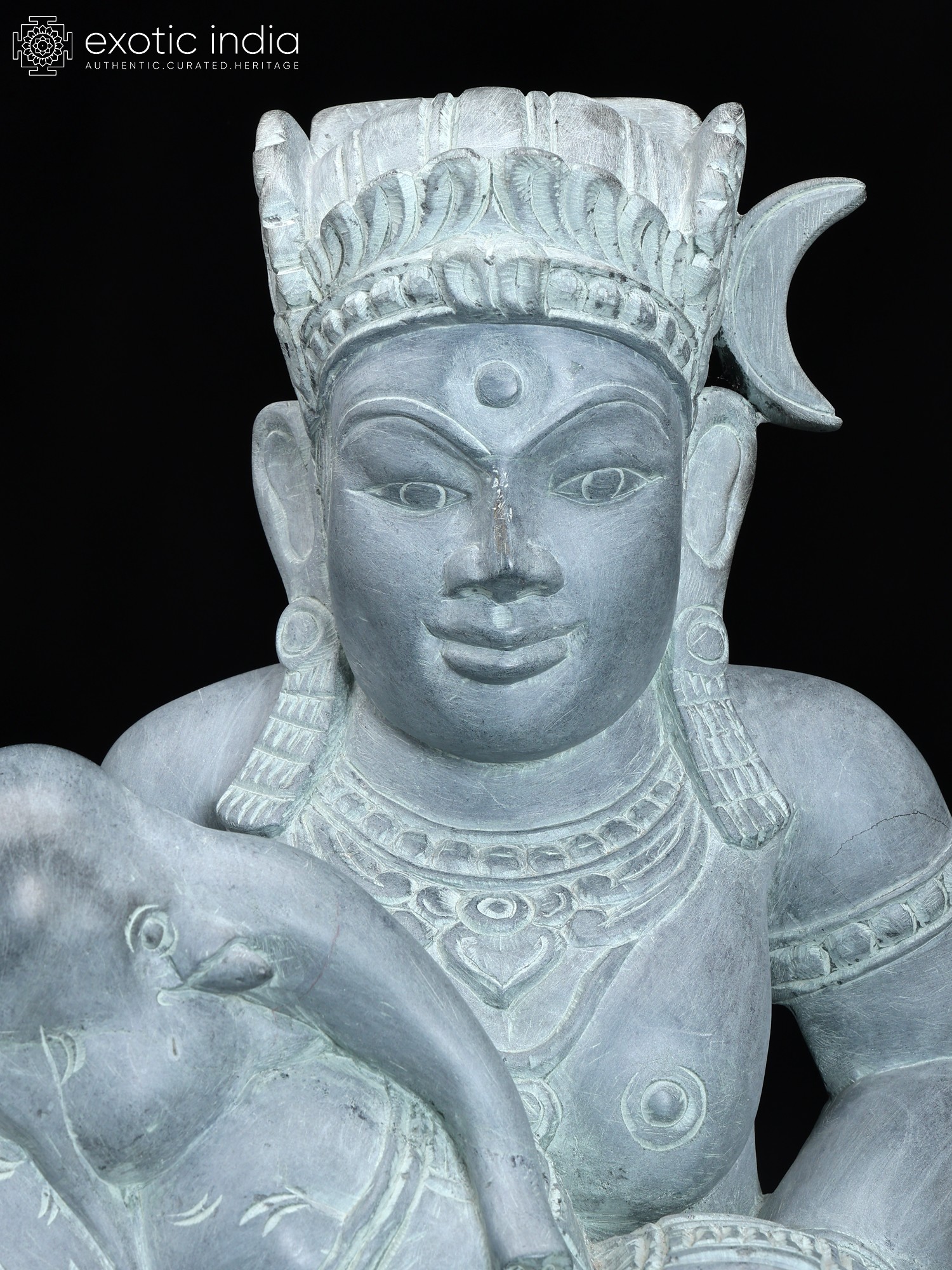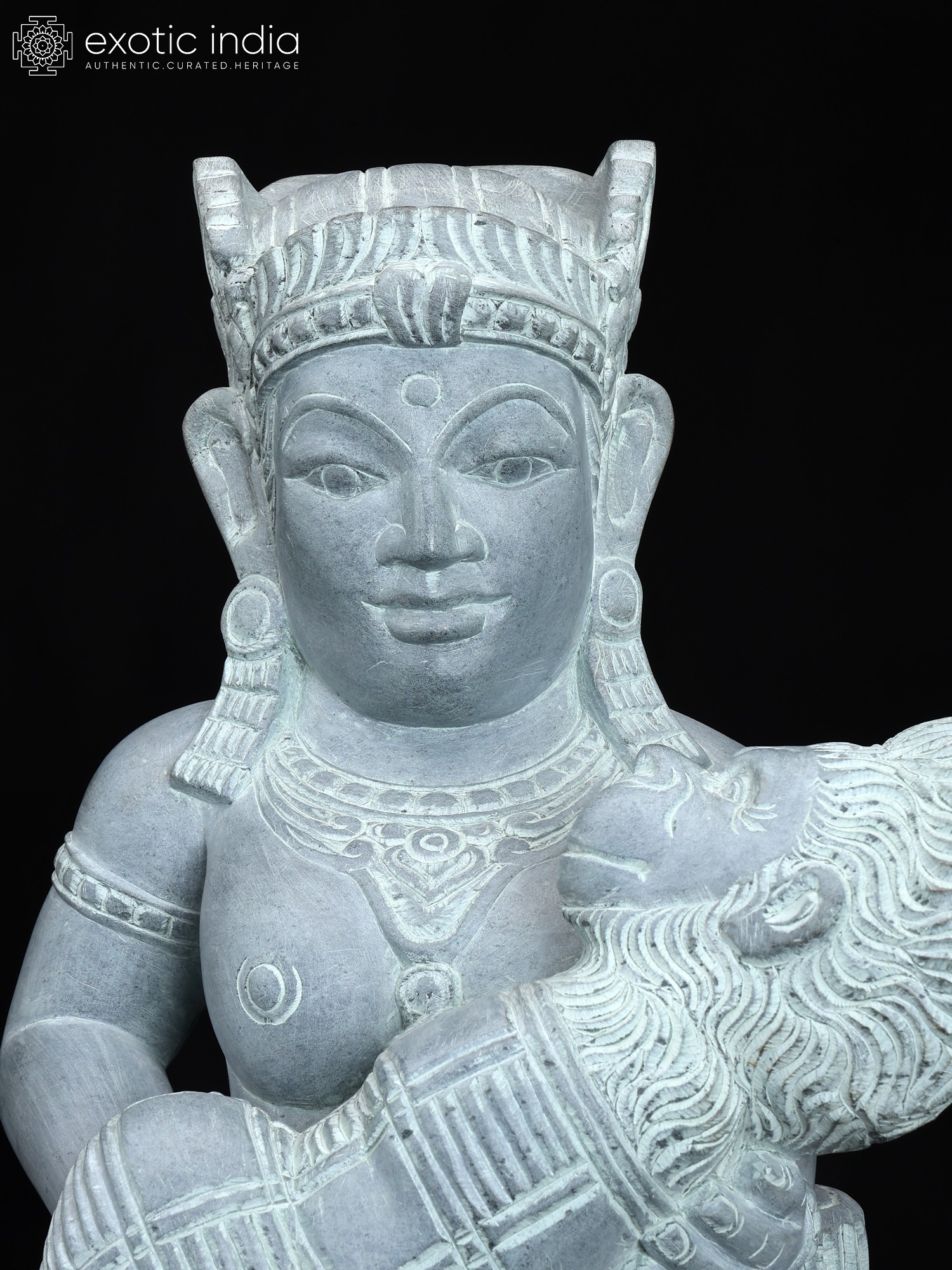 24" Goddess Parvati with Ganesha and Mata Anjani with Hanuman | Pair of Granite Stone Statues from Mahabalipuram