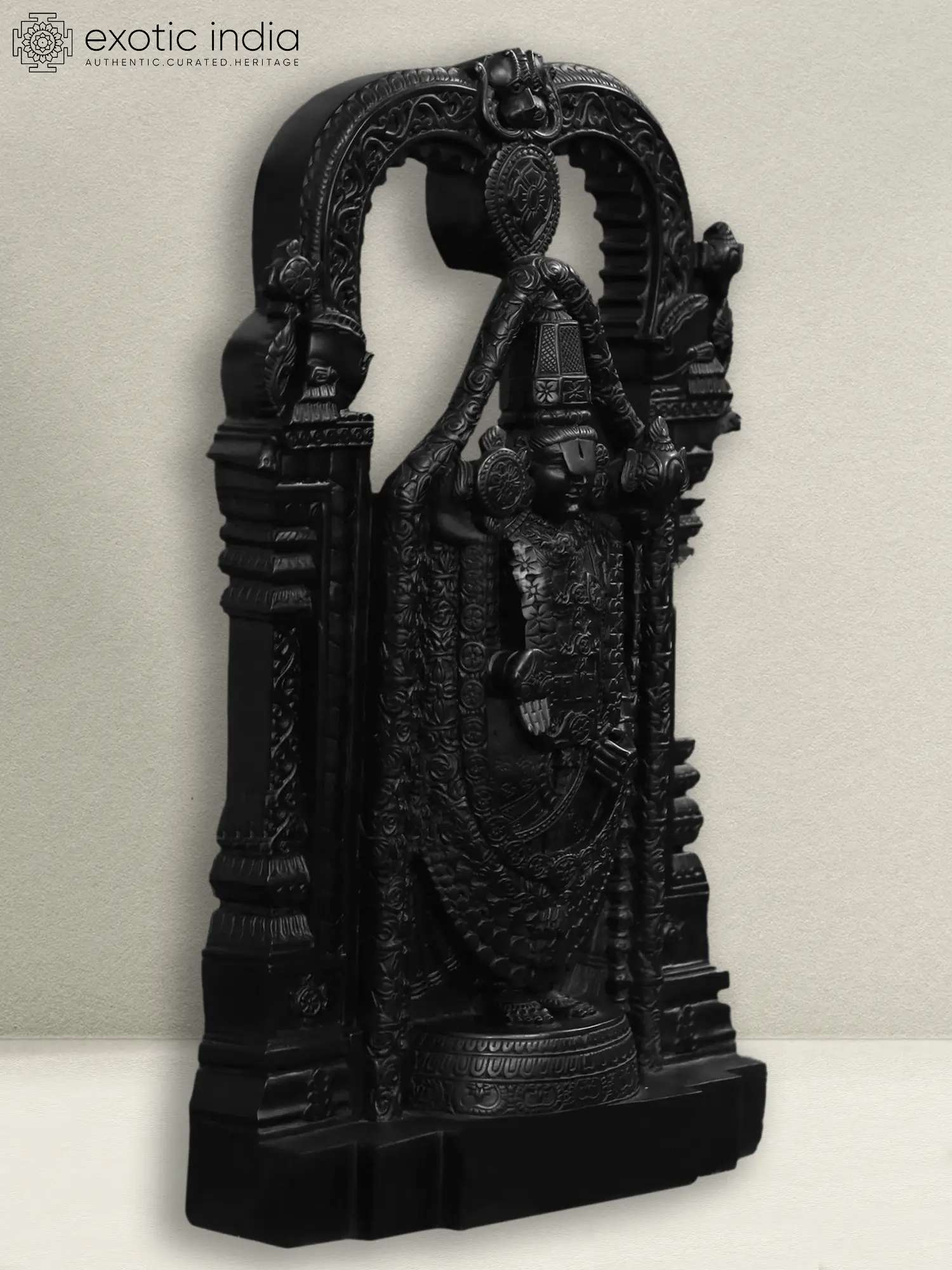 18" Lord Tirupati Balaji Statue With Intricate Work | Black Marble Sculpture for Home and Temple