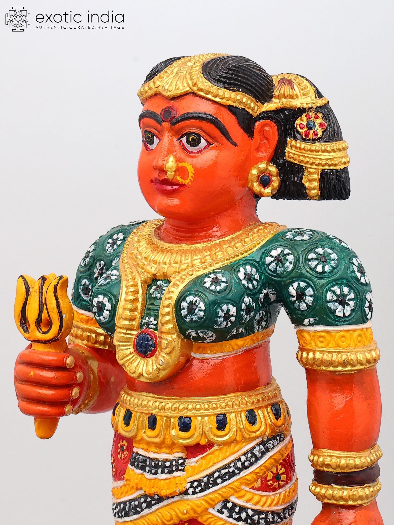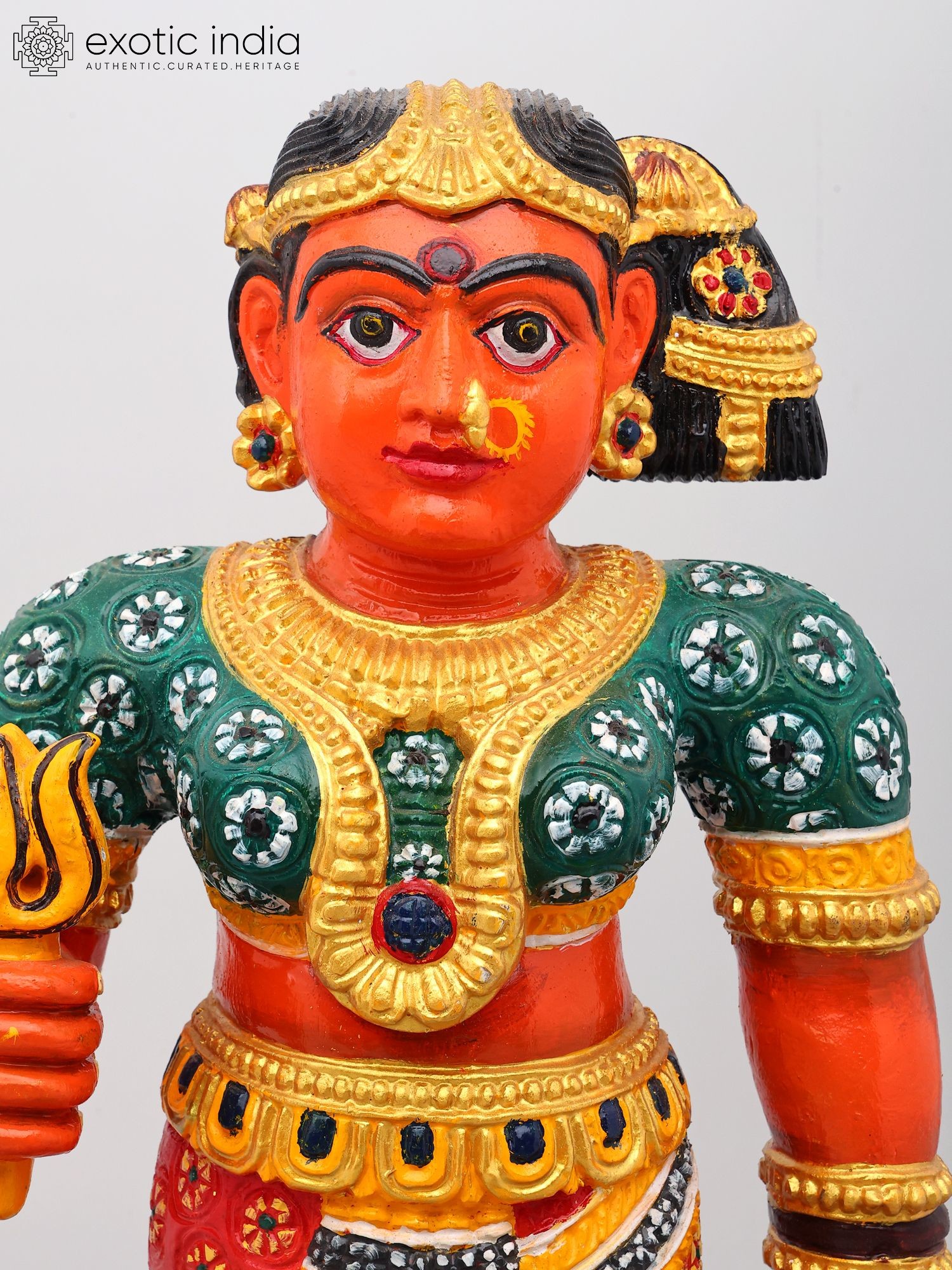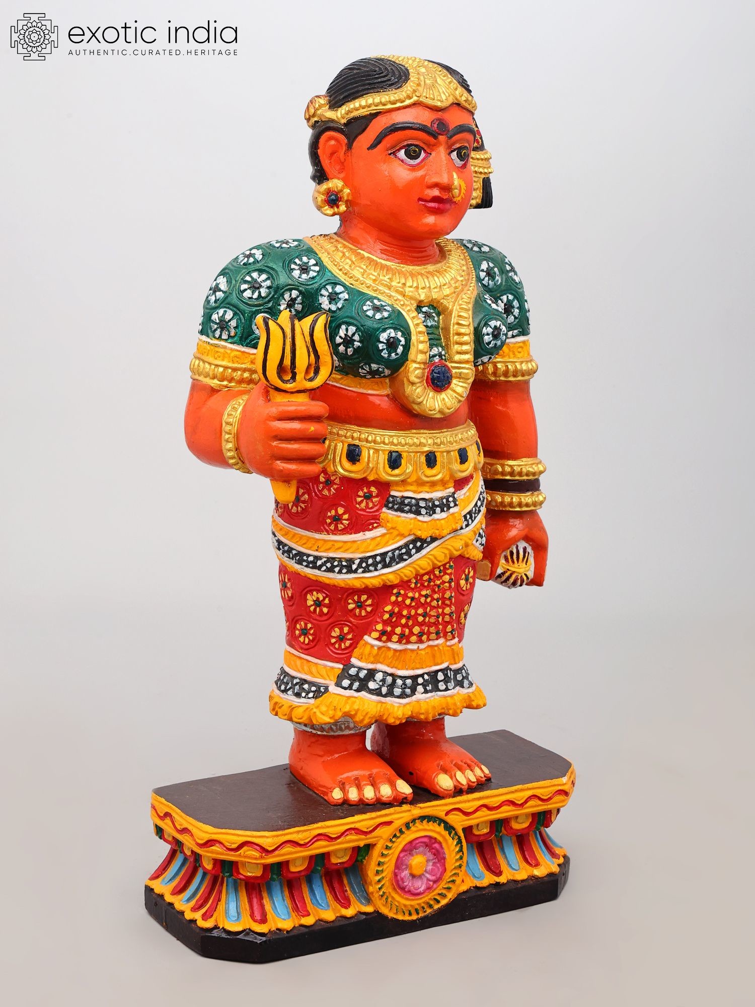 Goddess Mariamman (South Indian Durga) Wooden Sculpture