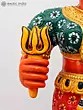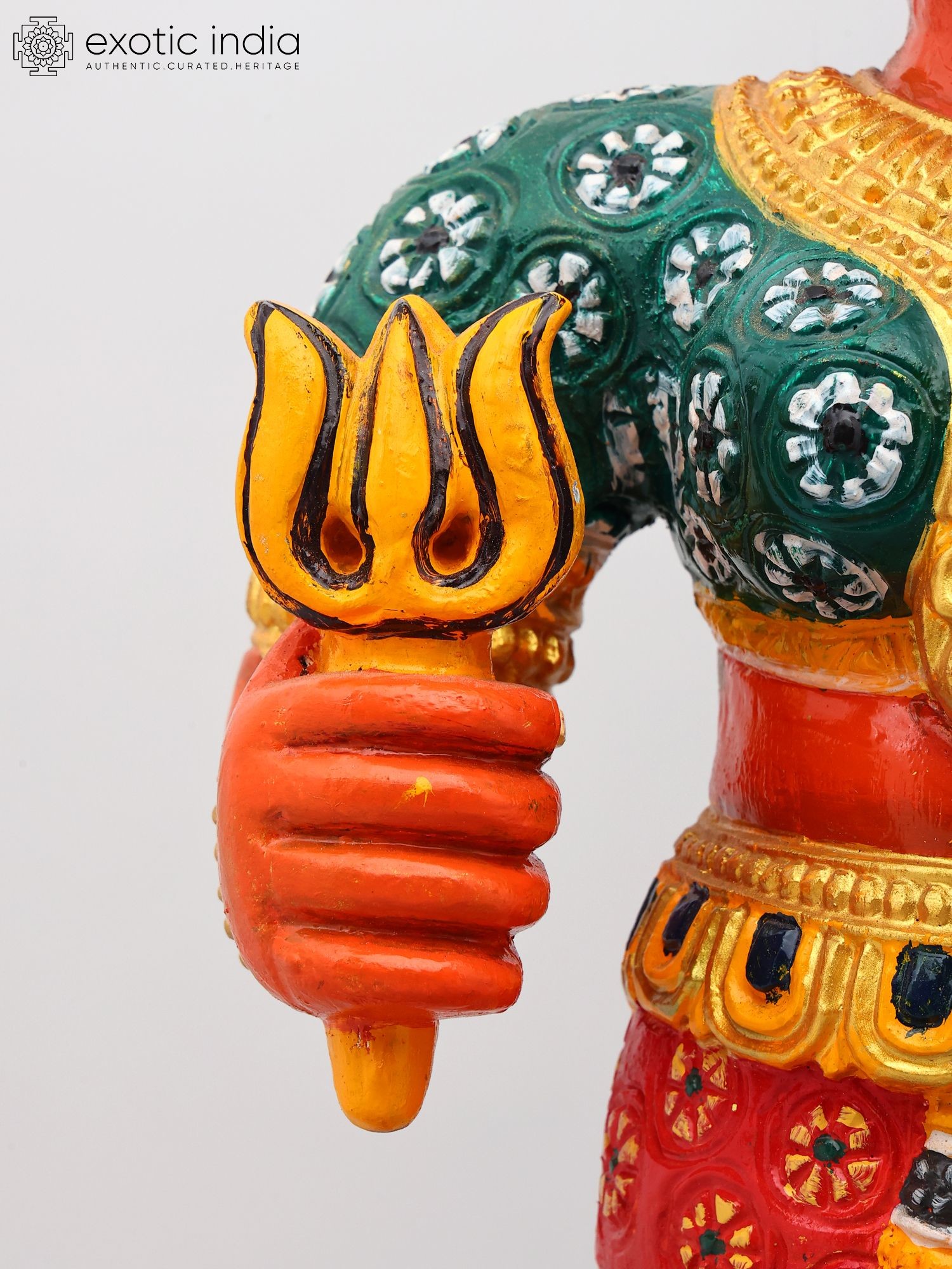 Features the deity holding a Trishul, symbolizing divine power and protection.