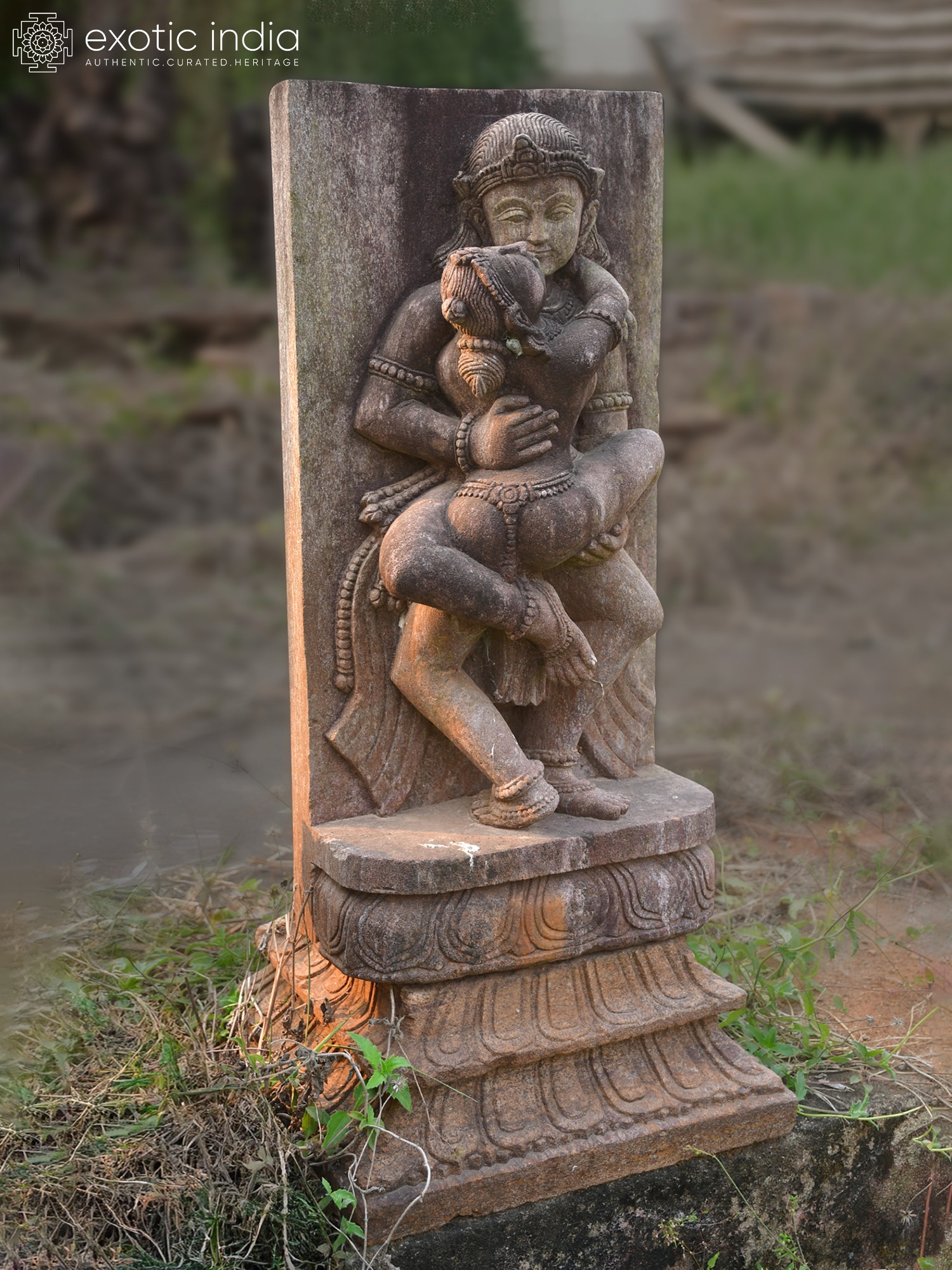 Carved from the finest Orissa Sandstone, a material renowned for its resilience and subtle texture, this sculpture is a masterpiece of artisanal skill. Each curve and contour is meticulously shaped by master craftsmen who have inherited generations of sculptural tradition. The very essence of the stone is coaxed into a form that speaks of devotion and delicate affection, a process that demands patience, precision, and an intimate understanding of the medium.