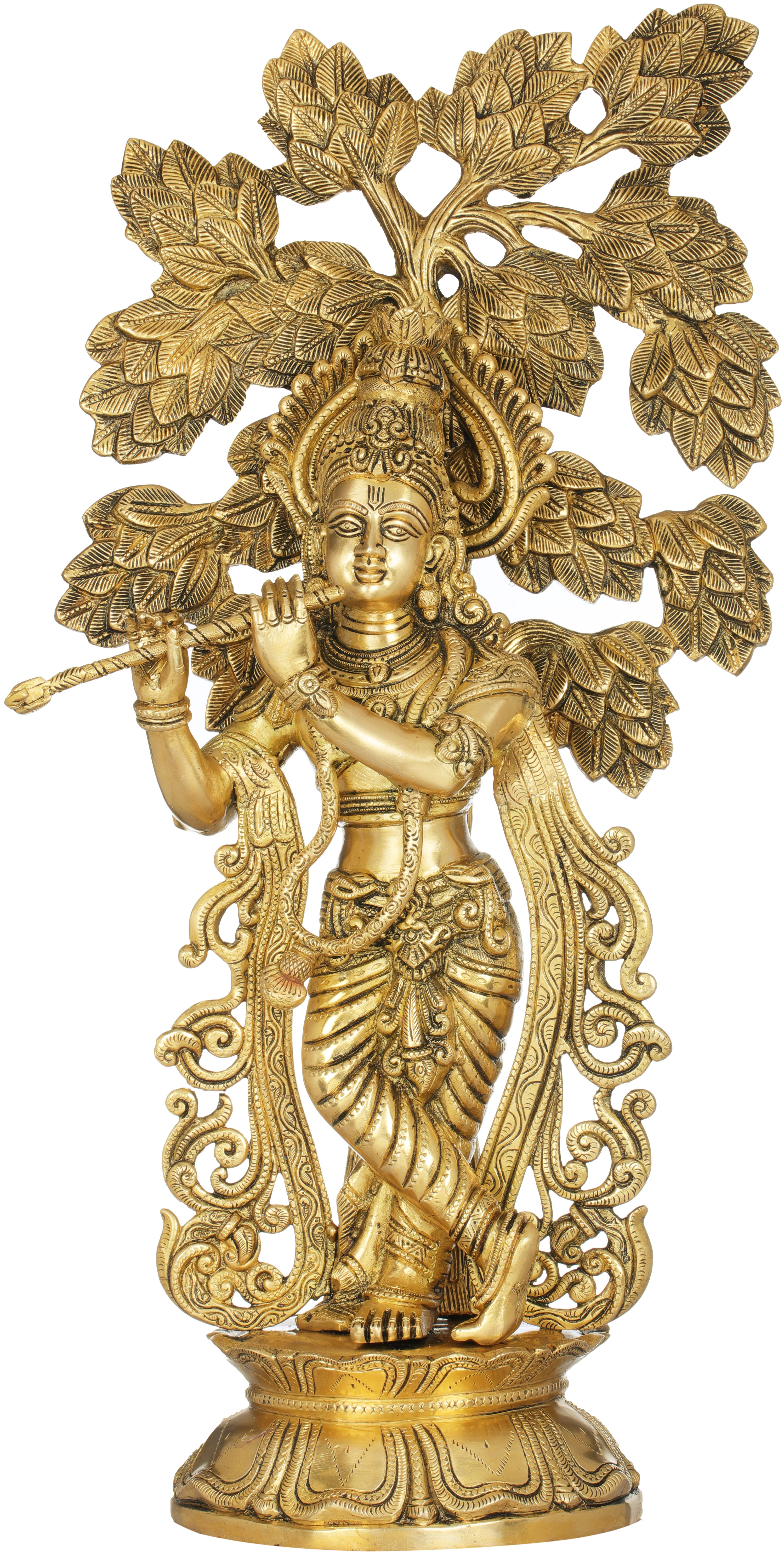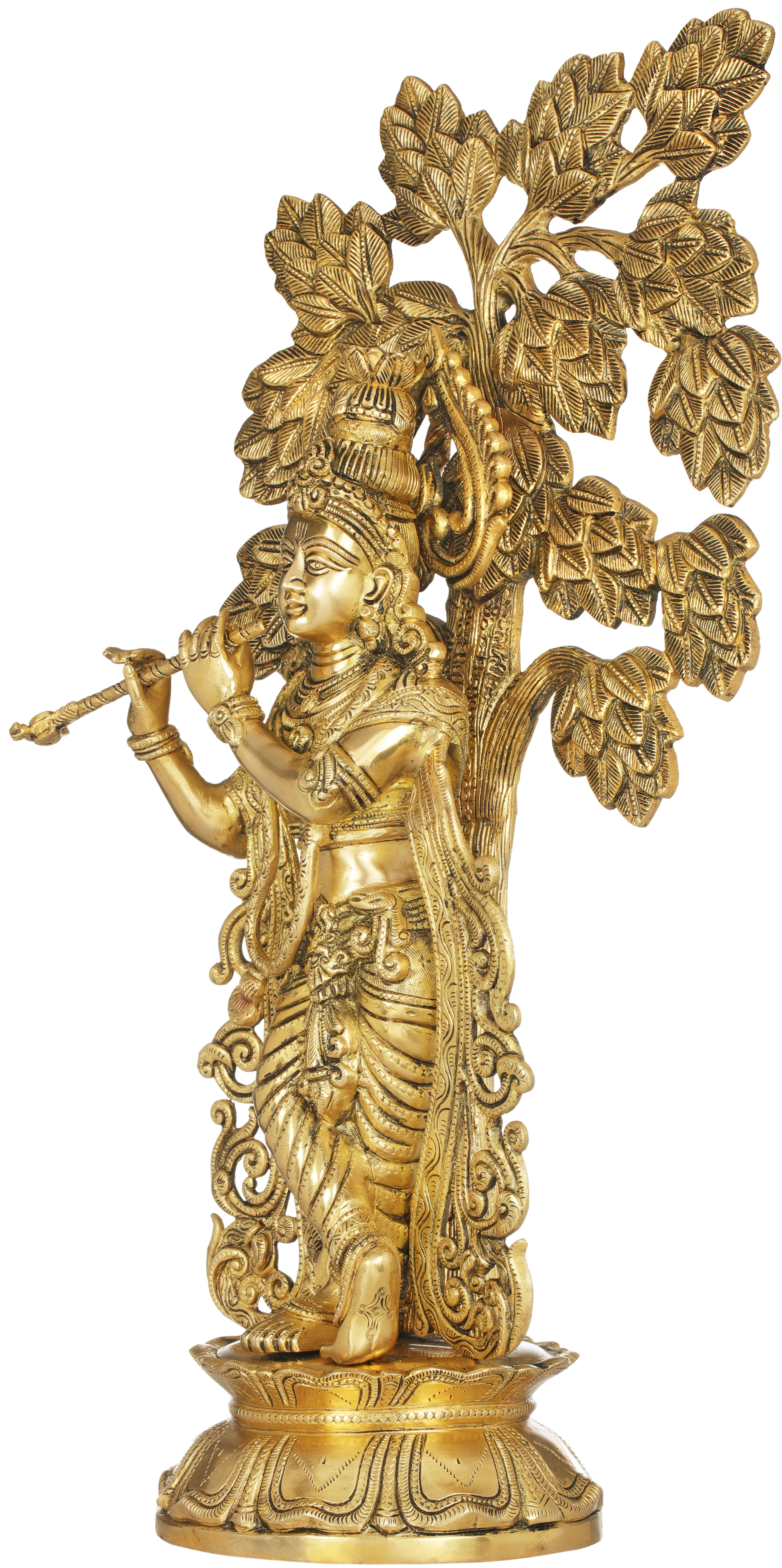 24" Krishna Brass Idol – Playing Music Under the Kadamba Tree | Handmade in India